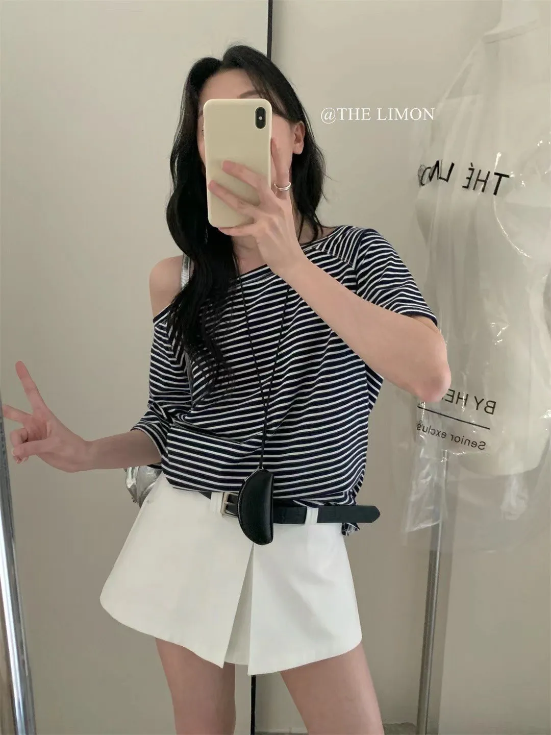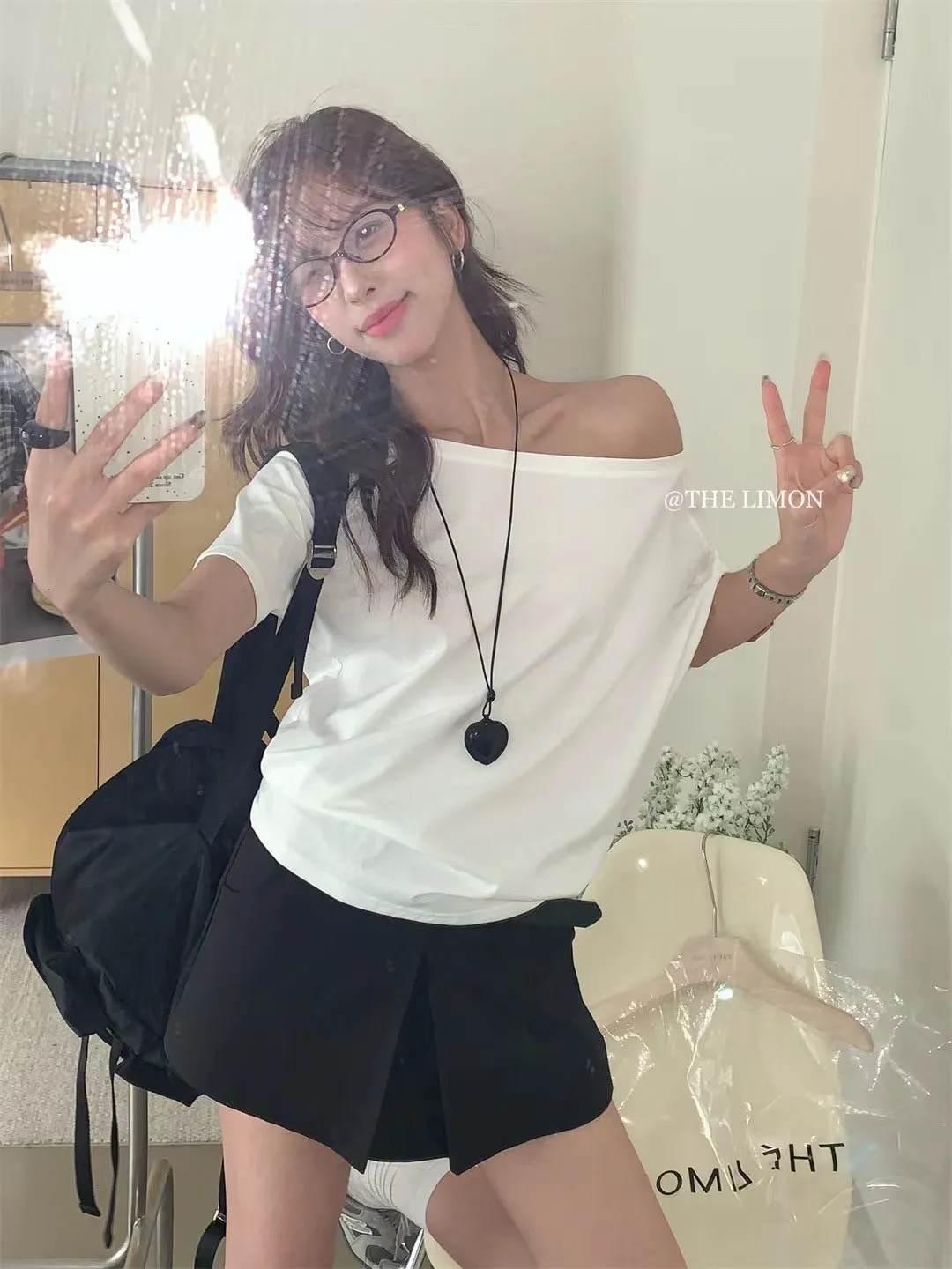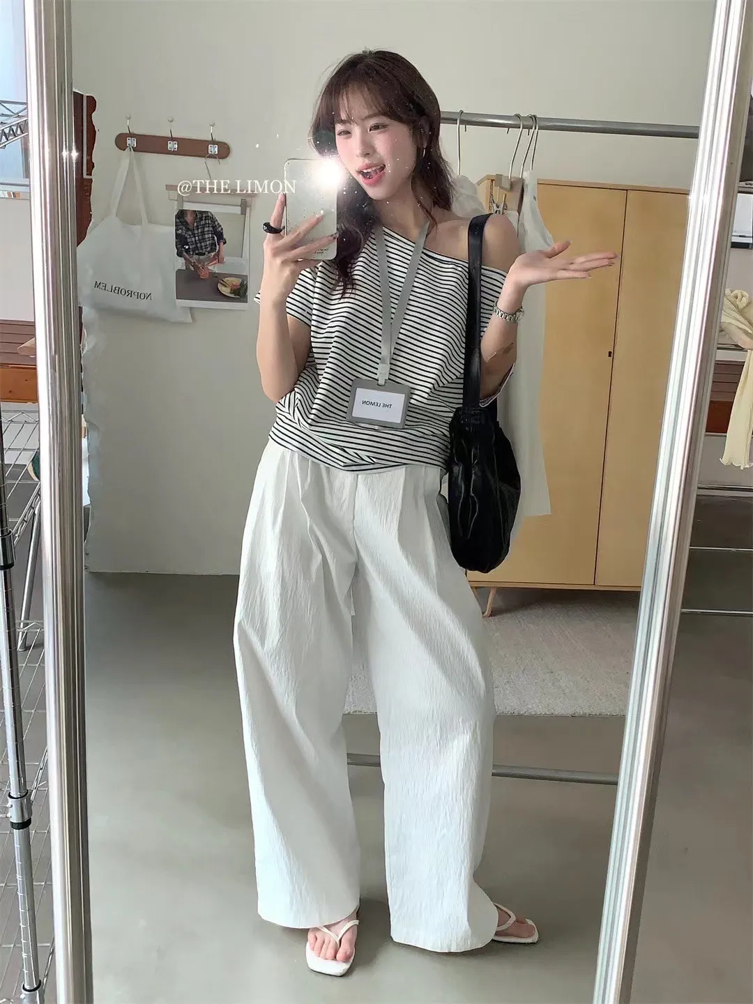 輕鬆穿出不費力的時髦感寬領設計可自由調整成一字領或斜肩穿法自然不做作 微微慵懶感搭配柔軟彈力棉質,舒適親膚不緊繃日常、約會、度假通通適合~一字領剪裁|可調整斜肩或一字露肩造型,無意間的微露鎖骨彈力棉質| 高彈不勒身、透氣又舒服,穿一整天都輕鬆自在微寬鬆版型|修飾手臂與腰部線條,不挑身形也不顯胖可休閒可小性感|不管搭牛仔褲、短褲或長裙都超有型!白:簡約亮眼,最基本也最不出錯藍:清新溫柔,好感女孩氣息灰:知性低調,適合日常與通勤穿搭黑:顯瘦性感慵懶感兼具 白底條紋:休閒中帶點法式感深藍條紋:復古耐看又時髦尺寸: 胸60/全長58公分