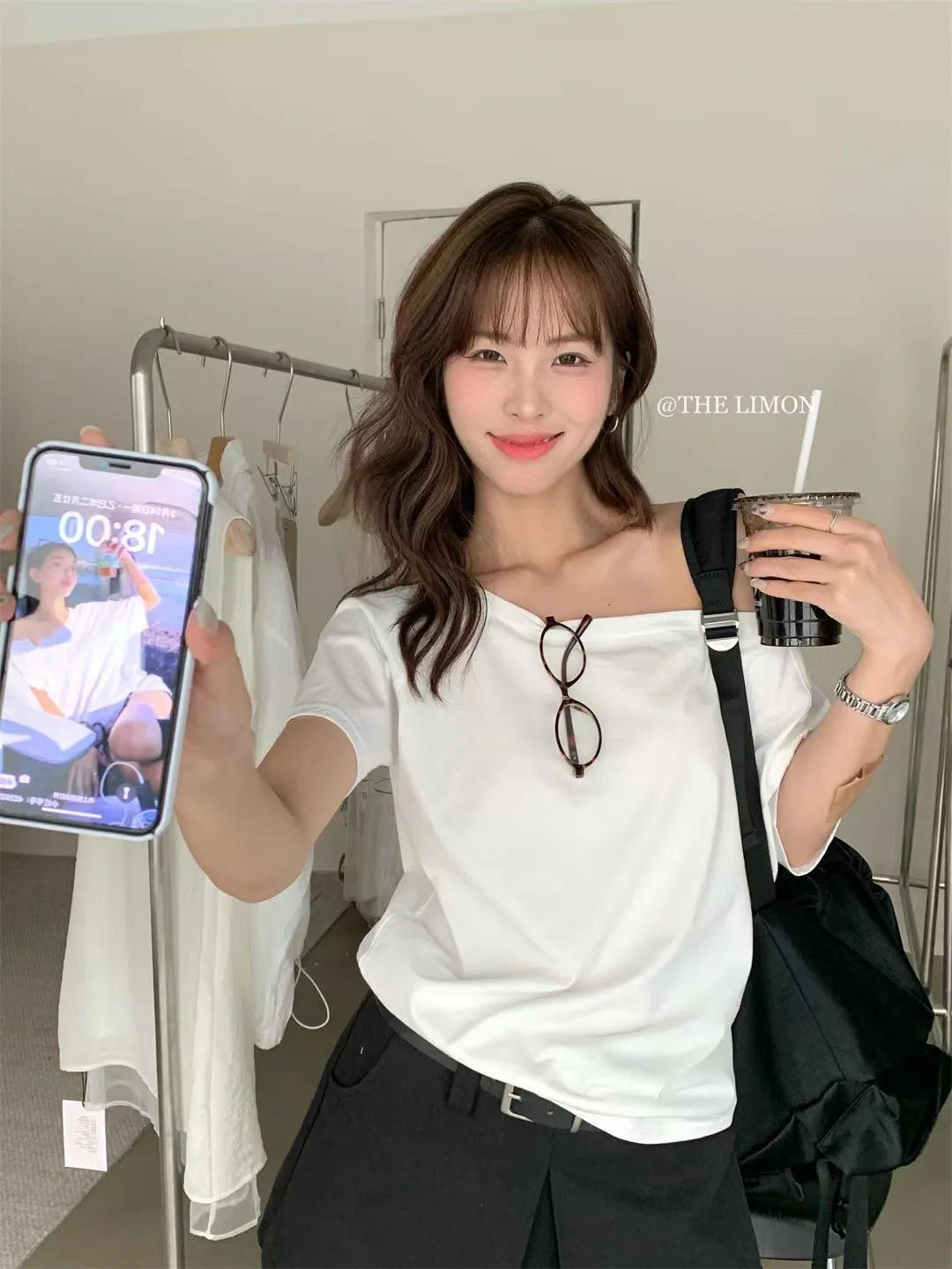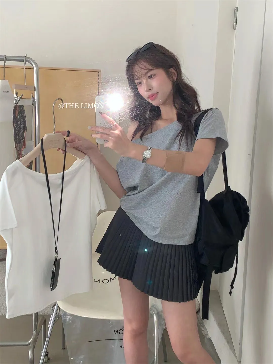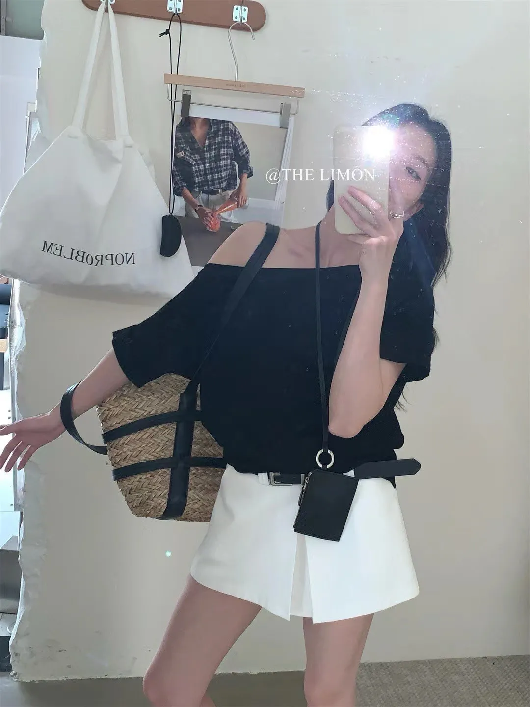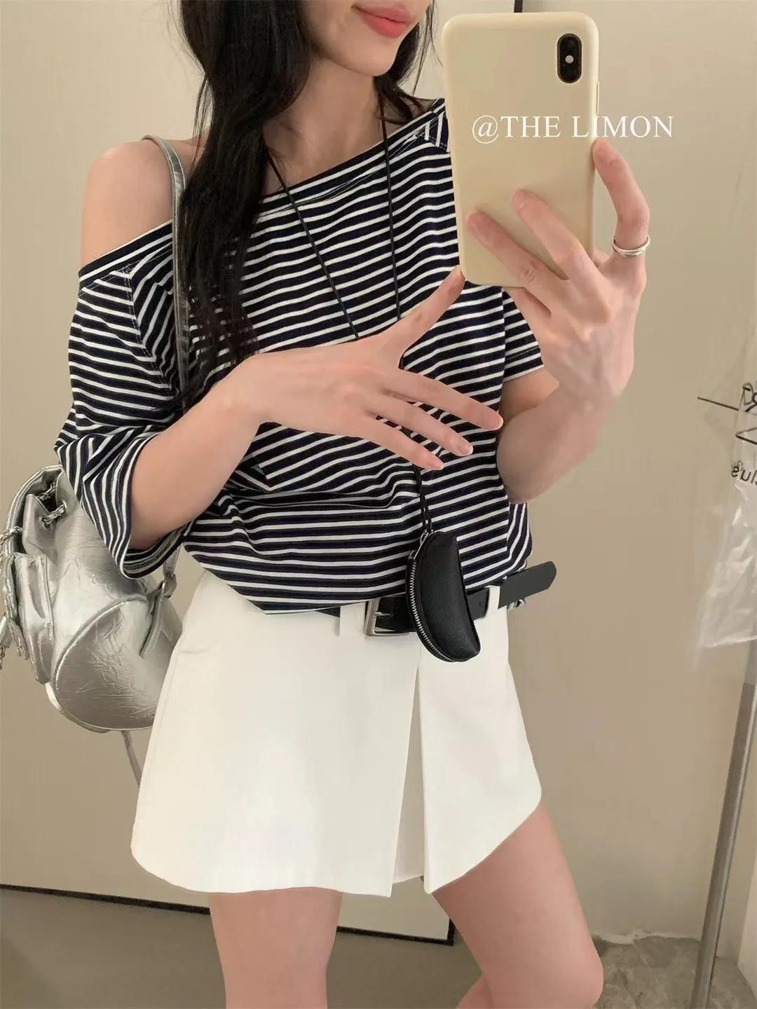 輕鬆穿出不費力的時髦感寬領設計可自由調整成一字領或斜肩穿法自然不做作 微微慵懶感搭配柔軟彈力棉質,舒適親膚不緊繃日常、約會、度假通通適合~一字領剪裁|可調整斜肩或一字露肩造型,無意間的微露鎖骨彈力棉質| 高彈不勒身、透氣又舒服,穿一整天都輕鬆自在微寬鬆版型|修飾手臂與腰部線條,不挑身形也不顯胖可休閒可小性感|不管搭牛仔褲、短褲或長裙都超有型!白:簡約亮眼,最基本也最不出錯藍:清新溫柔,好感女孩氣息灰:知性低調,適合日常與通勤穿搭黑:顯瘦性感慵懶感兼具 白底條紋:休閒中帶點法式感深藍條紋:復古耐看又時髦尺寸: 胸60/全長58公分