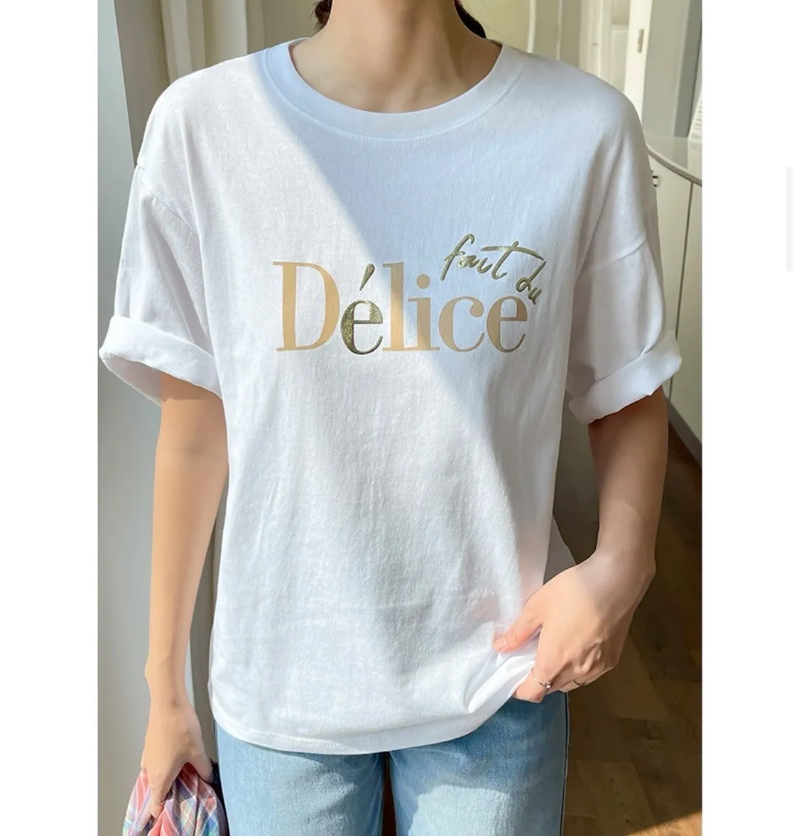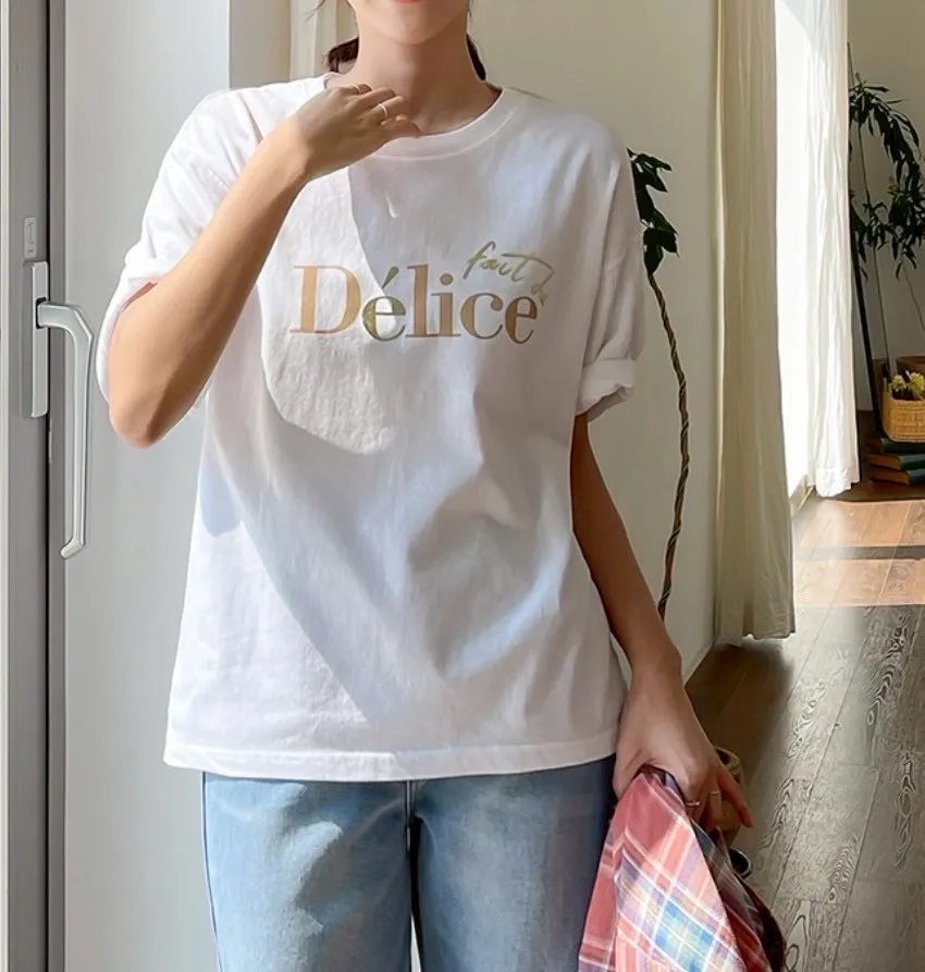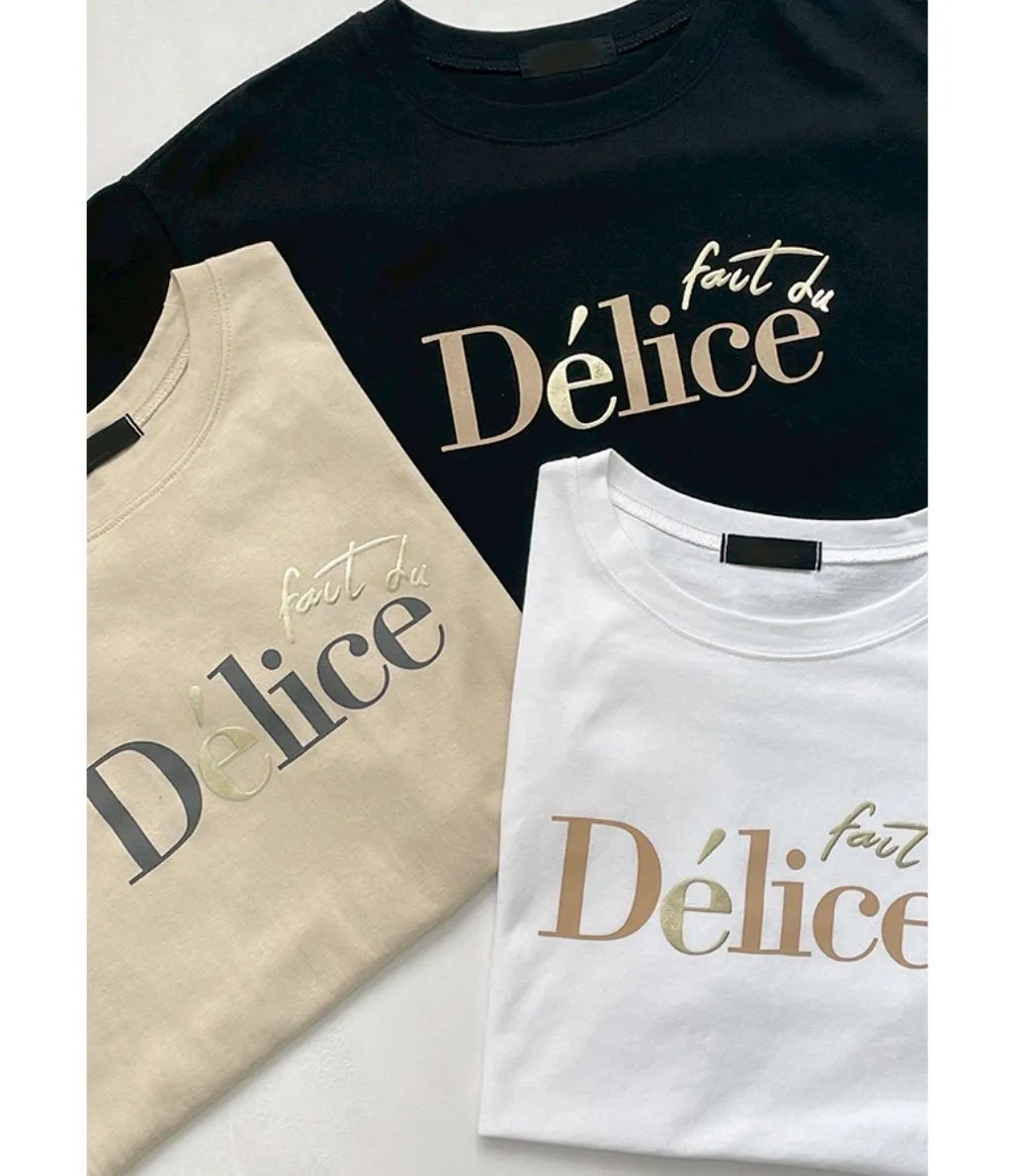 #融合了韓系與法式風格 #輕鬆穿出質感時髦感 兩件以上只要 $550/件! 不管是自留還是揪姊妹一起 都是超划算 【韓國製 時髦法式字母Délice簡約棉質上衣】 #韓國製 質感保證~從布料到版型都講究,細節滿分 #法式字母印花 簡約的「Délice」字母 增添文藝氣息,低調卻不無聊 #柔軟親膚棉料 舒適透氣、不悶熱,春夏必備! 白色:乾淨清爽,最適合法式簡約風穿搭 奶茶色:溫柔又帶點慵懶感 黑色:酷帥不失質感,搭配牛仔褲就很有型 顏色:黑色、白色、杏色尺寸:肩51、胸50、長63cm