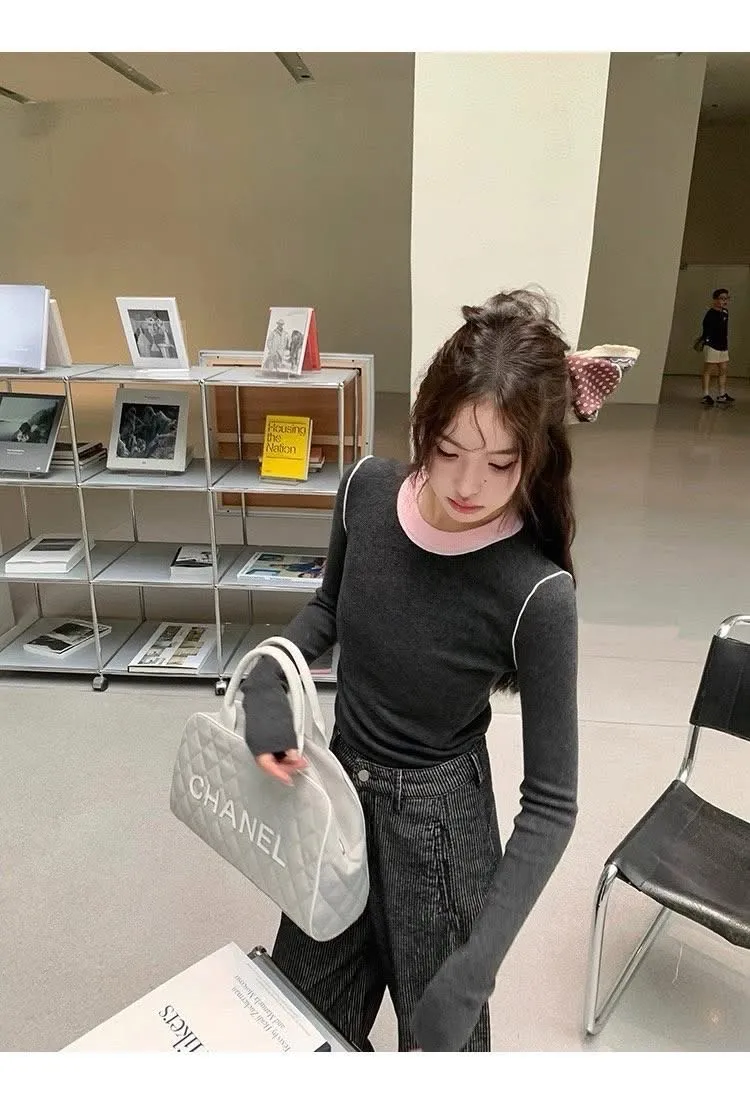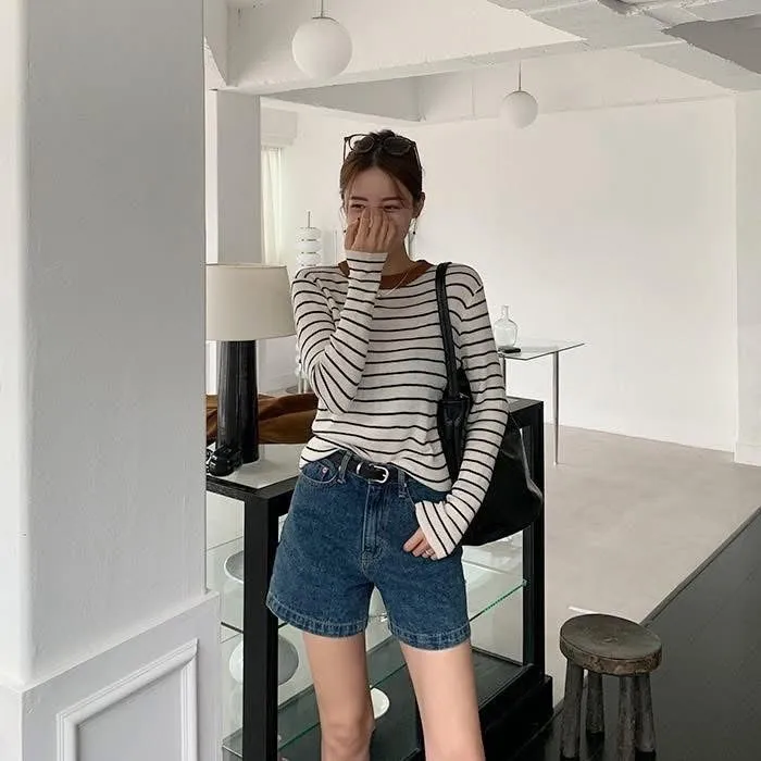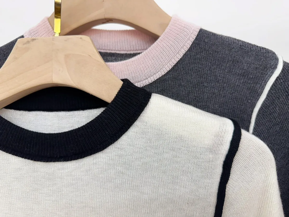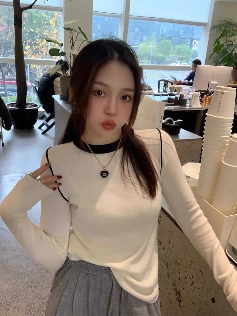 「 #領口撞色條紋針織 」 親膚 ‘ 彈性 ’ 針織 柔軟細針織 ‘ #厚薄剛好 撞色領口設計讓條紋多一份層次感 簡約俐落卻有記憶點 #百搭不挑人穿 #無論單穿或內搭外套都超好看 《 #以領子配色為主色喔 》 粉領 ‘ 咖領 ’ 水藍領 ‘ 黑領 肩寬33 ‘ 胸圍38.5 ’ 全長60公分