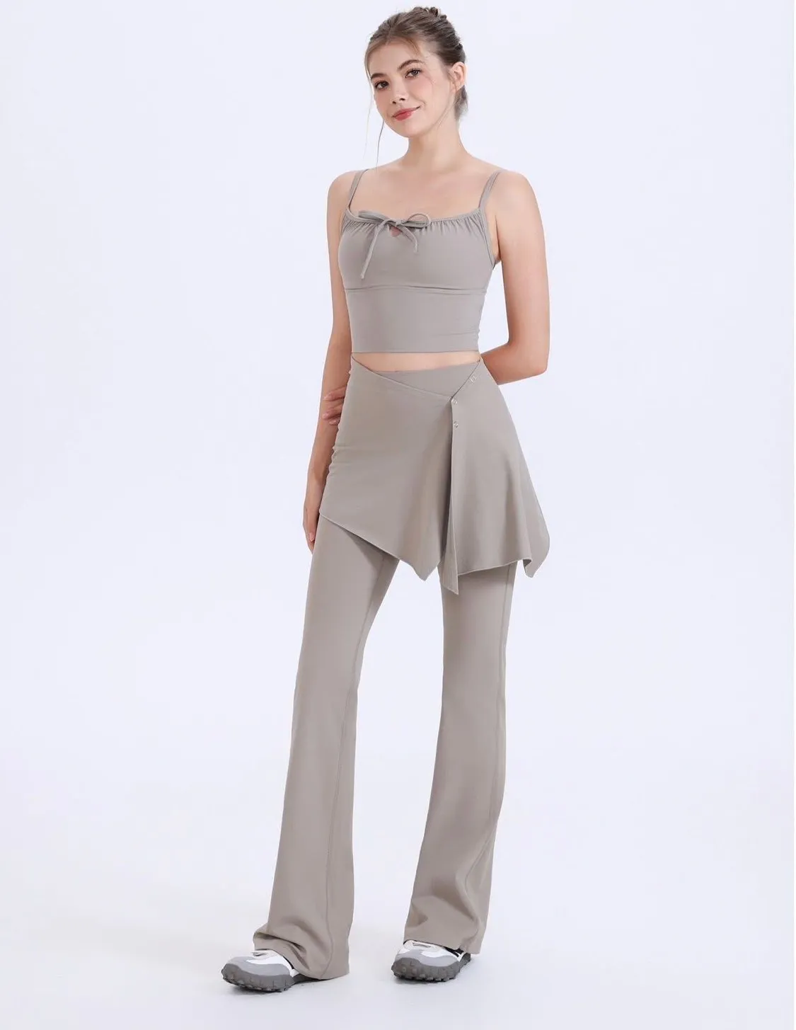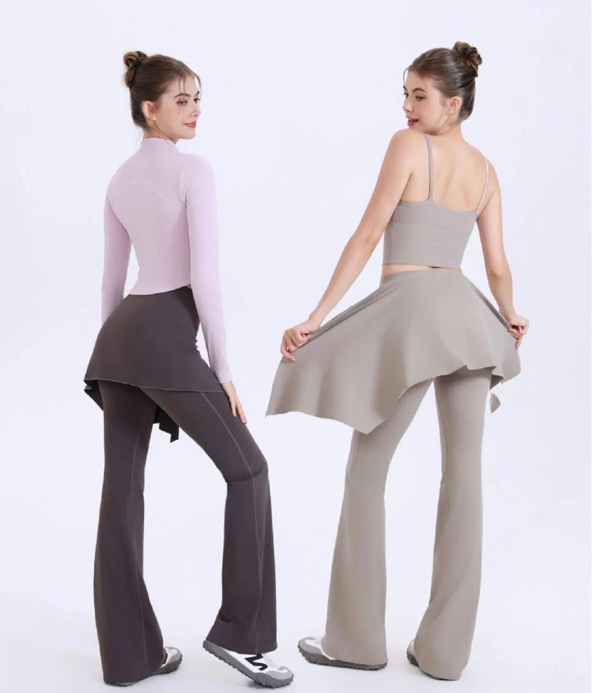 最近開始報名皮拉提斯課 找各種瑜珈服穿搭這款褲子可以下課就可以直接穿著走不用再另外換裝因為一般瑜珈褲單穿會有點害羞這件多了可拆卸裙擺穿起來有更安心的感覺 還看起來更顯瘦~就算沒有要上瑜珈課 平常也是能穿出門~#一件兼具功能性與美型線條的裙褲 外層是不規則裙襬,可以拆,動起來很流線靜止時又能自然修飾臀型與大腿線條。 褲身是高彈布料,做瑜伽、皮拉提斯、健身、快走都能穩定支撐整件微喇剪裁,把腿的比例直接拉長。 布料本身是暖皮科技面料外層阻冷、中層鎖溫、內層細絨貼膚 可拆卸裙擺|一件同時滿足修飾+運動 暖皮三層結構|阻冷、鎖溫、親膚 高腰包覆|核心更穩、視覺更俐落 微喇褲型|腿長效果超明顯 彈力布料|下犬式、深蹲都不卡動作 平量(cm) S|褲長103|腰圍24|臀圍35 M|褲長104.5|腰圍26|臀圍37 L|褲長106|腰圍28|臀圍39 XL|褲長107.5|腰圍30|臀圍41 建議體重 S:45–50 M:50–55 L:55–60 XL:60–65