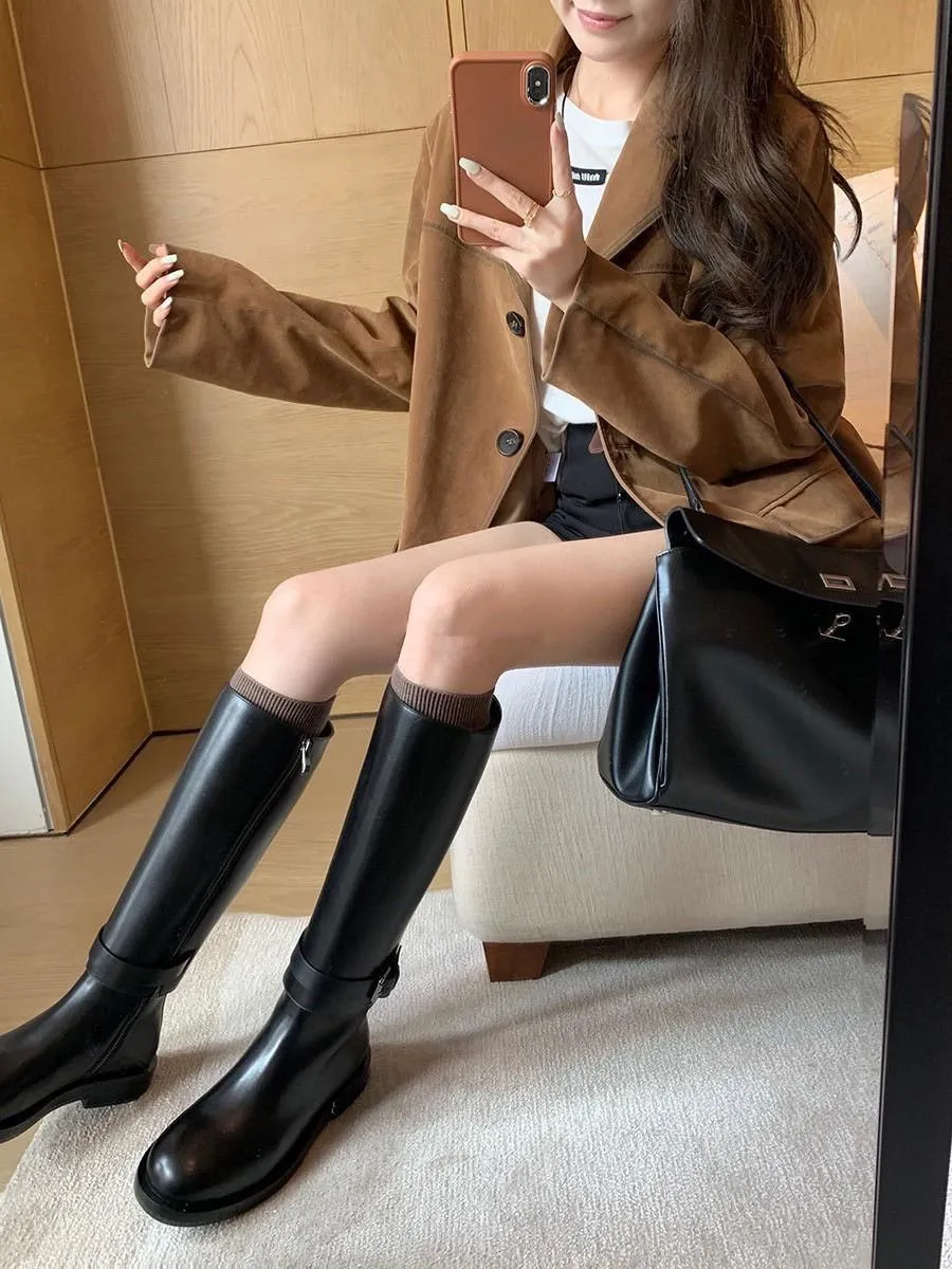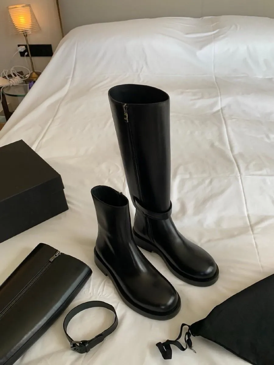 正常版型挑選即可超強大!一靴兩穿的可拆卸設計是短靴也可以是長靴隨你想怎麼穿都可以自行變換 上半段拉鍊一卸,就是俐落短靴 裝上去立刻變身歐系長靴 整雙採用質感超好的真皮 真皮的高級光澤質感版型乾淨俐落 超會修飾腿型!你知道有些靴子筒口太緊,一穿上去 小腿卡卡的這雙完全不會喔!包覆度、舒適度跟修飾度都更加完美! 靴子的厚底設計不僅讓你穿起來有增高效果 還能拉長腿部線條!讓雙腿看起來更加修長纖細 耐穿的厚底不管是走路還是站著,都能給你極佳的支撐感 不論是配牛仔褲、長裙、或是大衣,它都能瞬間提升整體穿搭層次 一雙鞋直接搞定兩種造型 不管今天想走酷帥風、極簡風 或微正式穿搭都能無縫切換 鞋跟高度3.5公分短靴筒長17公分 筒圍25公分 加上可拆卸套筒是38公分,筒圍35公分