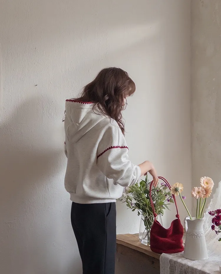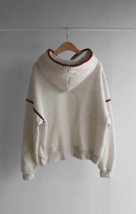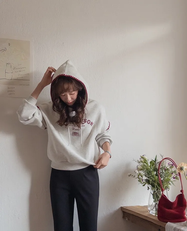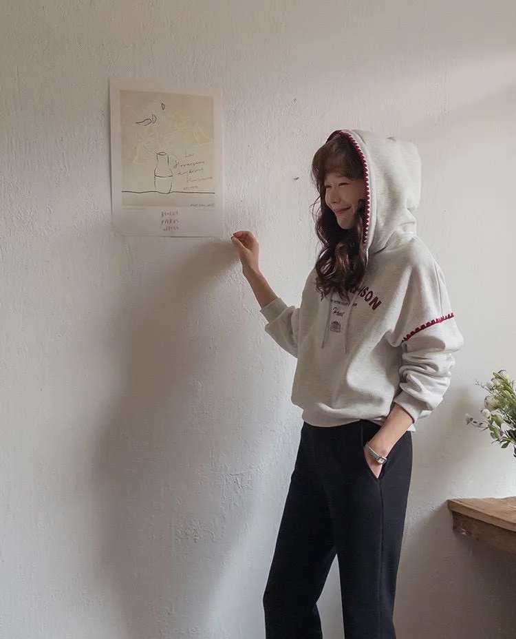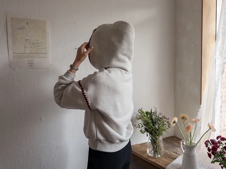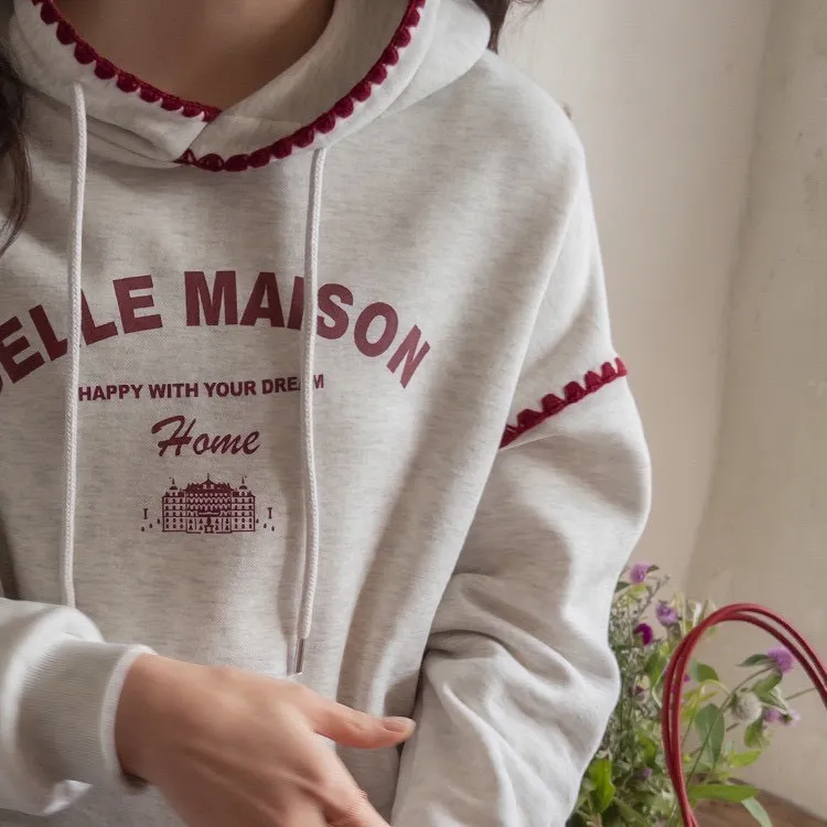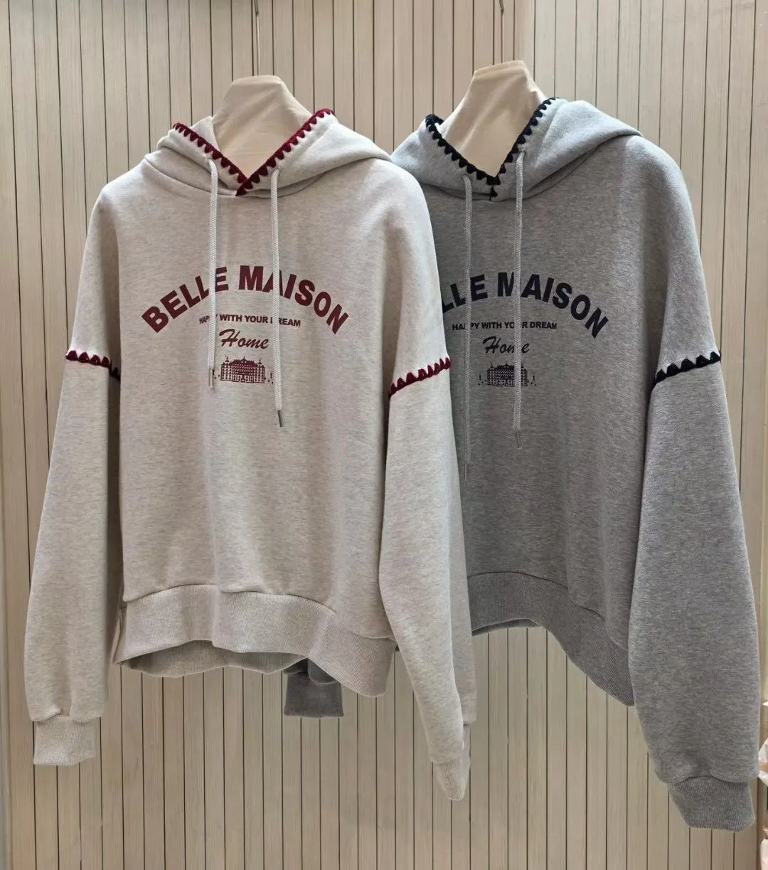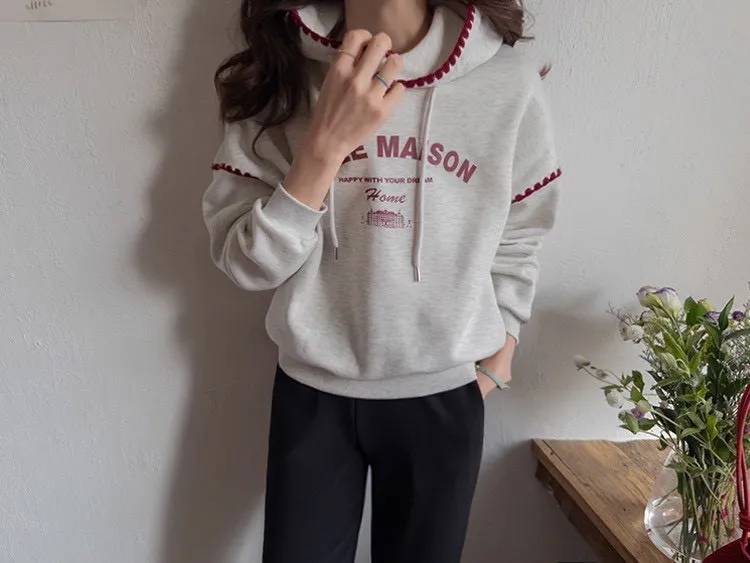帶點俏皮感又不會太甜膩 個性女孩也會喜歡!細節充滿個人魅力! 柔軟棉料結合溫柔配色帽緣與袖口的滾邊細節,讓整件上衣更有層次感。字母刺繡點綴「BELLE MAISON」歐風字樣,穿起來有一種低調的法式休閒感🌿 在寒冷的冬天既保暖又不臃腫,出門穿一件就搞定! 寬鬆版型不挑身材, 搭配不同風格的下身都能很好看唷~ 🎨 顏色:灰色、燕麥📏 尺寸:肩65、胸58、長60cm