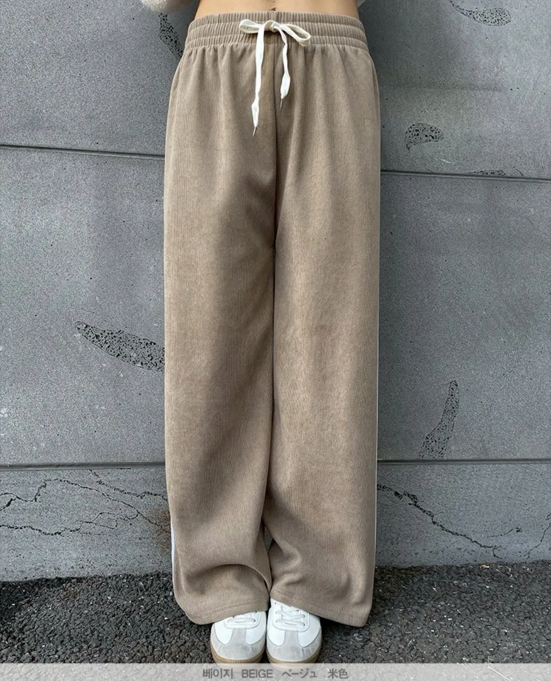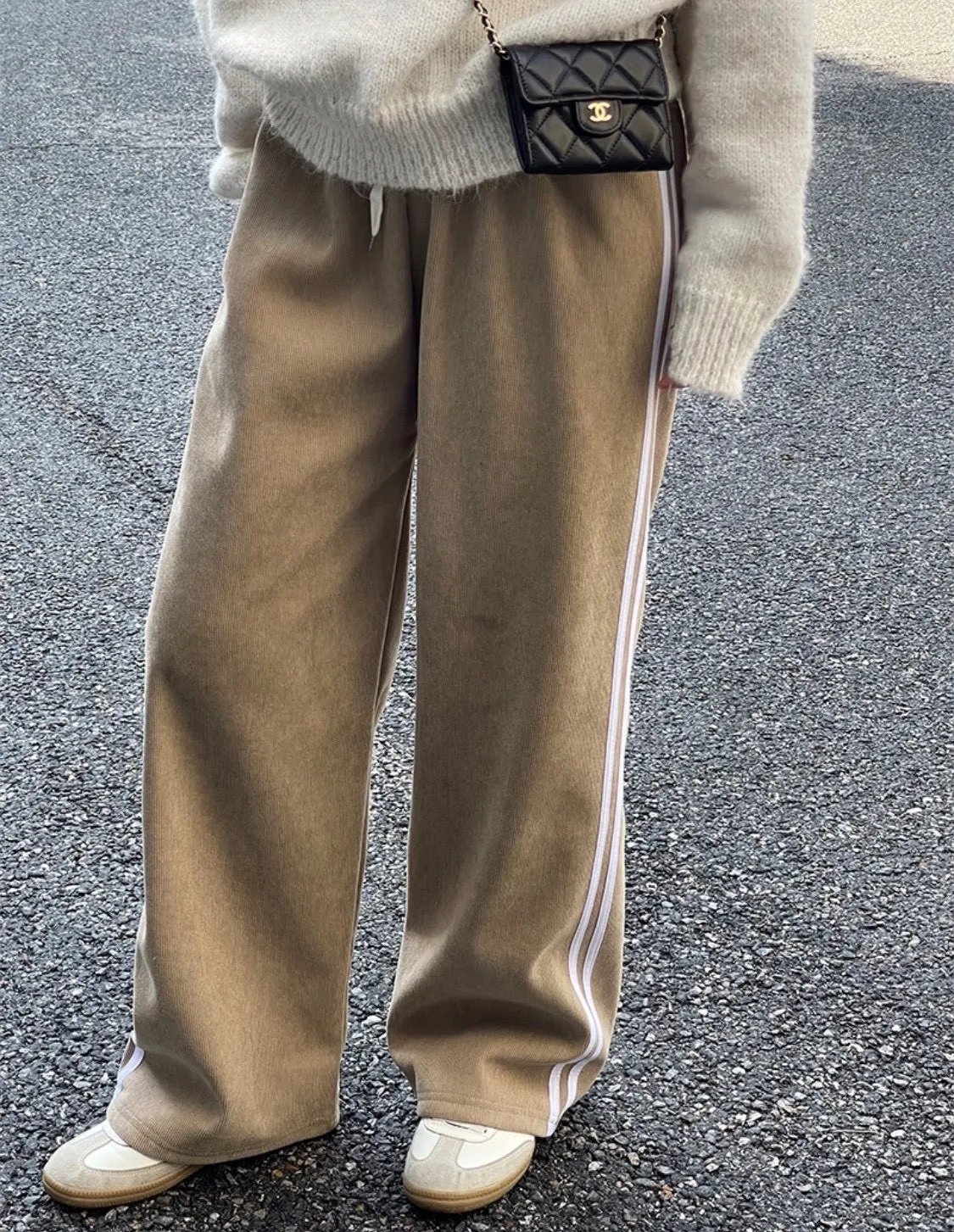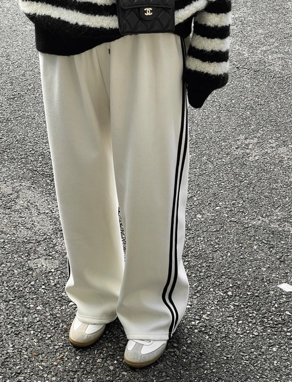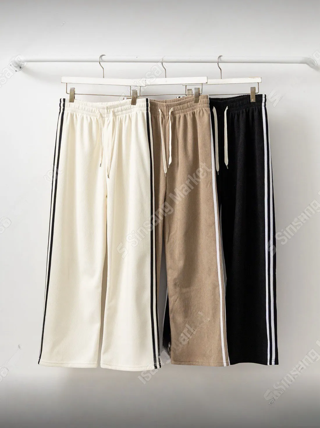 我們選褲子你們可以放心!顯瘦好穿是必備!!冬天最需要的就是一件「穿了舒服、比例又好」的褲子這款真的很可以~ 不想花大錢去買貴貴的潮牌,這款我覺得非常可以收 低調卻不失設計感的運動寬褲又不會太戶外感完美結合了舒適與時尚感! 布料是絨面紋理布+內刷毛, 穿上去瞬間自帶溫暖感! 側邊雙線條很顯腿直、腿長還帶出一種慵懶又俐落的時髦感!隨便搭配白T、針織衫、外套都極好看!穿起來流行又好搭,讓整個造型瞬間亮眼起來褲管是順順落下的直筒寬版不會貼腿、不會邋遢,上身搭大學T、毛衣、外套都很自然還有綁帶設計,實用又多了一點細節感!腰間的綁帶不僅能調整緊度還像是一個裝飾讓整條褲子看起來更有設計感隨手一綁就是高級感的造型!日常出門、通勤、旅行都超適合顏色:黑色、白色、卡其尺寸:腰34-44、臀52、長102cm此款韓國設計自訂款✈️大陸代工不是外面的盜版到處都有喔只有在韓國這個檔口才買得到👍🏻
