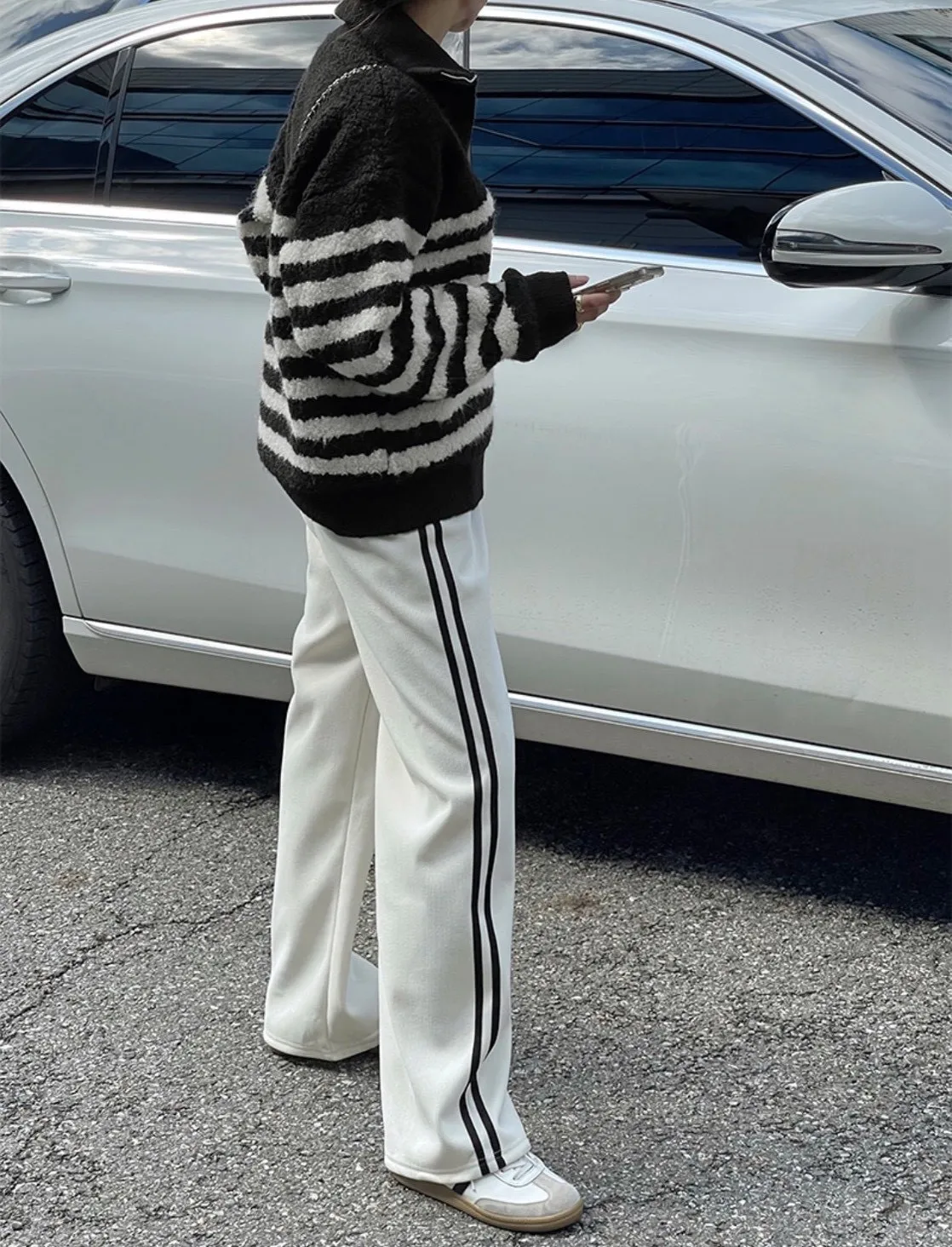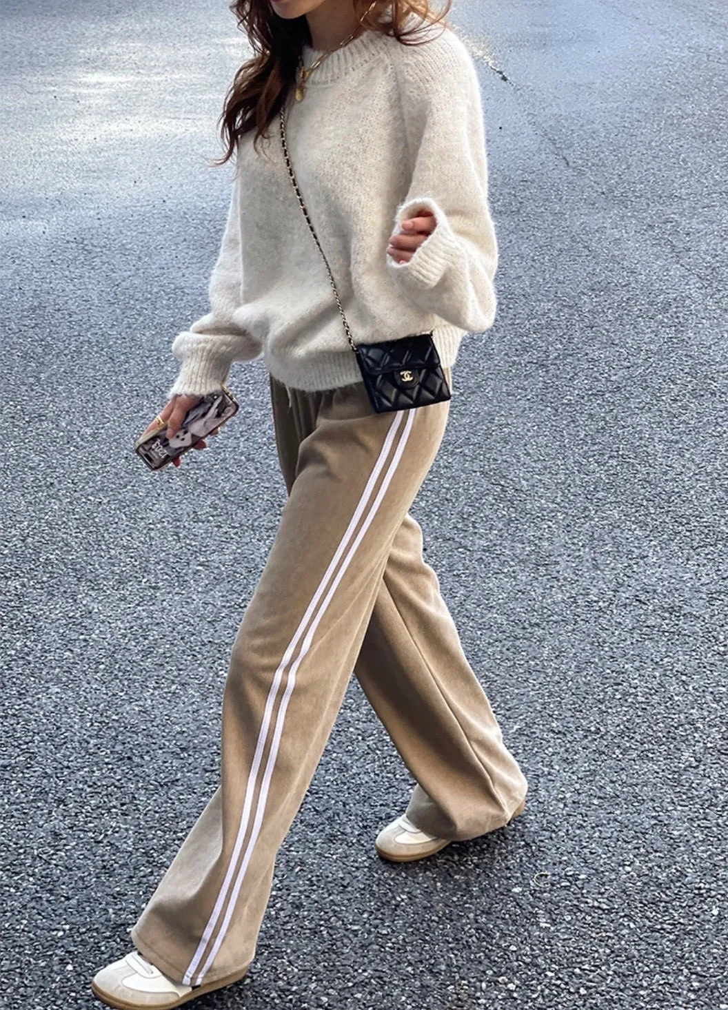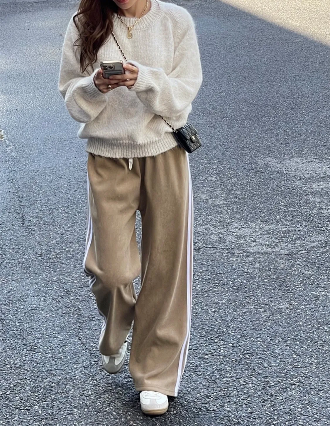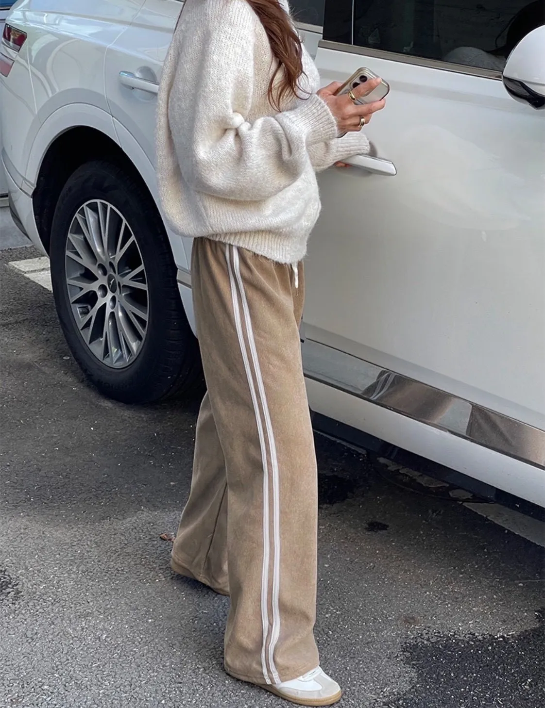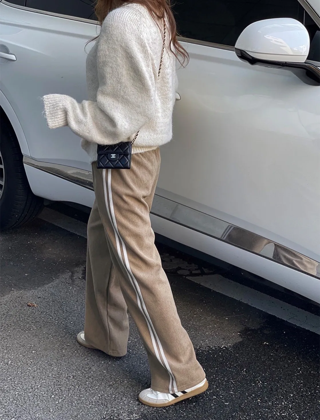 我們選褲子你們可以放心!顯瘦好穿是必備!!冬天最需要的就是一件「穿了舒服、比例又好」的褲子這款真的很可以~ 不想花大錢去買貴貴的潮牌,這款我覺得非常可以收 低調卻不失設計感的運動寬褲又不會太戶外感完美結合了舒適與時尚感! 布料是絨面紋理布+內刷毛, 穿上去瞬間自帶溫暖感! 側邊雙線條很顯腿直、腿長還帶出一種慵懶又俐落的時髦感!隨便搭配白T、針織衫、外套都極好看!穿起來流行又好搭,讓整個造型瞬間亮眼起來褲管是順順落下的直筒寬版不會貼腿、不會邋遢,上身搭大學T、毛衣、外套都很自然還有綁帶設計,實用又多了一點細節感!腰間的綁帶不僅能調整緊度還像是一個裝飾讓整條褲子看起來更有設計感隨手一綁就是高級感的造型!日常出門、通勤、旅行都超適合顏色:黑色、白色、卡其尺寸:腰34-44、臀52、長102cm此款韓國設計自訂款✈️大陸代工不是外面的盜版到處都有喔只有在韓國這個檔口才買得到👍🏻