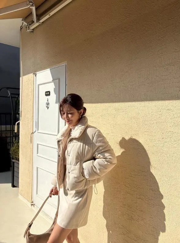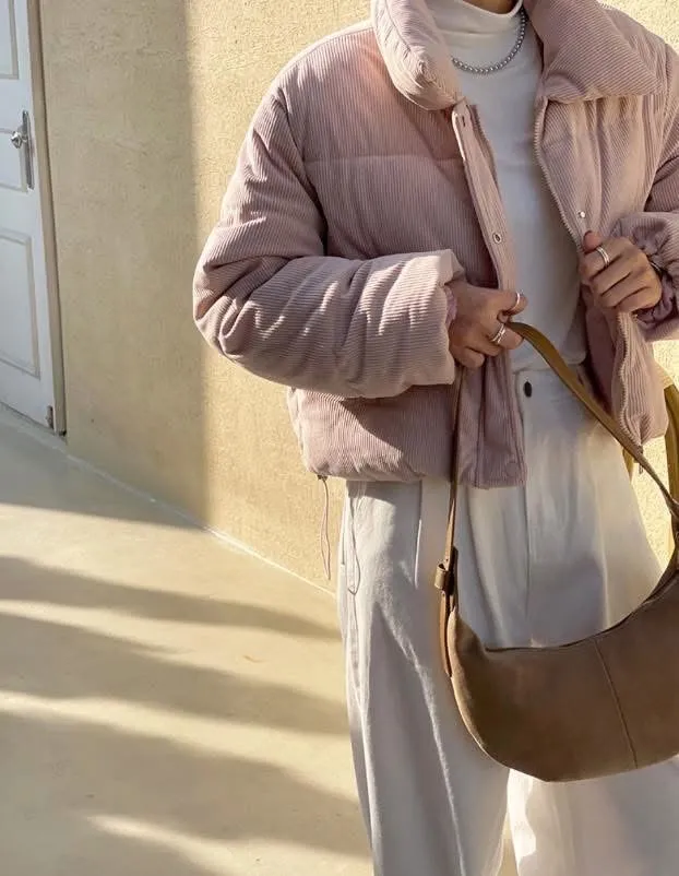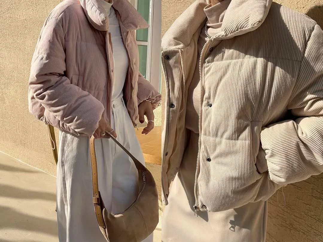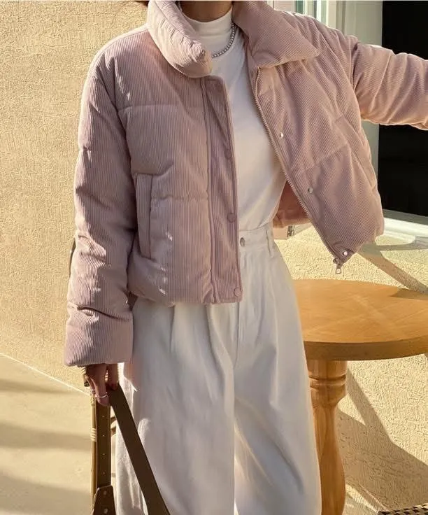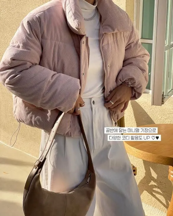 溫暖了我的寒冷 萌軟保暖100% 今冬最療癒外套登場!這款粉色真的完全征服我的心燈芯絨材質 讓整體氛圍更溫和 厚實柔軟的觸感 充滿慵懶的溫柔感 就是有一種想要上前抱住那種美麗心情 澎度掌握得剛剛好 太澎變厚片 太薄就一點不可愛了重點是穿起來完全不會像氣球一樣澎起來你們懂我說的吧! 鋪棉外套可以做到這樣俐落版型又兼具保暖~口袋可以放手機+鑰匙,超加分 尺寸:肩40、胸57、長57cm