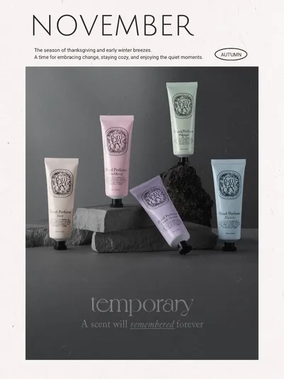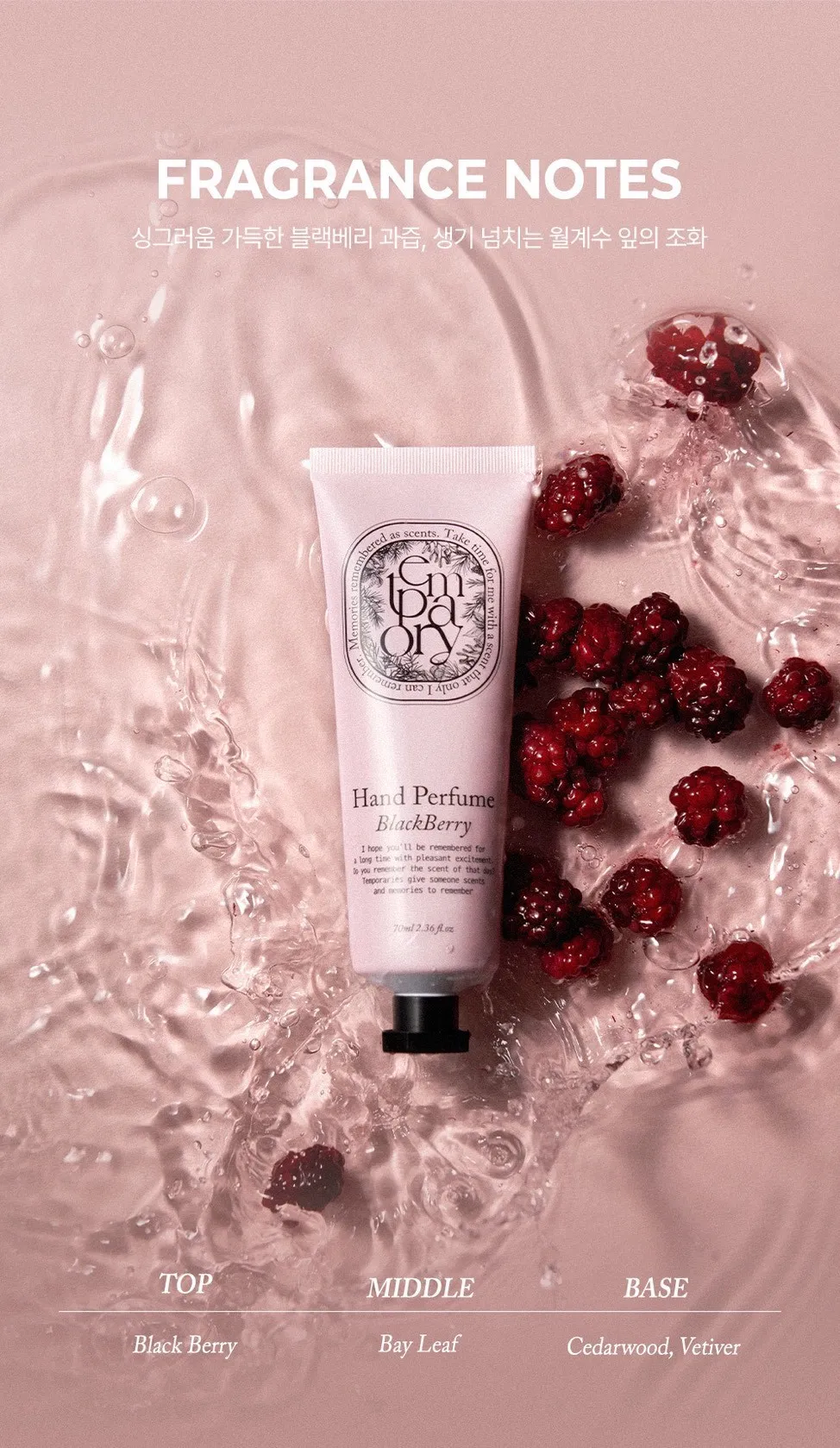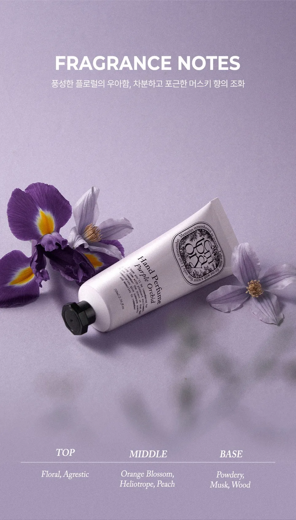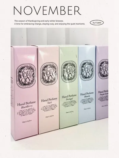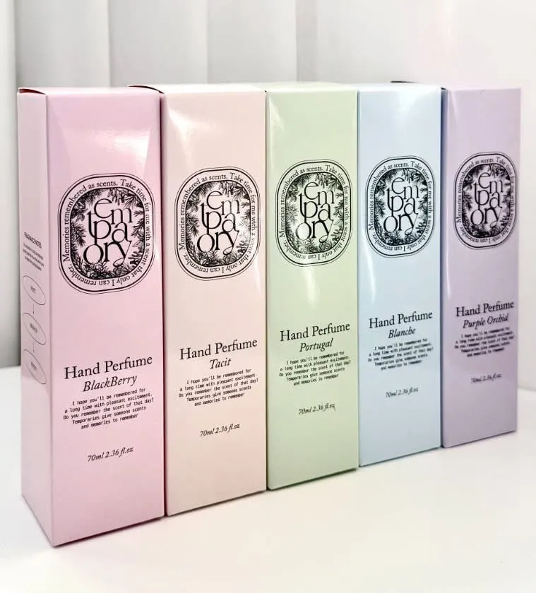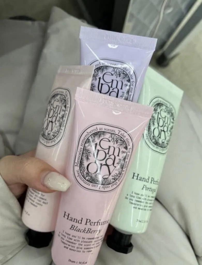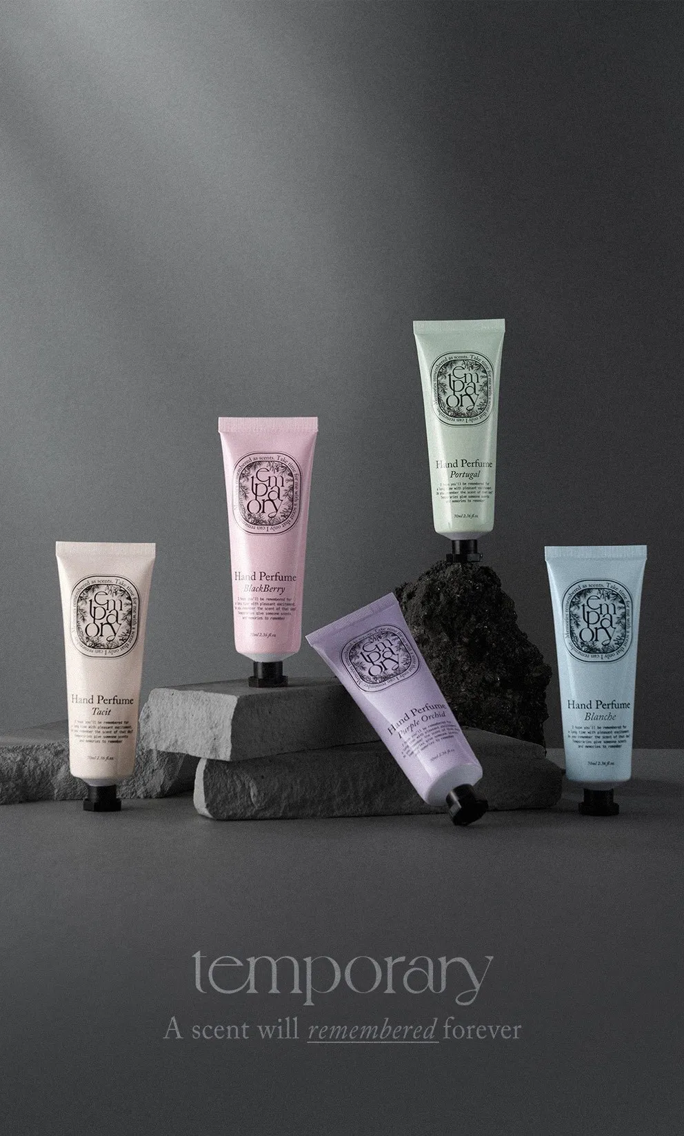 平價味道卻很高級+高顏值自用或是送人都超級適合小巧尺寸70ml 方便隨身放包包攜帶一組 = 一次收藏五種經典人氣香味也可以隨心情變化挑選今日的香調~近年爆紅韓國新崛起的低調文青香氛品牌TEMPORARY!曾為JoMalone和Penhaligon's調製經典香氛調香師Christian出品以「片刻」為靈感打造五款特調香調護手霜質地輕盈不黏膩,延展性高,吸收快,讓雙手在保濕同時散發細緻持久的淡香氛外出、通勤、工作途中,一抹即可提升儀式感 像是從自己身上透出的迷人體香 淡香水等級香調:比一般護手霜更細緻、層次更明顯,香氣持續更久柔滑不黏膩質地:滋潤乾燥雙手,但不厚重、不油膩添加保濕成分:舒緩乾燥、改善粗糙,形成溫和防護膜包裝極簡高質感:韓國設計師調性外盒+柔霧美管,送禮自用都適合✔ 五款香味全介紹 Blanche 晨白詠頌 清新溫柔的白色氣息推薦給:喜歡 BYREDO「Blanche」、喜歡清爽皂香or白色氣息的人香調靈感:白皙床單 × 清晨陽光 × 溫柔皂香前調:白花花瓣、清新皂香中調:麝香、輕柔木質後調:棉香、純淨粉霧感香調風格:乾淨、溫柔、舒適、像剛洗完澡的體香感Blackberry 雪松黑莓 木質 × 果香的迷人深度推薦給:喜歡木質果香、喜歡 Chloé / Jo Malone 風格者香調靈感:成熟黑莓 × 雪松森林 × 微甜果韻前調:黑莓、漿果酸甜中調:雪松木、乾木質後調:麝香、淡琥珀香調風格:微甜果香+清爽木質,男女皆可的優雅性感感Tacit 檸光南法 柑橘草本的療癒陽光推薦給:喜歡 Diptyque「Oyedo」、淡雅柑橘調的人香調靈感:南法海岸 × 柑橘果園 × 清風吹拂前調:萊姆、佛手柑中調:草本清香、綠植氣息後調:微木質、乾淨麝香香調風格:清爽明亮、陽光柑橘、男女皆適合的清新氣味Purple Orchid 紫韻麝香 低調奢華的紫色幽香推薦給:喜歡花香+麝香調、高級感氣味者香調靈感:紫蘭花 × 暗紫花園 × 柔軟麝香前調:紫蘭花、淡甜花香中調:麝香、溫柔木質後調:淡琥珀、粉霧尾韻香調風格:溫柔又神秘、成熟香氣但不厚重,優雅耐聞 Portugal 森林綠意 清新自然的草木森林調推薦給:喜歡自然、乾淨、不甜的木質調族群香調靈感:濕潤森林 × 綠葉 × 清晨空氣前調:綠葉清香、青綠草本中調:木質調、森林植被後調:溫暖麝香香調風格:偏中性氣息,像走進綠色森林般呼吸感👐 使用方式:1.取適量護手霜於手心。2.輕輕按摩至完全吸收。