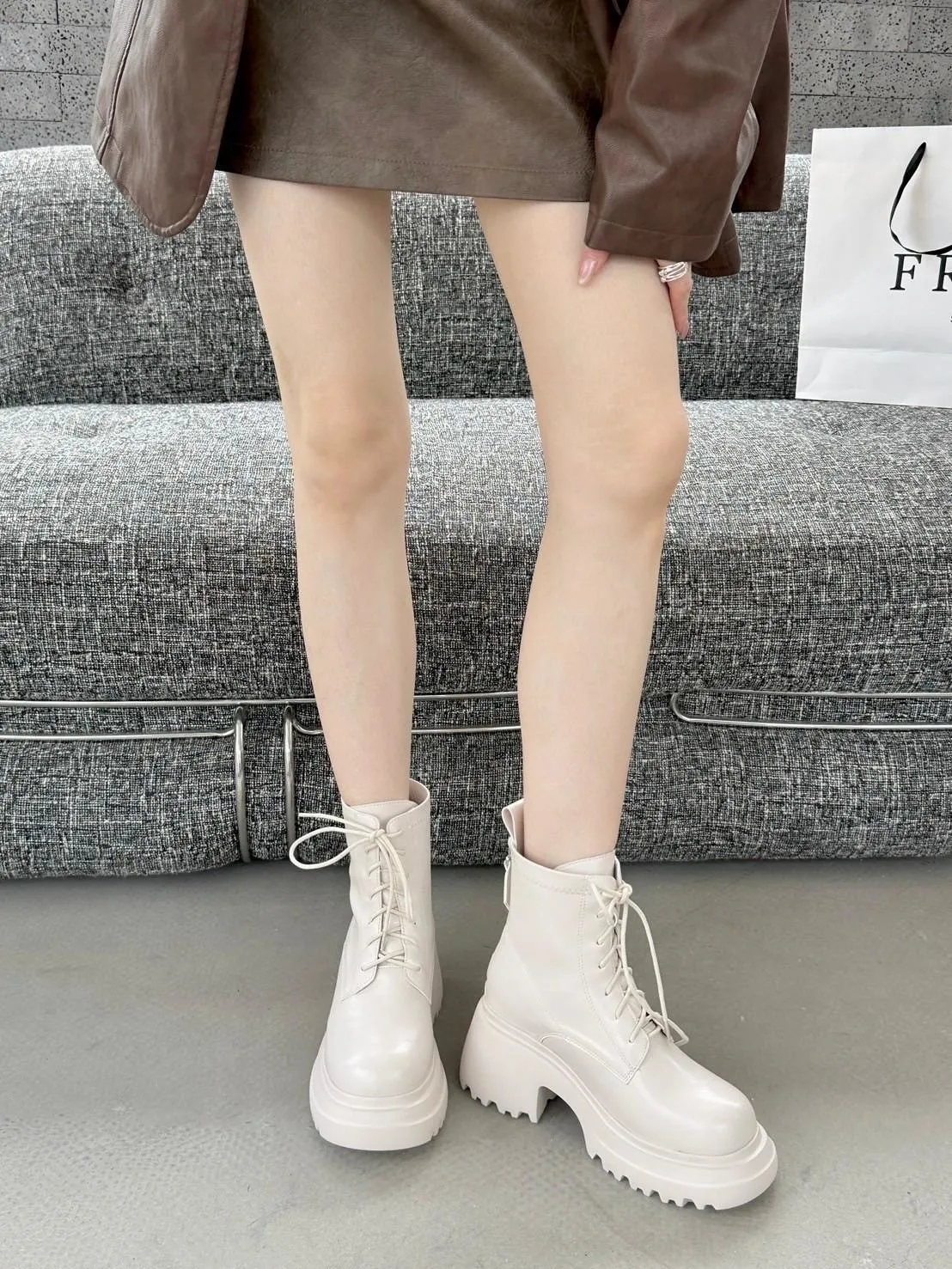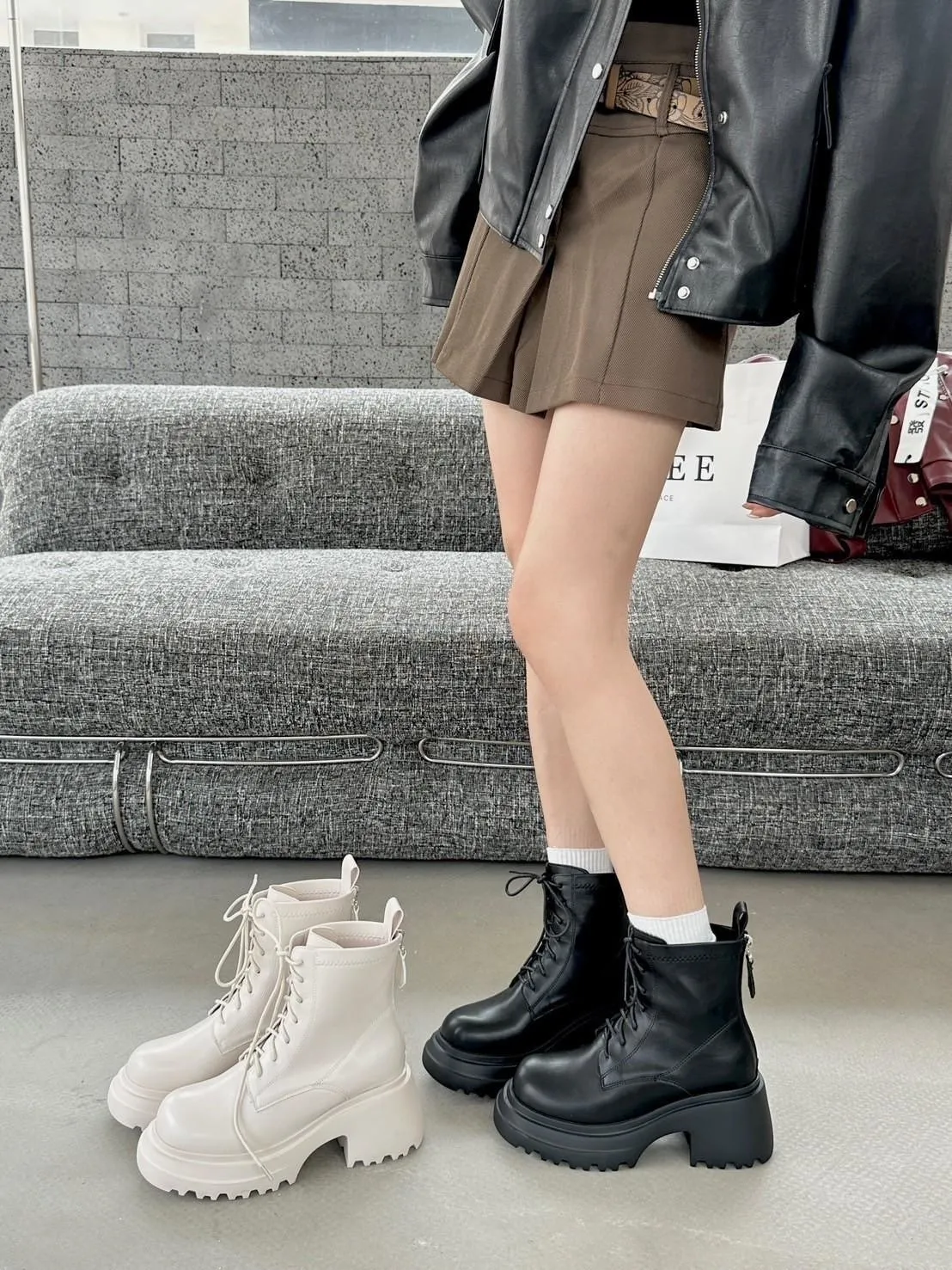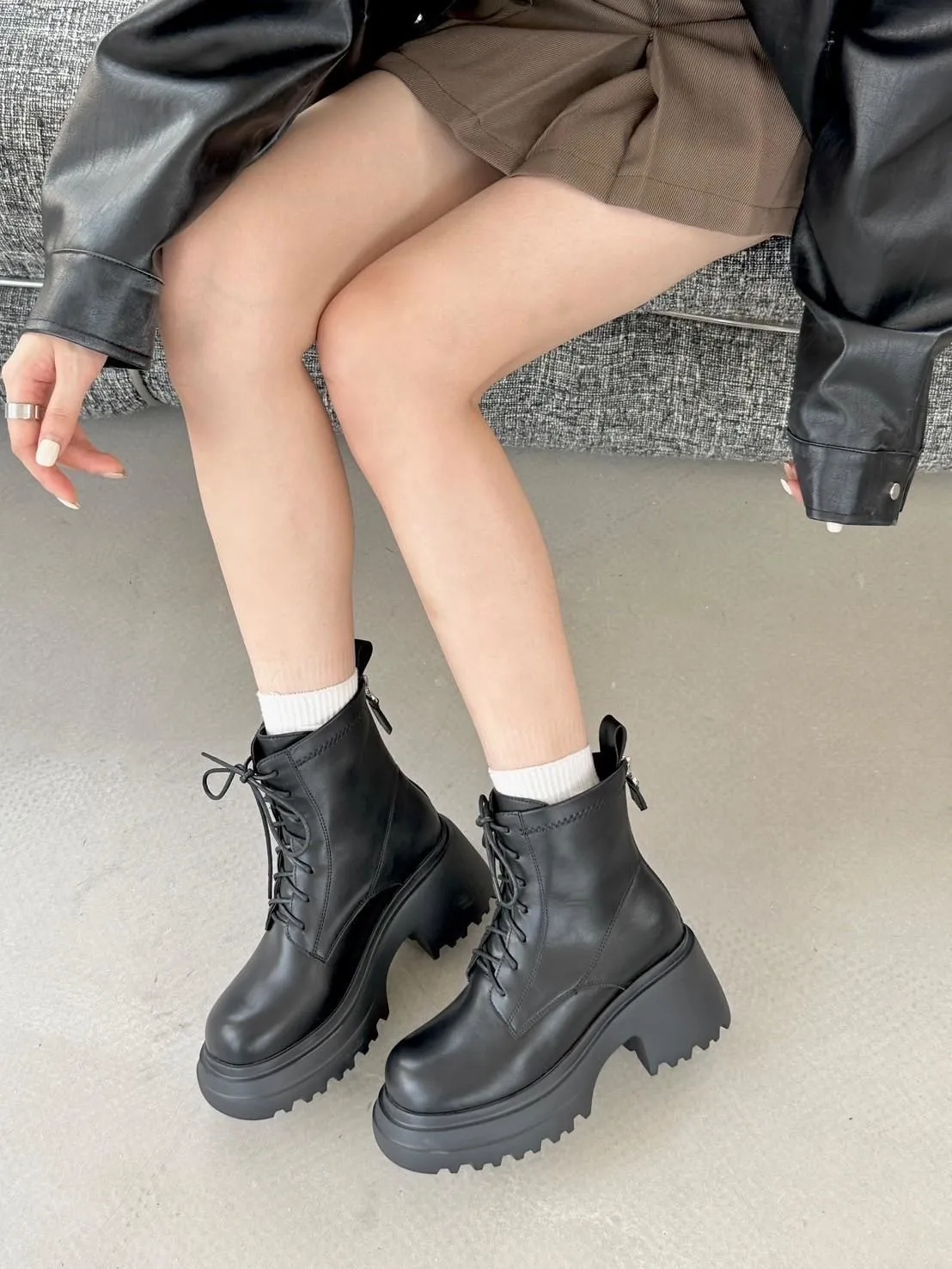 闆娘加碼!限11/7結帳!今天才有 再送彈力小腿襪一雙(一雙靴送一雙襪喔!) 尺寸: 正常版型挑選BLACKPINK在高雄演唱會Lisa同款綁帶短靴當時看演場會就被LISA穿搭的這雙靴子燒到 !這雙綁帶短靴簡直氣場爆棚姐的氣派就這樣衝上來了哈哈哈整個人也更有自信厚底+粗跟就是經典版型巨百搭!搭配長大衣或迷你裙都超時髦大學T 帽T 休閒風這雙也能搭的很好看穿上就不想脫下來🖤 不用看到綁帶就先擔心很麻煩 貼心的側拉鍊設計穿脫一把罩日常更省時方便! 以後出門也不用再擔心要怎麼搭配 因為怎麼搭配怎麼好看,不同顏色也有不同感覺 選色小建議: 第一次入手 絕對不出錯的黑色 若已購入過深色系 這次可試試看白色 以前我也擔心怕髒一直遲遲不下手 但買來搭配後發現有時候腳上換一雙白靴 就可以展現不同層次的美感 比黑色更搶眼注目 超!修!飾!腿!型!舒適材質融入時尚粗跟行走間展現甜甜的酷感 穿起來長腿再也不是夢 鞋跟高度8公分穩固粗跟舒適顯瘦筒長16公分剛好在小腿最顯瘦的位置只能說這雙超厲害!!!