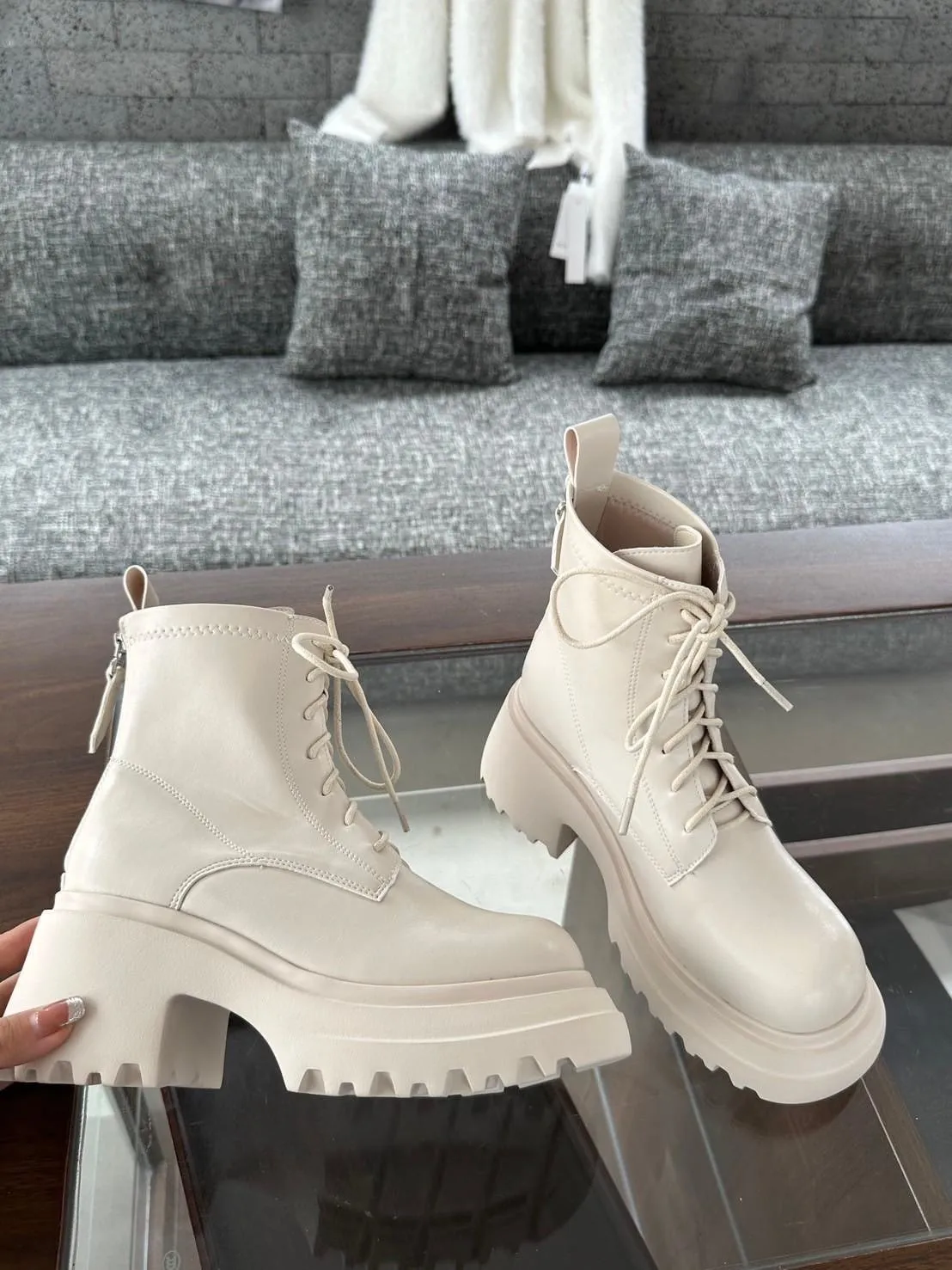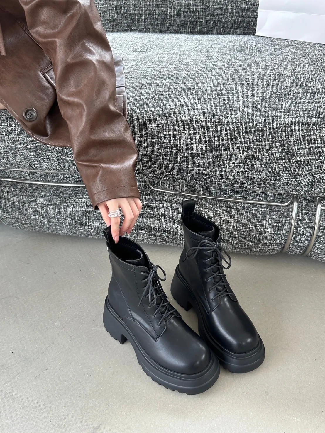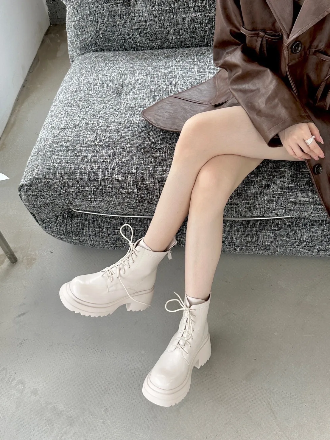 闆娘加碼!限11/7結帳!今天才有 再送彈力小腿襪一雙(一雙靴送一雙襪喔!) 尺寸: 正常版型挑選BLACKPINK在高雄演唱會Lisa同款綁帶短靴當時看演場會就被LISA穿搭的這雙靴子燒到 !這雙綁帶短靴簡直氣場爆棚姐的氣派就這樣衝上來了哈哈哈整個人也更有自信厚底+粗跟就是經典版型巨百搭!搭配長大衣或迷你裙都超時髦大學T 帽T 休閒風這雙也能搭的很好看穿上就不想脫下來🖤 不用看到綁帶就先擔心很麻煩 貼心的側拉鍊設計穿脫一把罩日常更省時方便! 以後出門也不用再擔心要怎麼搭配 因為怎麼搭配怎麼好看,不同顏色也有不同感覺 選色小建議: 第一次入手 絕對不出錯的黑色 若已購入過深色系 這次可試試看白色 以前我也擔心怕髒一直遲遲不下手 但買來搭配後發現有時候腳上換一雙白靴 就可以展現不同層次的美感 比黑色更搶眼注目 超!修!飾!腿!型!舒適材質融入時尚粗跟行走間展現甜甜的酷感 穿起來長腿再也不是夢 鞋跟高度8公分穩固粗跟舒適顯瘦筒長16公分剛好在小腿最顯瘦的位置只能說這雙超厲害!!!