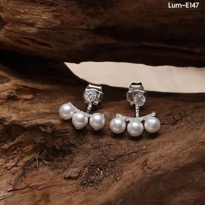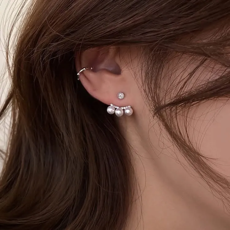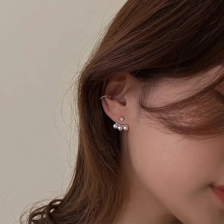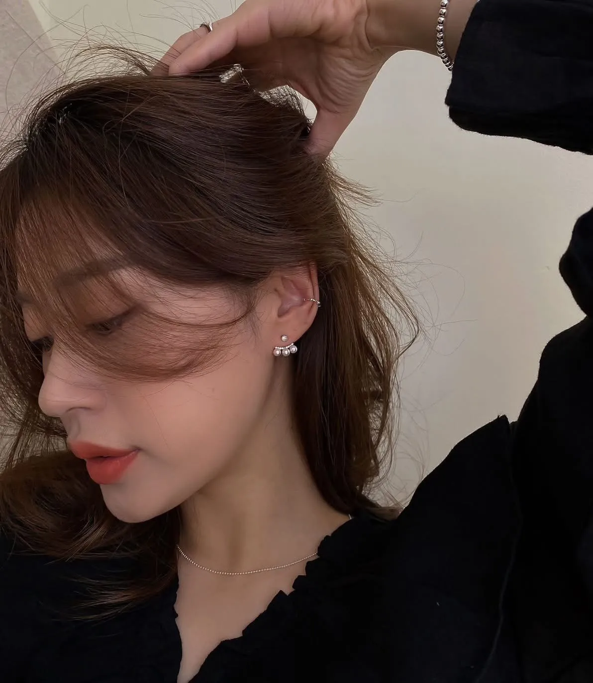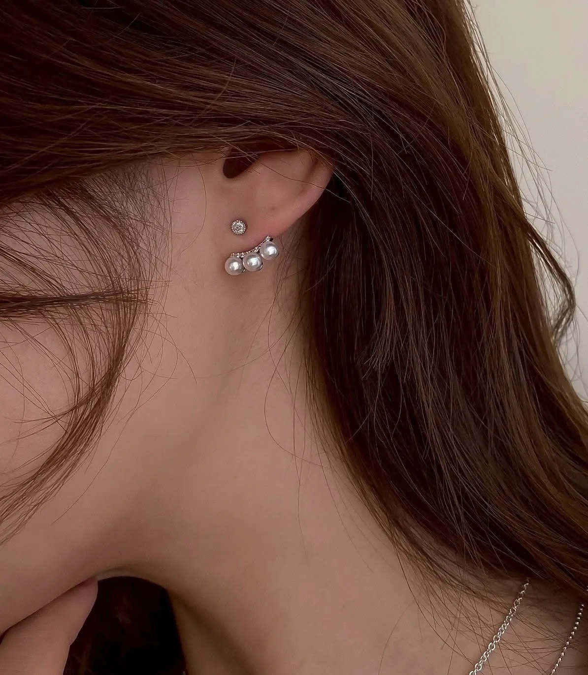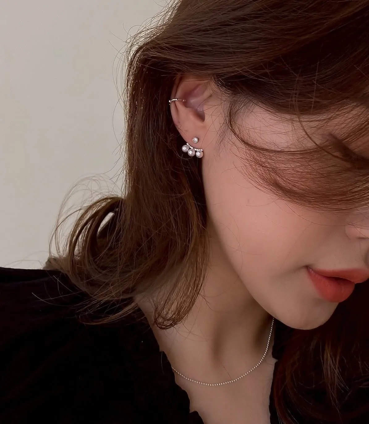 珍珠整齊排列在耳垂下方,讓臉部線條更柔和~