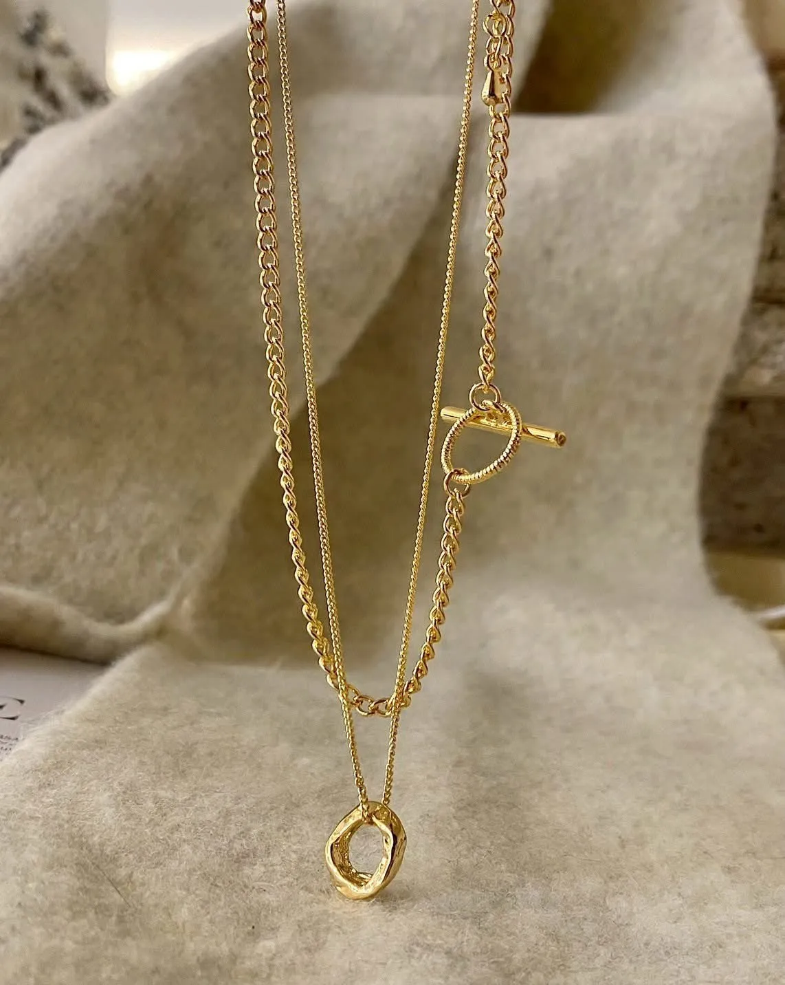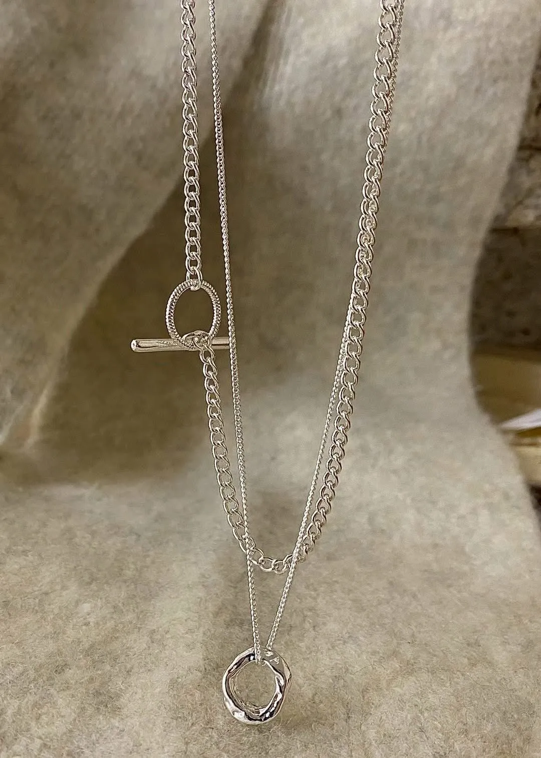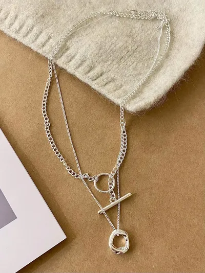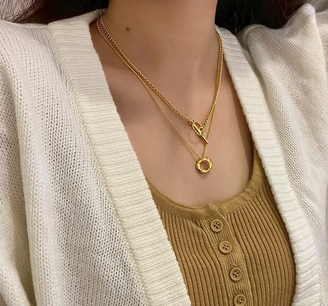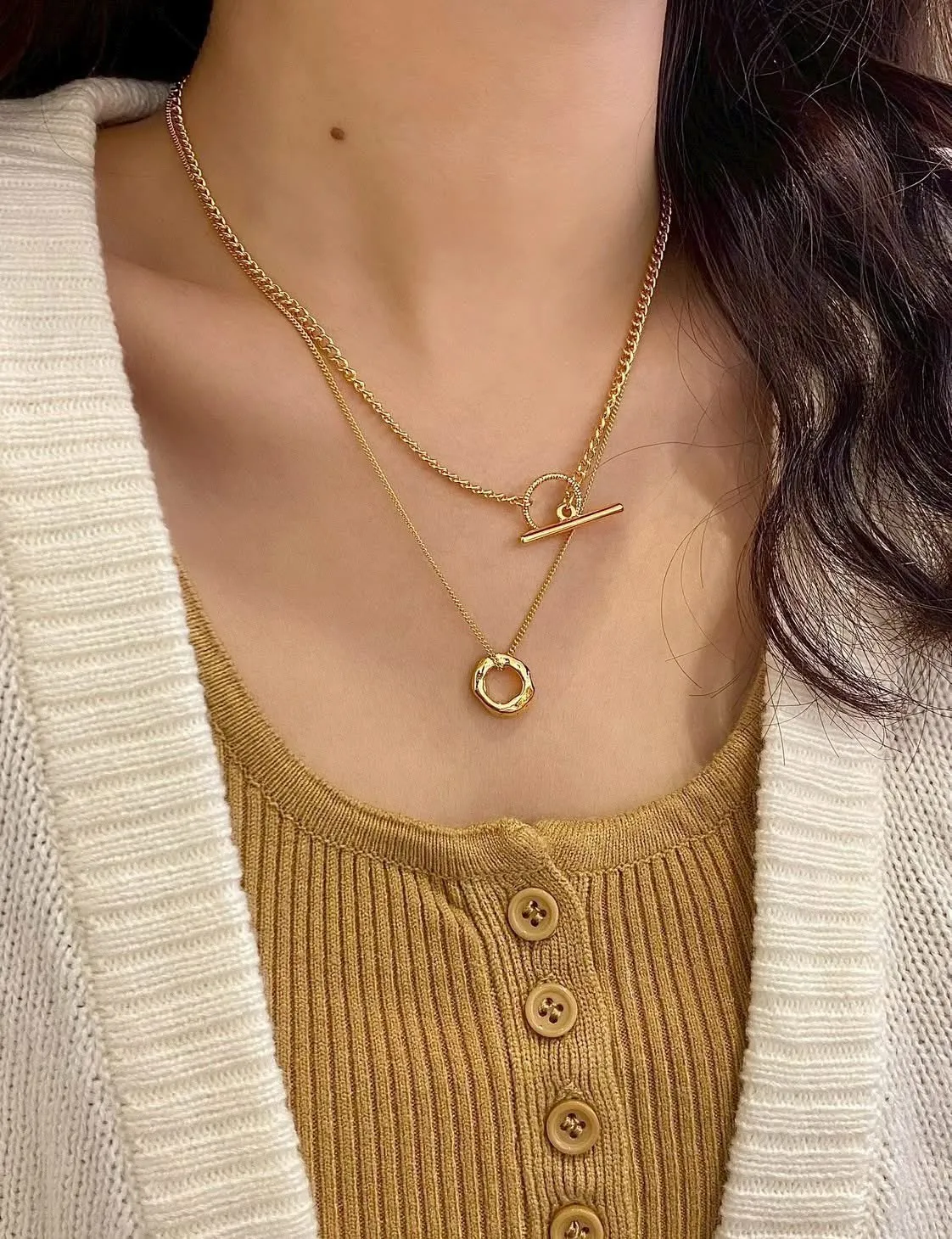 正韓 雙層毛衣鏈OT釦項鍊