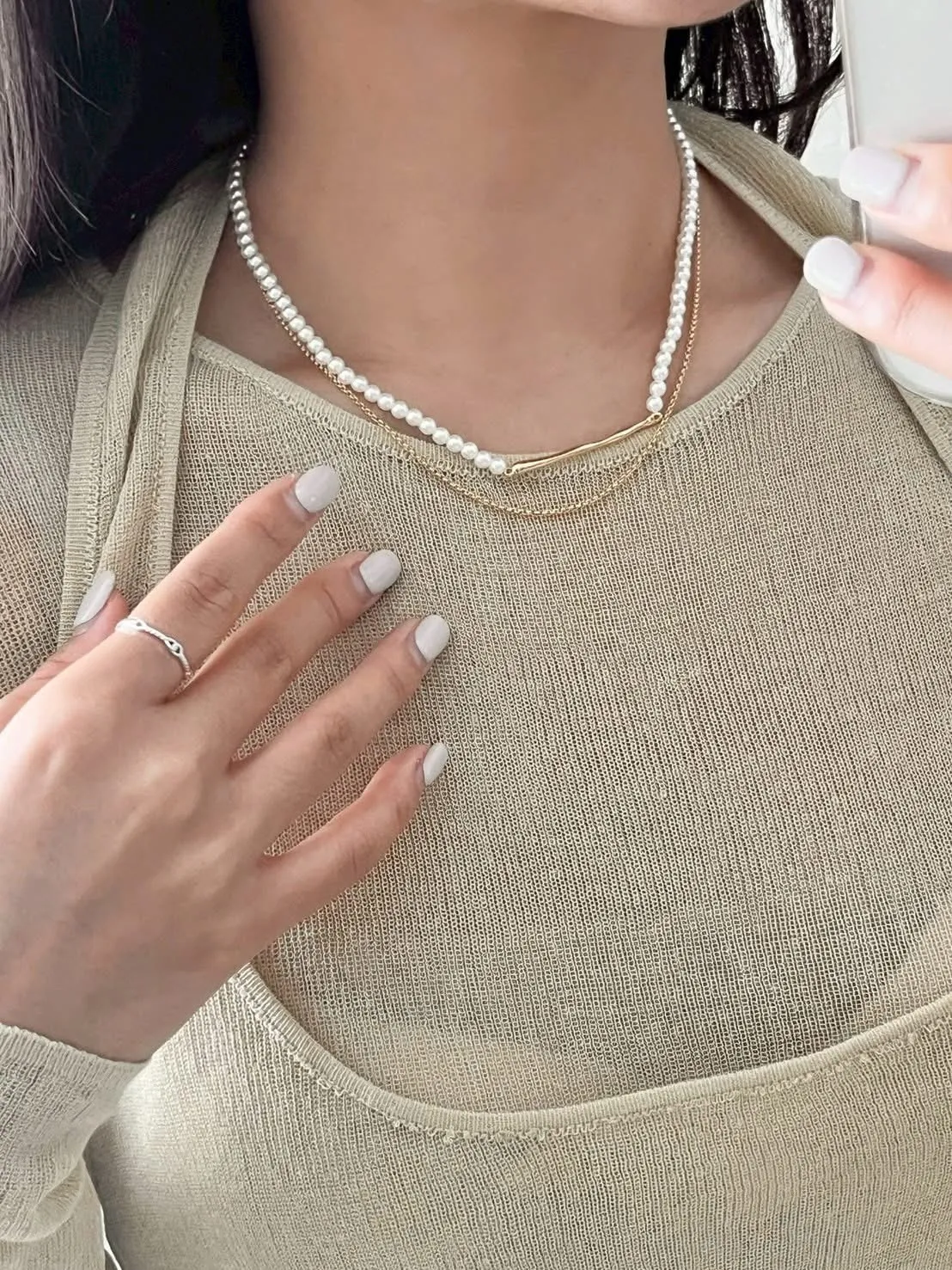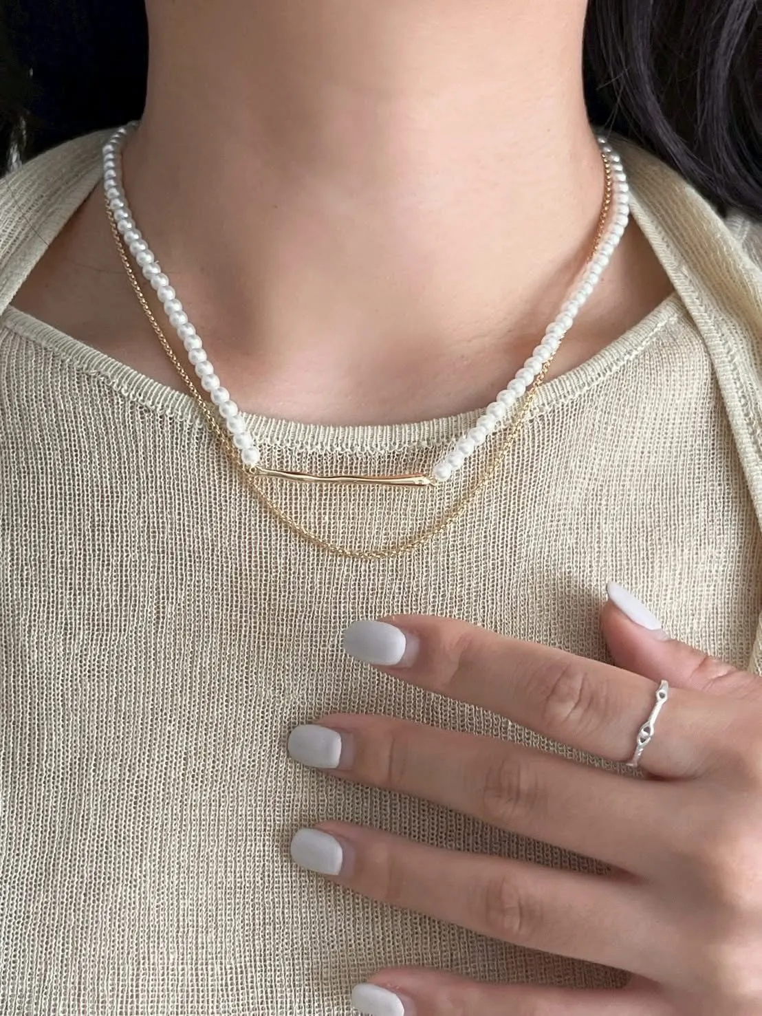 正韓 幸運樹枝珍珠雙層造型項鍊