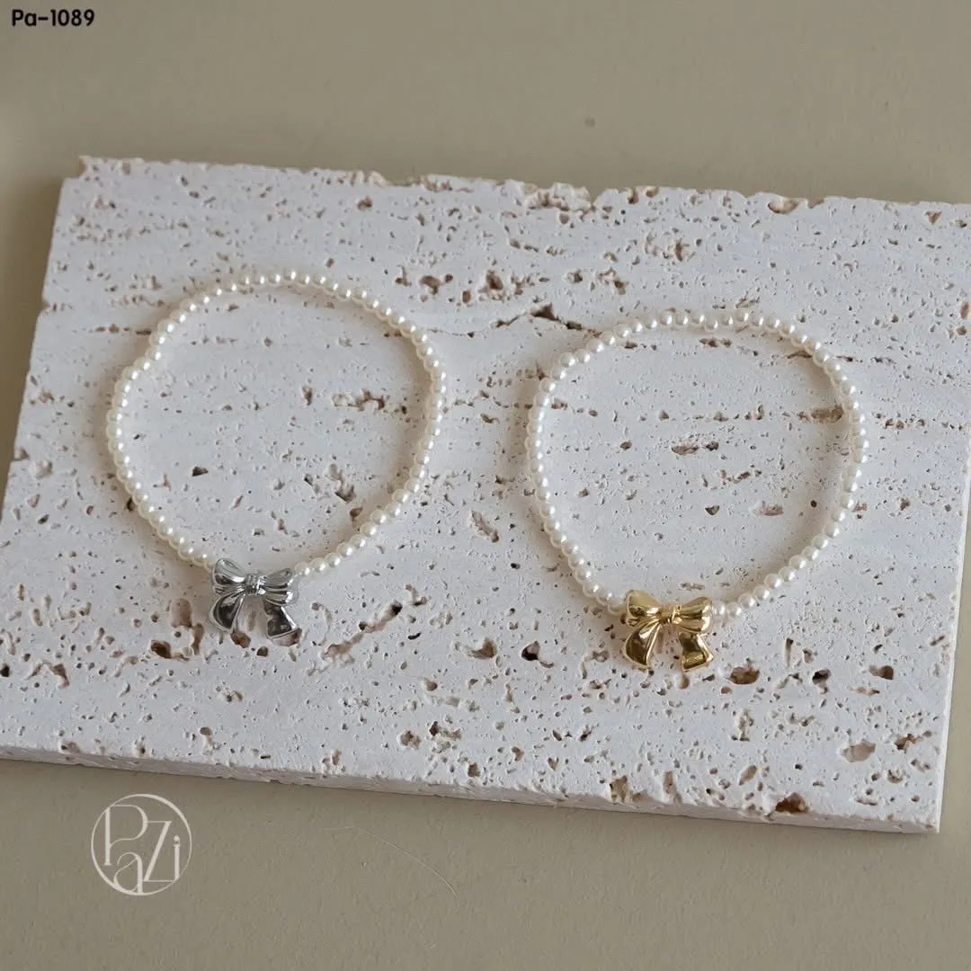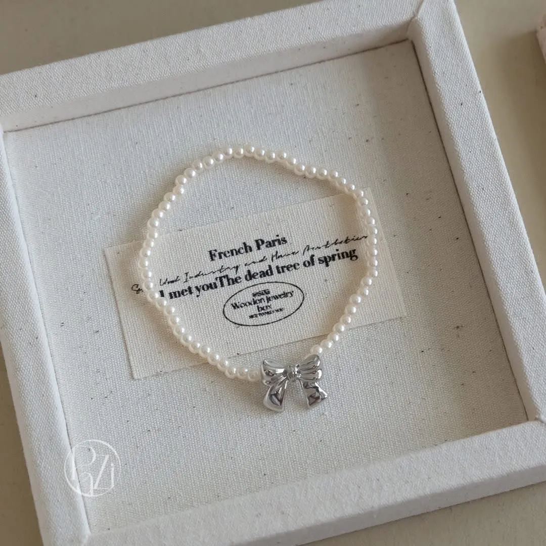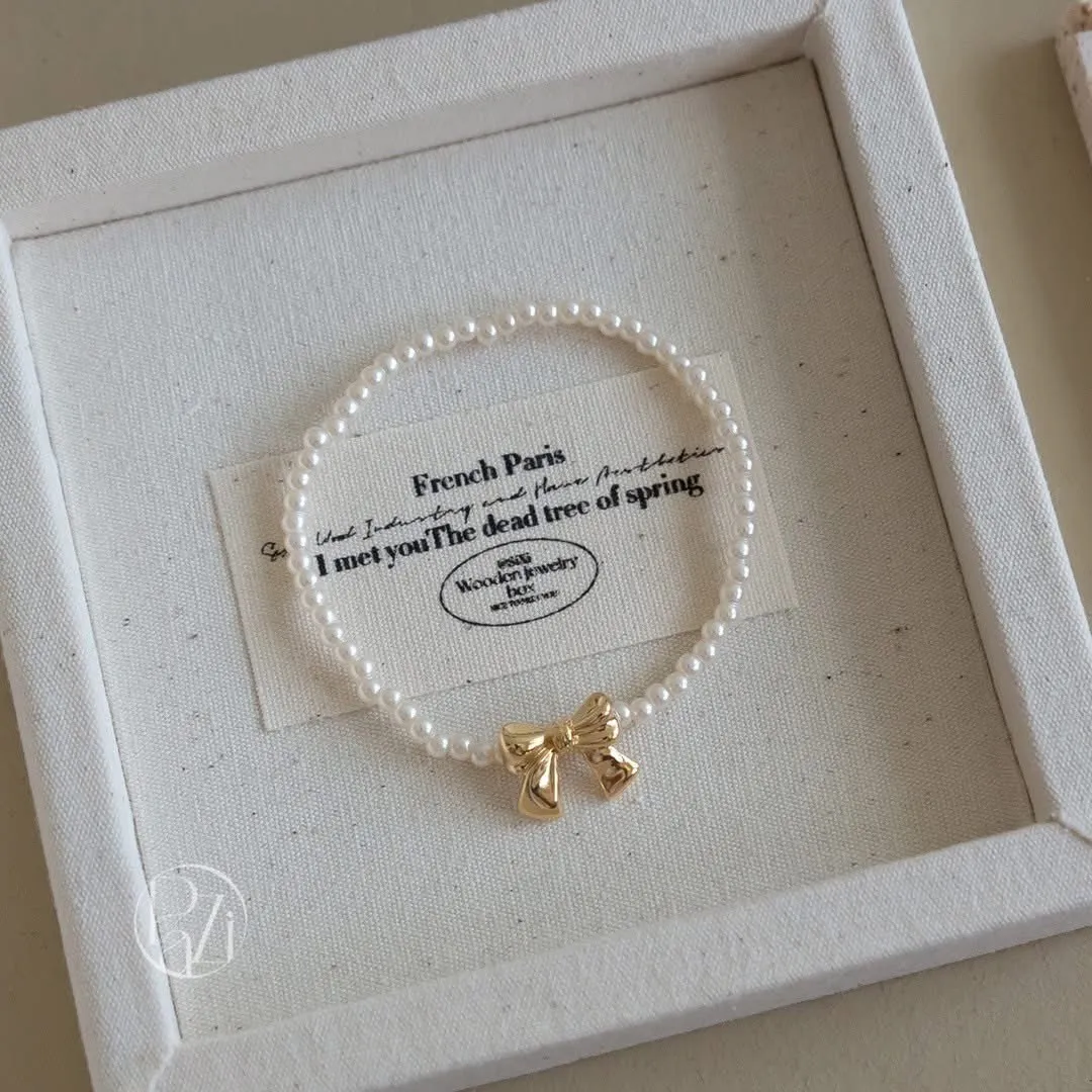正韓 浪漫氛圍蝴蝶結珍珠手鍊