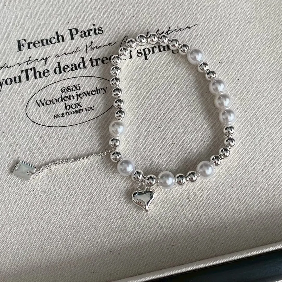 正韓 愛心x珍珠x吊牌時髦手鍊