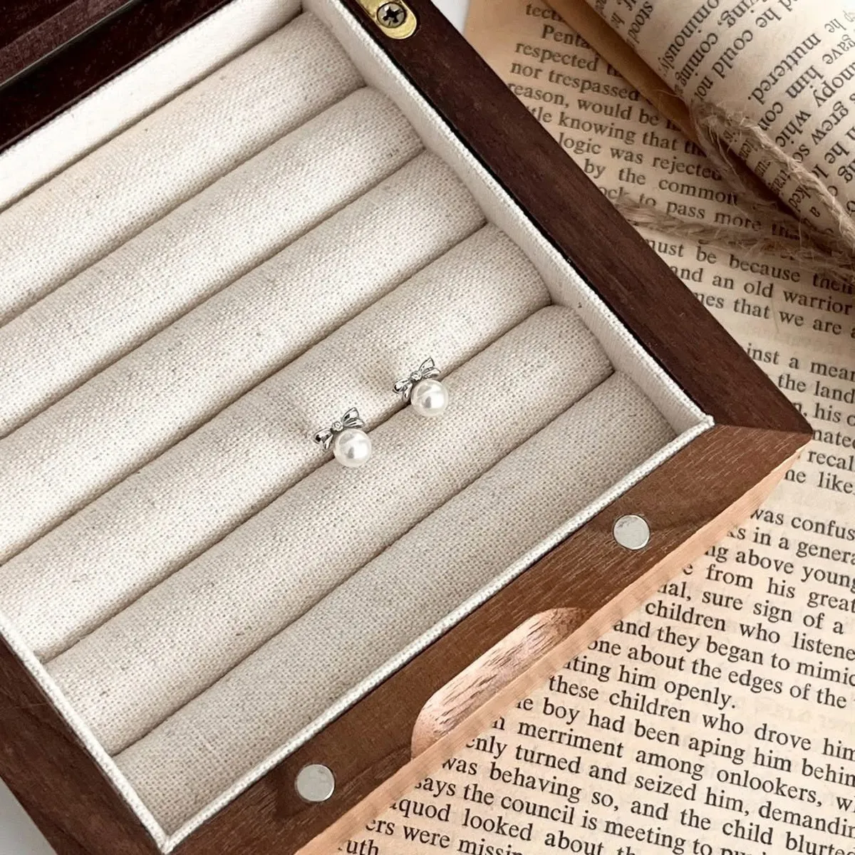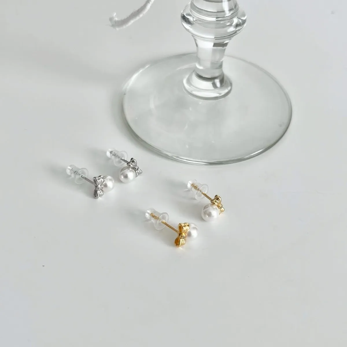 正韓 約會必備氣質蝴蝶結珍珠耳環