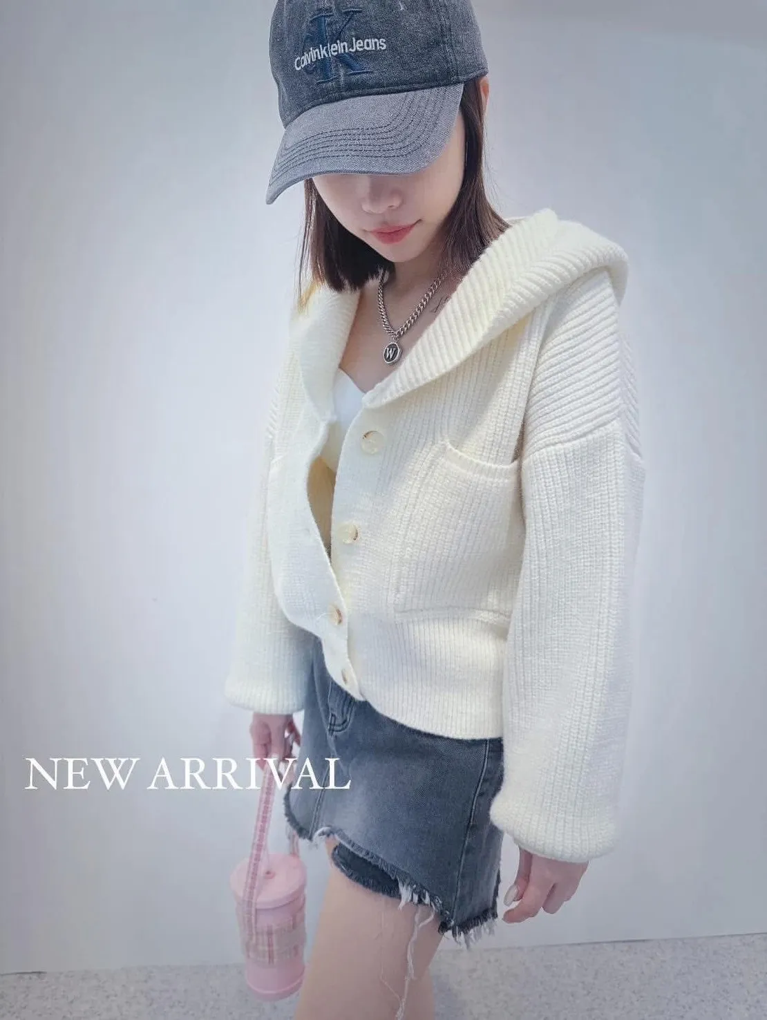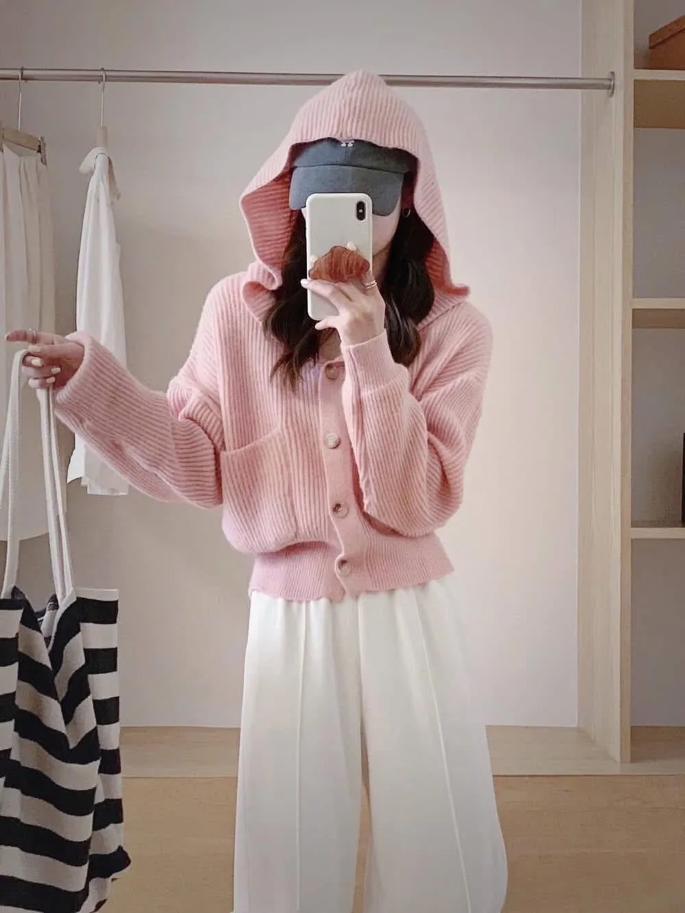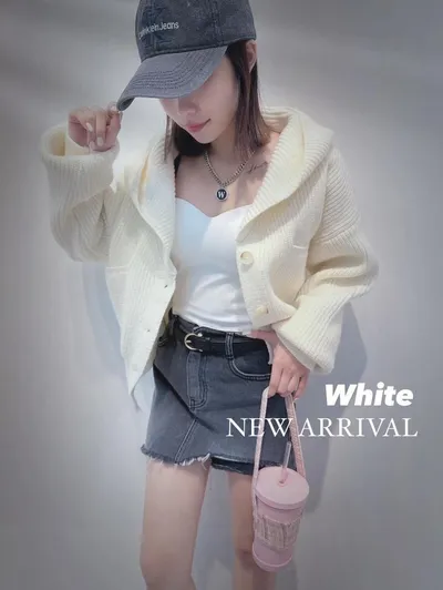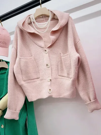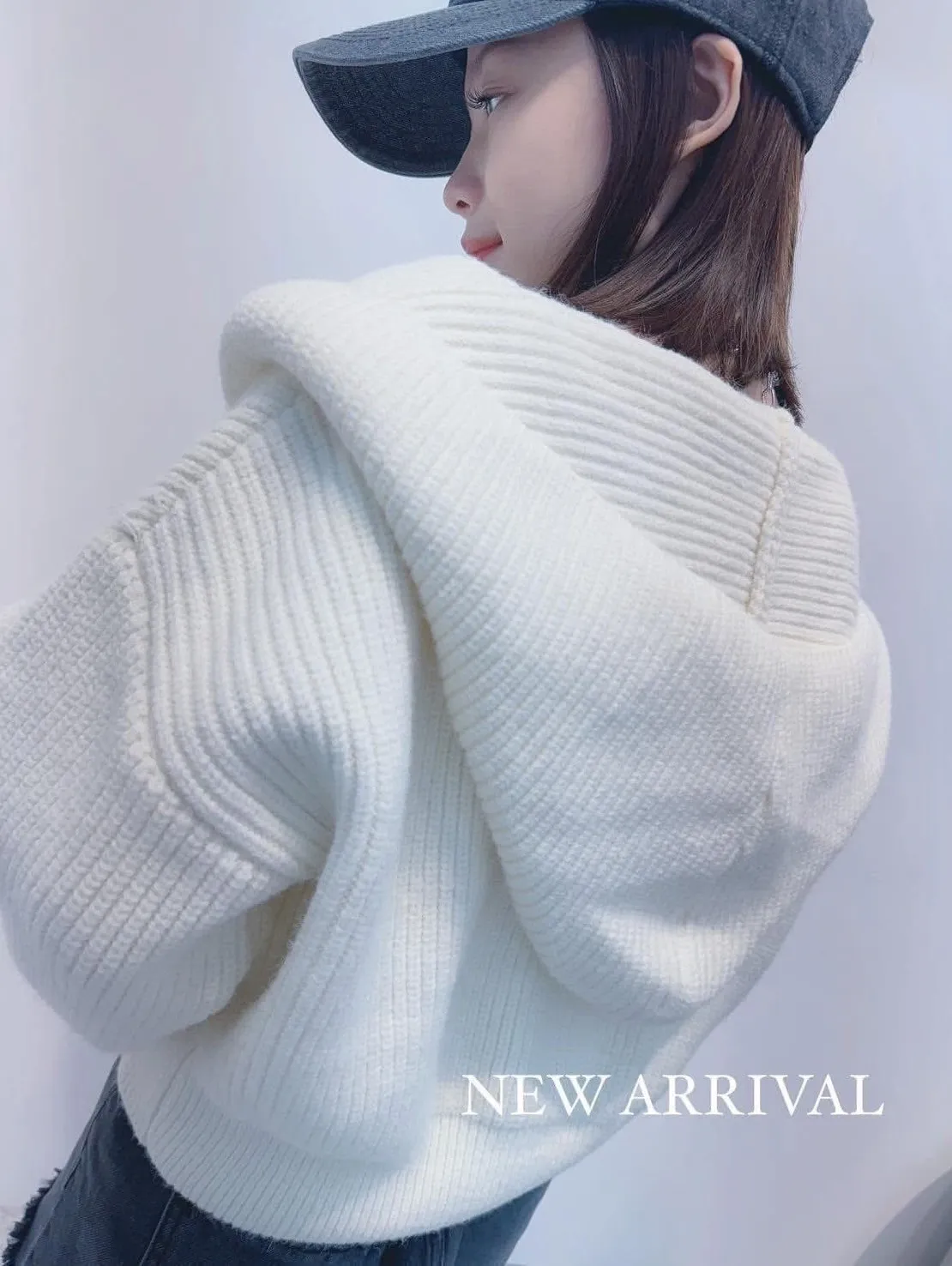 超美的顏色!高標準等級厚磅針織帽領上衣/外套