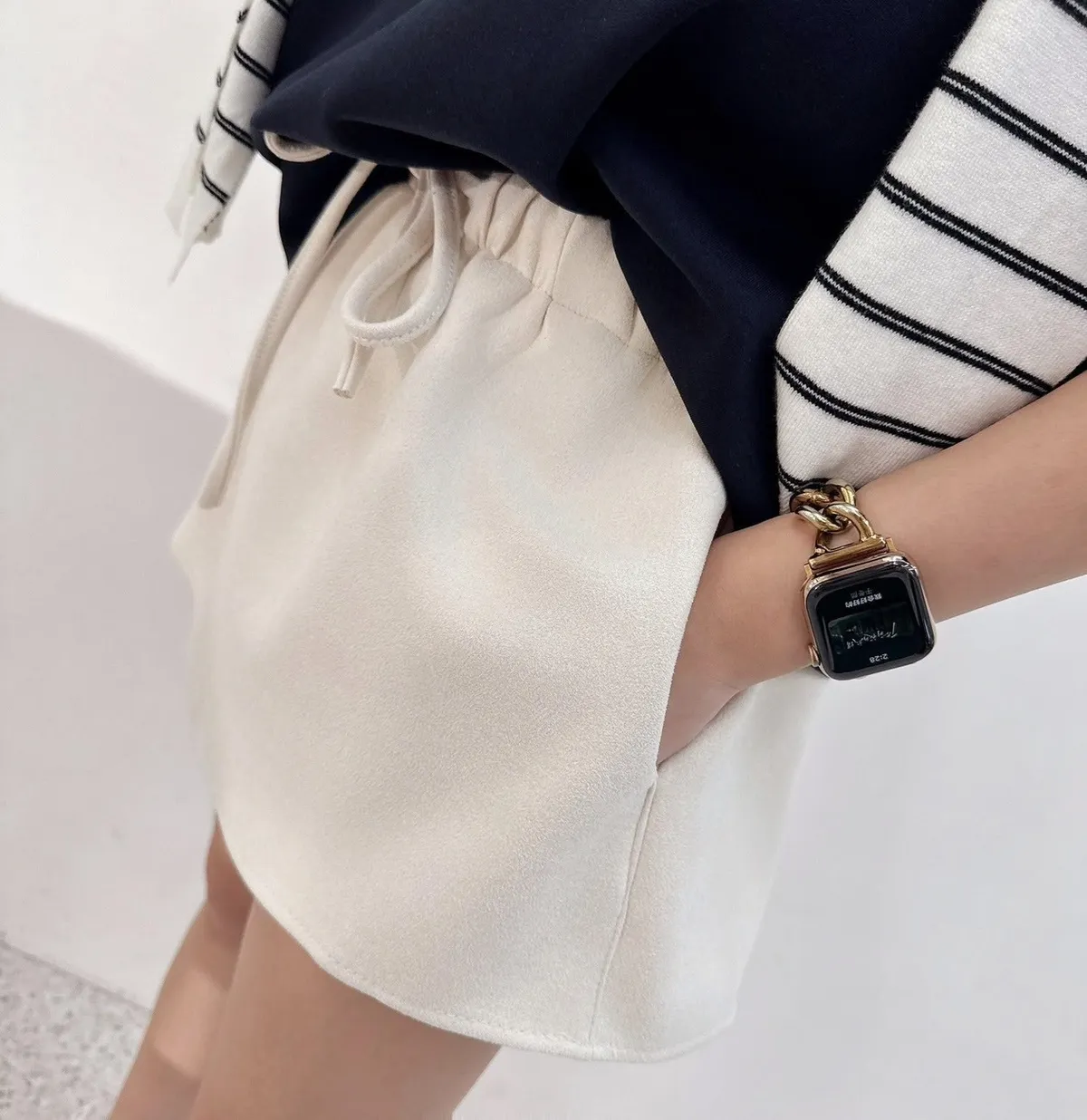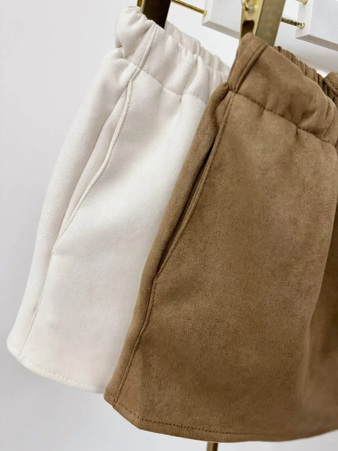 親膚性の手感麂皮料!超美 懶人穿搭的福音!不用煩惱上衣配什麼彈性腰圍彈性鬆緊設計 實體質感真的很美 · 很舒服 不僅有口袋,還貼心設計了內接安全褲 活動起來完全不怕曝光,穿起來自在又有安全感! 包容度也是激激激大!滿足各種身形給人簡單修飾的效果 腰圍30 · 拉大50 ‘ 臀圍50 ’ 全長28 公分