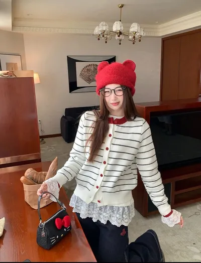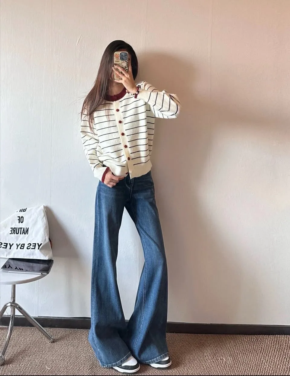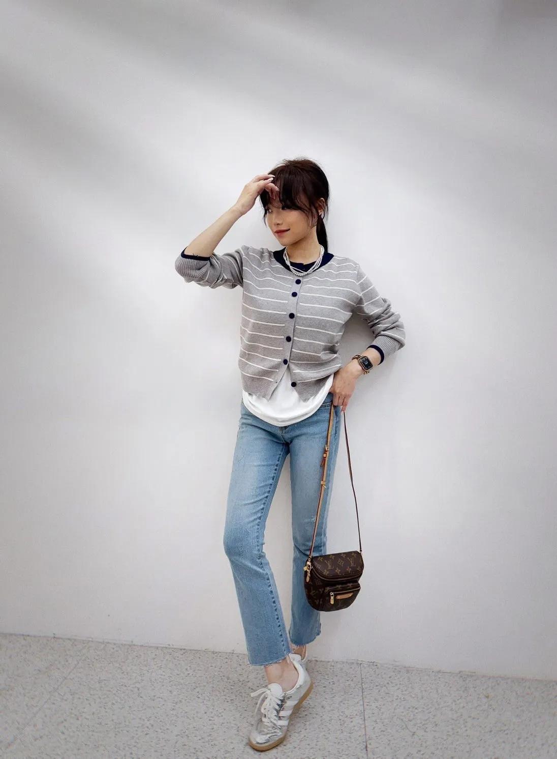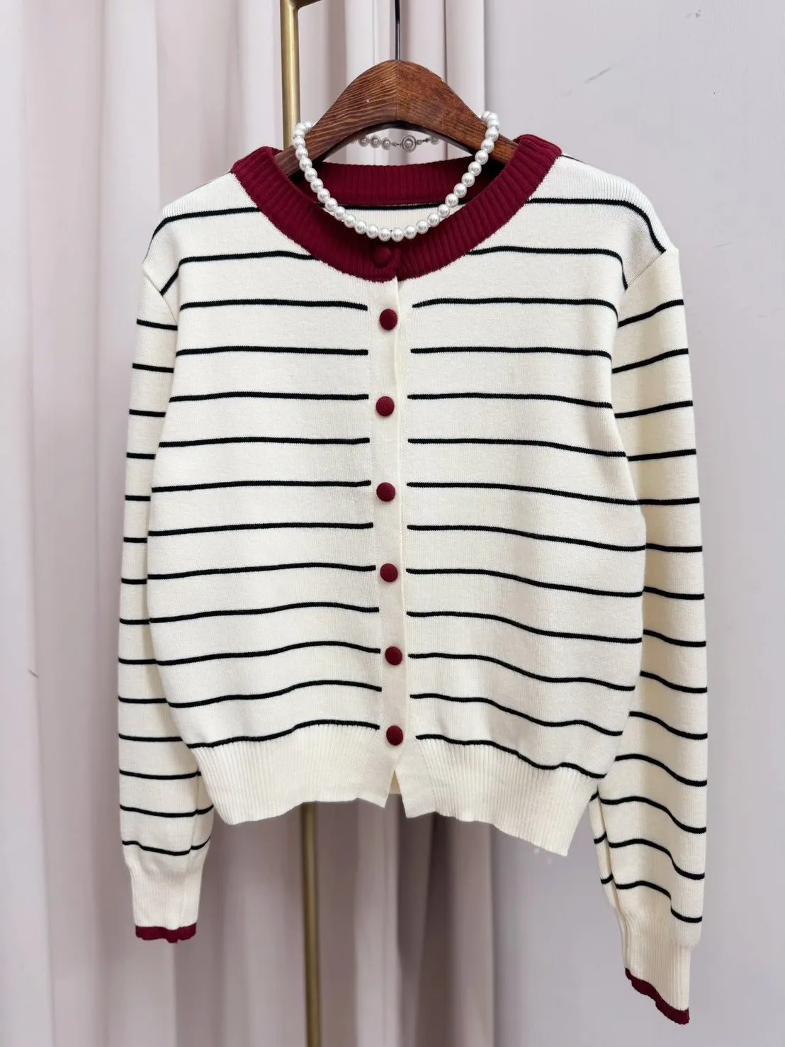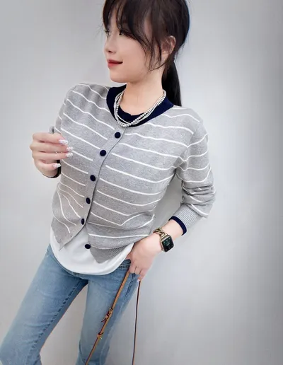 條紋配色有設計感不過於花俏!條紋元素一直是經典中的經典配色讓整件衣服更有設計感每年都可以拿出來搭配 版型不會太大 穿起來很有精神 穿起來是慵懶的鬆弛感~輕鬆穿出品味! 單穿 · 罩衫外 · 披肩 活潑可愛的條紋不同於一般的條紋設計配色讓人眼前一亮尺寸: 肩寬40 ‘ 胸圍45 ’ 全長52公分