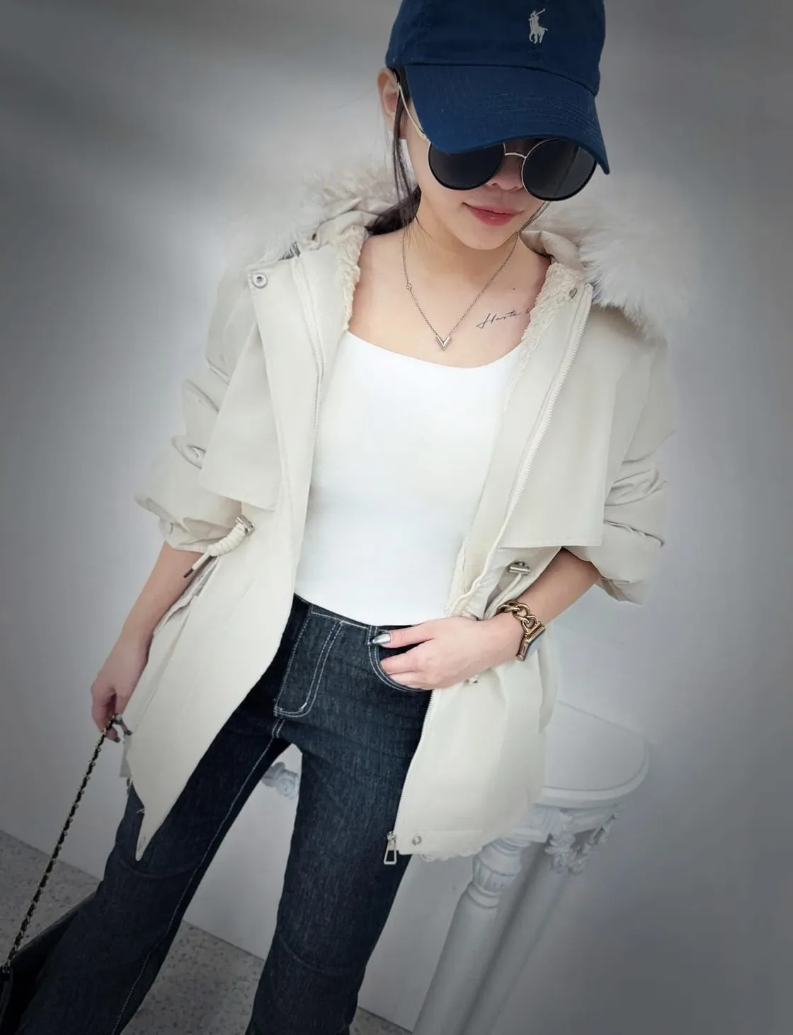 這件無敵推薦你們買!!!高cp值保暖外套!照片都是真實還原呈現顏色沒有過多濾鏡就是這麼漂亮版型就是這麼好看又顯瘦那個毛毛就是這麼澎!不騙人的漂亮!小幫手說很像之前在東京百貨公司買的專櫃外套我們這件價格只要1/4不到 哈哈哈很適合女生穿搭的款式版型正常(嬌小女生也不會覺得被壓身材的感覺)來!!!重點是!!!毛帽(毛可拆) + 鋪棉 + 內裡絨毛(不可拆) 🔥 🔥 🔥 內絨毛保暖程度更上一階重點是穿起來完全不會像氣球一樣澎起來你們懂我說的吧!真的很難得有鋪棉外套可以做到這樣俐落版型又兼具保暖~款式很特別又日系! ♡ 微防水(當然下大雨千萬不要淋雨捏 ♡ 防風個人認為可擋90%防風 #真的很強 ♡ 本人試過不是太過分的髒,濕紙巾就可擦乾淨 ♡ 腰圍可自行拉繩 控制美美的腰身 口袋可以放手機+鑰匙,超加分 長度蓋屁股,冬天這件一定要有 台灣的天氣裡面搭個高領或T 再加上這件我覺得就夠保暖了~ 下身搭牛仔褲/小喇叭寬褲/或是裙子都很可愛 沒什麼風格上的限制唷! M 小S • S 人可穿• 落肩·胸55· 長 67 L M • 大M 人可穿• 落肩· 胸56·長 69 XL L • 大L 人可穿• 落肩·胸57· 長 70(公分)