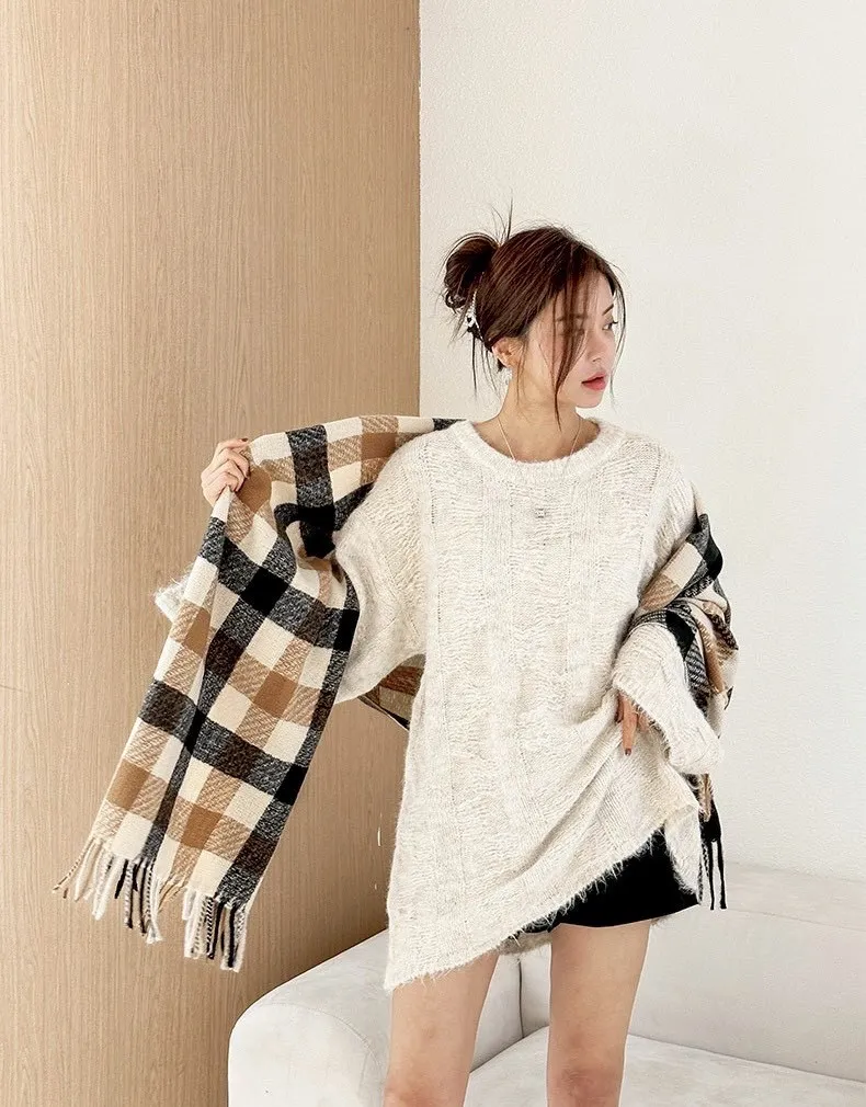 冬天少不了一條溫暖又有造型感的格紋圍巾經典格紋搭就算是簡單的素T也變得很有型 可圍、可披也可繫!多種系法好超值! 精選好手感軟糯的親膚面料,不會扎皮膚 看起來也更加高級有質感! 加寬加大的版型,包容度大大的提升 冬天用來更保暖也更有安全感 圍起來修飾身形也顯得臉更小啦! 男女都適合用的經典格紋!!尺寸:約60 × 190 cm