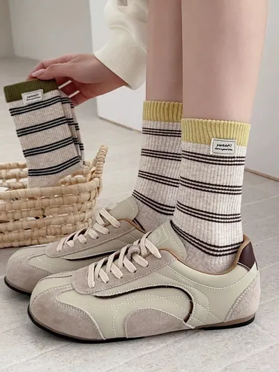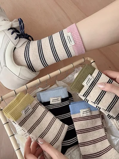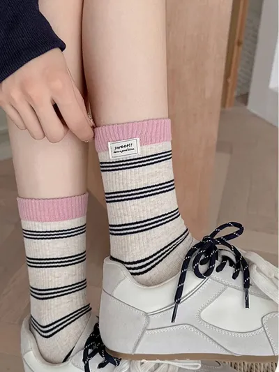 這組條紋雙色的棉質襪,有一種剛剛好的小清新感