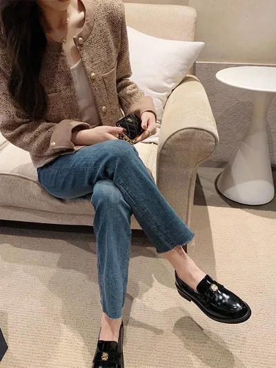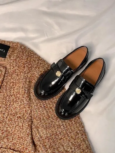 鞋型是俐落的英倫線條,搭配山茶花金釦點綴,優雅得很剛好選用真皮材質打造,鞋面光澤細膩搭配金色立體山茶花金屬扣飾整體質感瞬間升級展現低調中的奢華氣息鞋型利落簡潔,微方圓頭設計修飾腳型自然拉長腿型搭配平穩厚底結構,走起路來更加穩定舒適經典黑色非常百搭,無論是搭配西裝褲或是與牛仔褲、短裙混搭日常造型都能輕鬆穿出俐落率性與精緻感尺寸:正常版型鞋底厚度2.5公分