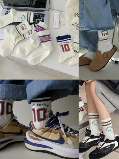 運動風字母中筒襪(一組五雙)