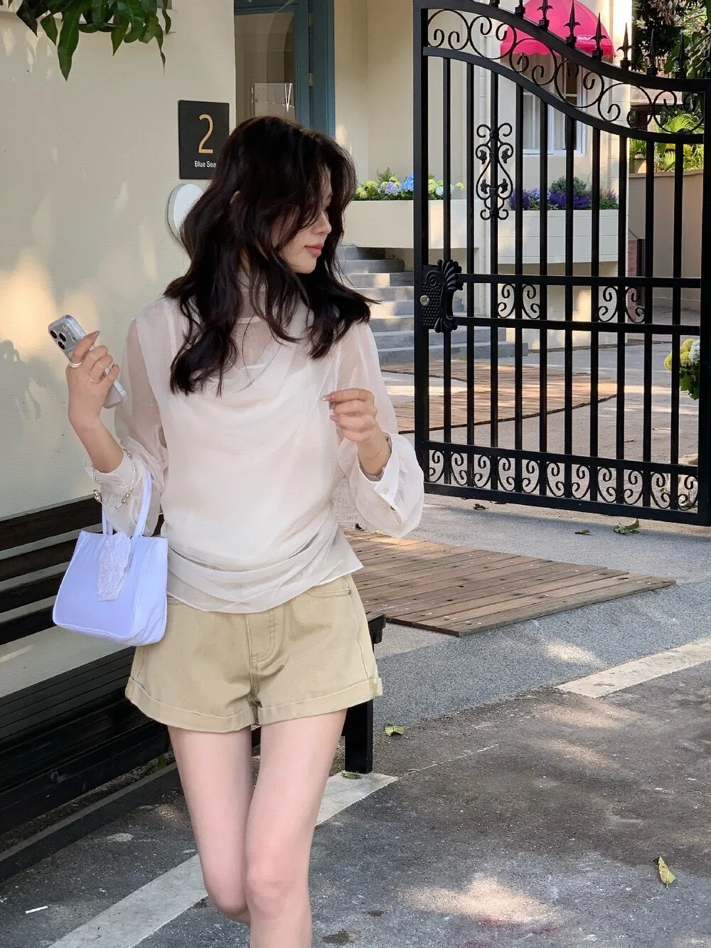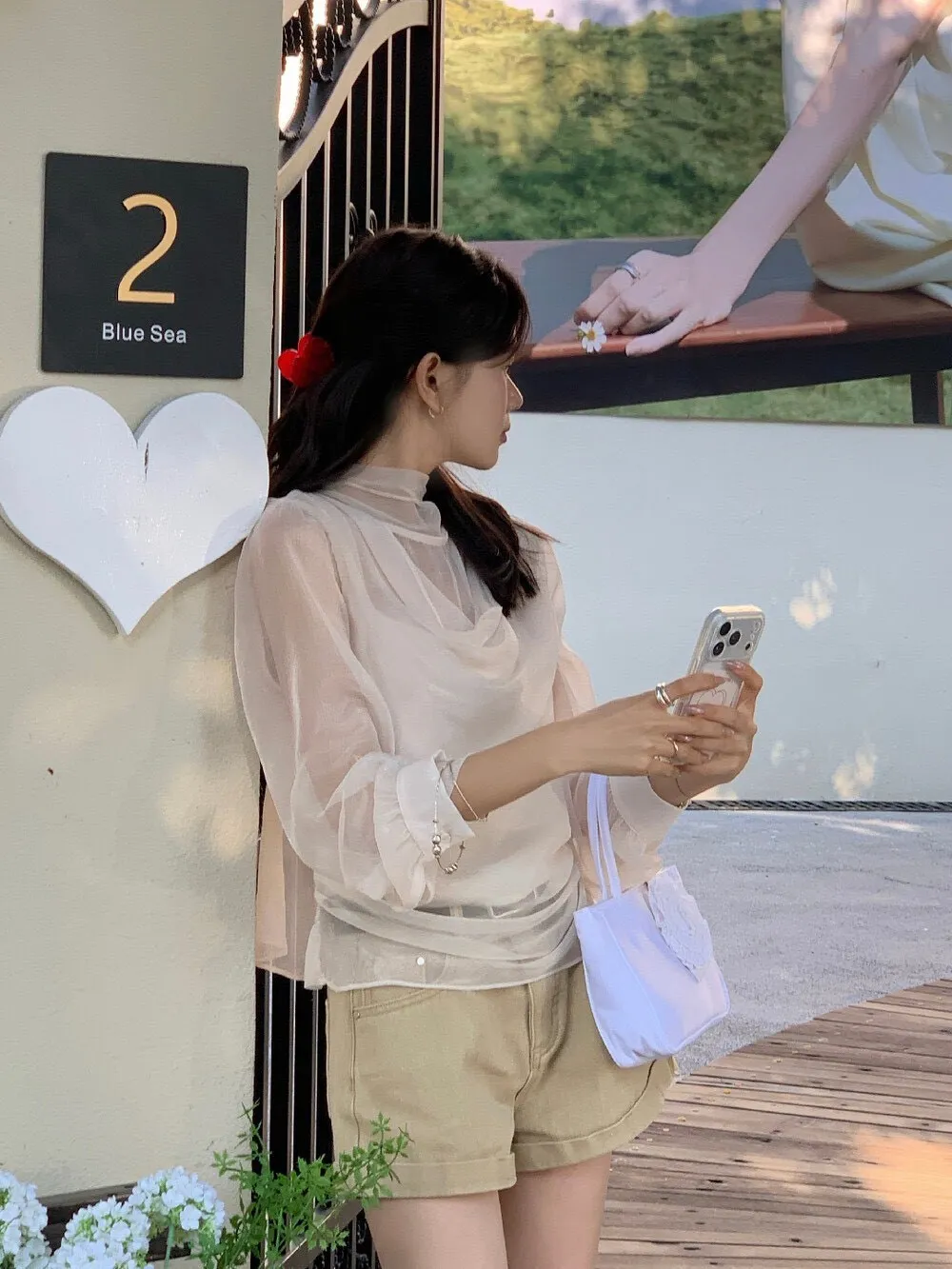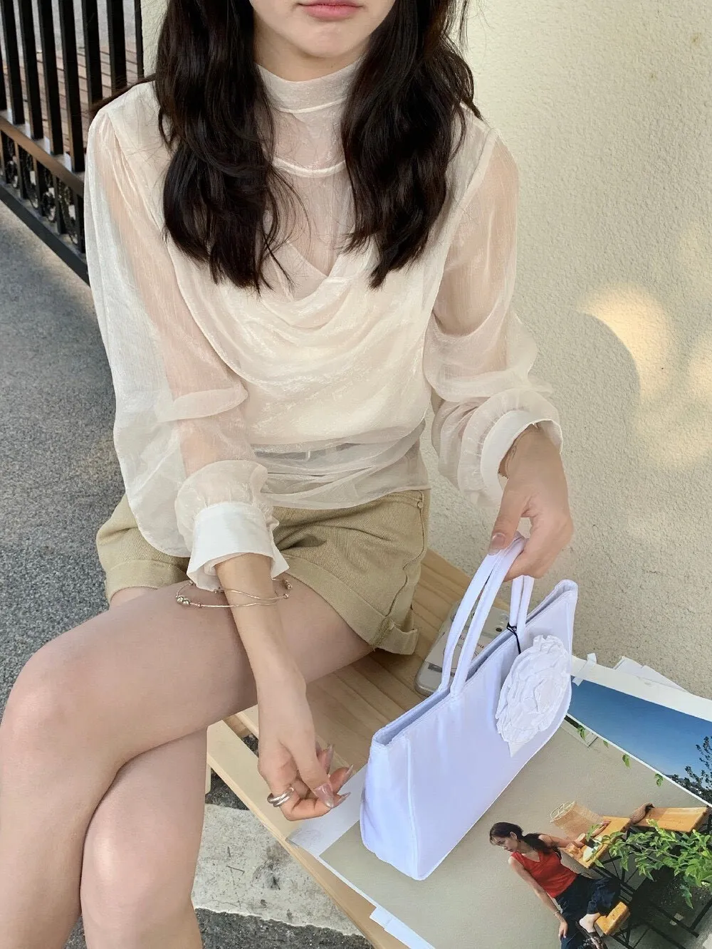 微涼的天氣加上一件雪紡襯衫剛剛好 些許的透視感帶點小性感一秒變身氣質女神 穿起來好氣質好又好顯瘦 雪紡布料質感超好 絲滑細緻的觸感 每一朵都是精緻的漂亮呈現 不管遠看近看 質感都滿分 雪紡材質的朦朧感 讓人有夢幻的美感 尺寸:胸48/全長54公分