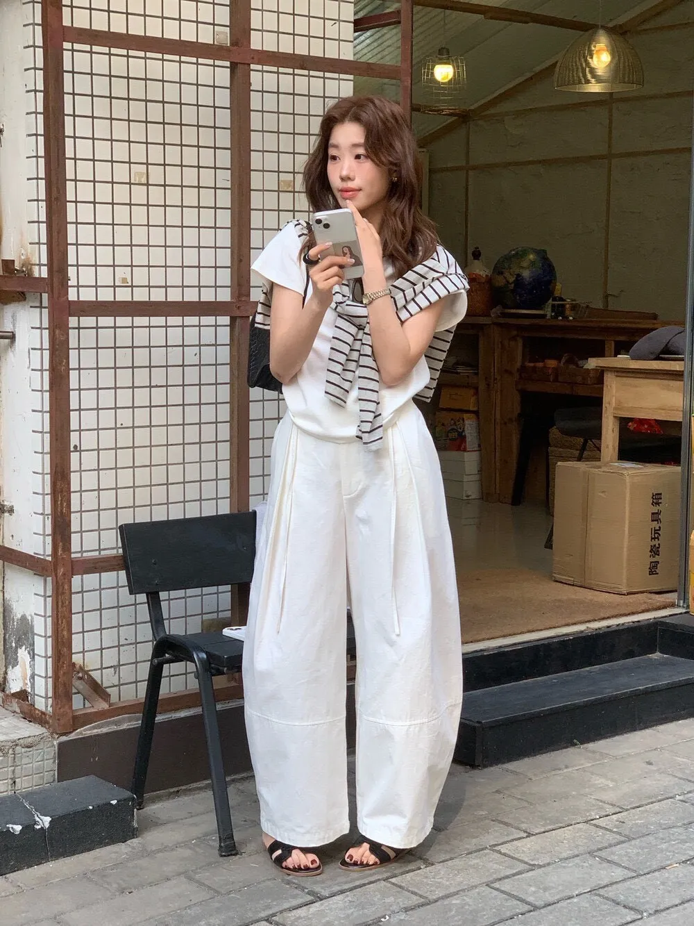 熱賣到翻的彎刀褲,春夏升級挺版棉料!顏色也更漂亮~版型做得很有sense誰穿都好看的彎刀褲必須要來一件 輕鬆穿出韓妞那種不經意的時髦感完全把日常隨便穿都變得很有型這件事發揮到極致 腰間抽繩調節,怎麼吃都不怕勒肚這種實穿單品,一定要入手!日常、出遊、上班穿都很可以! 必備口袋,手機、鑰匙隨手放 隨便搭個T恤、針織衫、甚至襯衫就能出門穿得時髦有型 尺寸: 公分S 腰33/臀66/長99 M 腰35/臀68/長100 L 腰37/臀70/長101