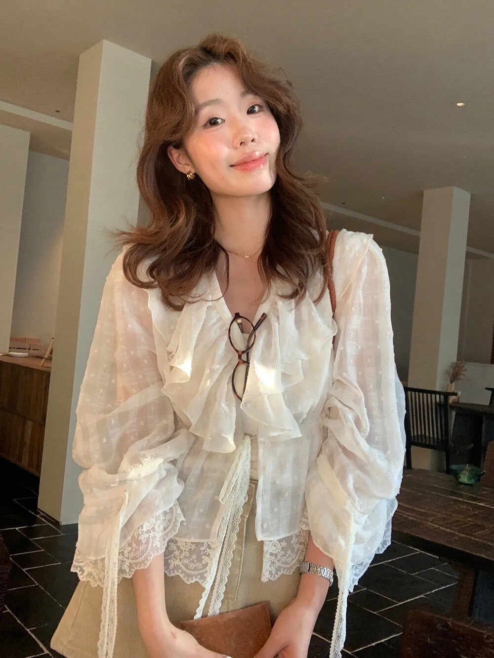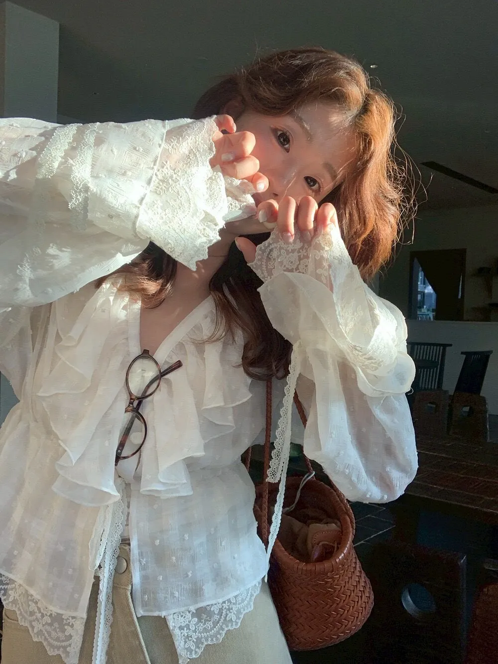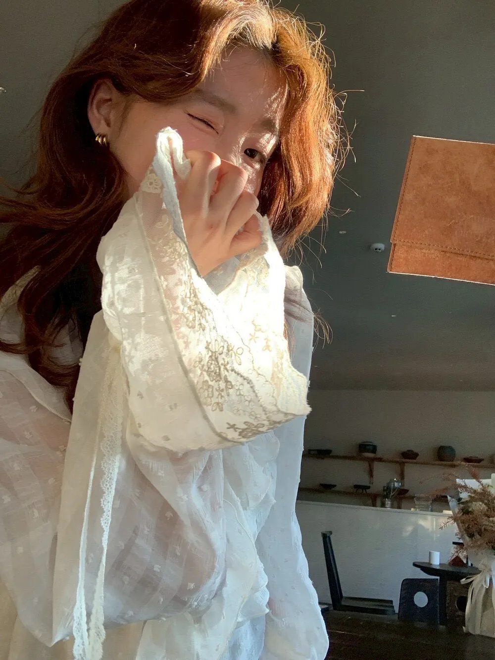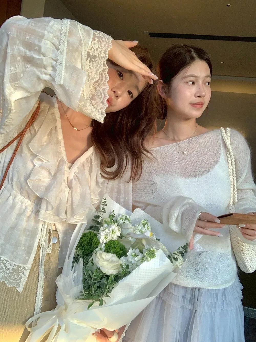 領口跟袖口的荷葉邊做得很細緻,不是那種誇張澎澎感剛剛好的浪漫,有一點法式慵懶的味道近看蕾絲布料細節真的很漂亮! 最喜歡的是它的收腰設計會自然把比例往上拉,整個人看起來更高更瘦,但又不會勒肚子搭牛仔褲是清新少女感,長裙是溫柔小姐姐 布料摸起來是柔軟親膚的材質,不會刺不悶日常約會、姐妹聚會、甚至上班搭個西裝外套都可以尺寸:胸58/全長53公分