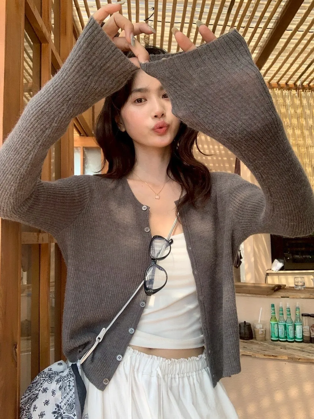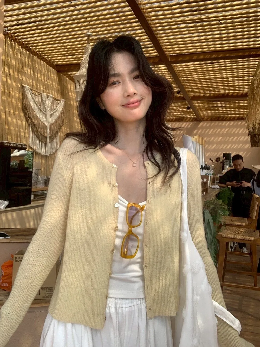 版型是微寬鬆的落肩設計, 穿起來有點慵懶、有點可愛經典好搭配的版型 完全不擔心買了放在衣櫃穿不到 釦子打開了是隨性,拉上是整齊俐落 裡面搭T恤或背心都很好搭 不會太長的長度,讓身形比例不會被吃掉 小個子也能駕馭 完全不挑人喔! 上班能穿、假日出遊、出國度假 輕薄好搭配好攜帶 放包包隨時都可以拿出來搭都可以互相搭配出很多變化穿搭尺寸:胸44/全長48公分