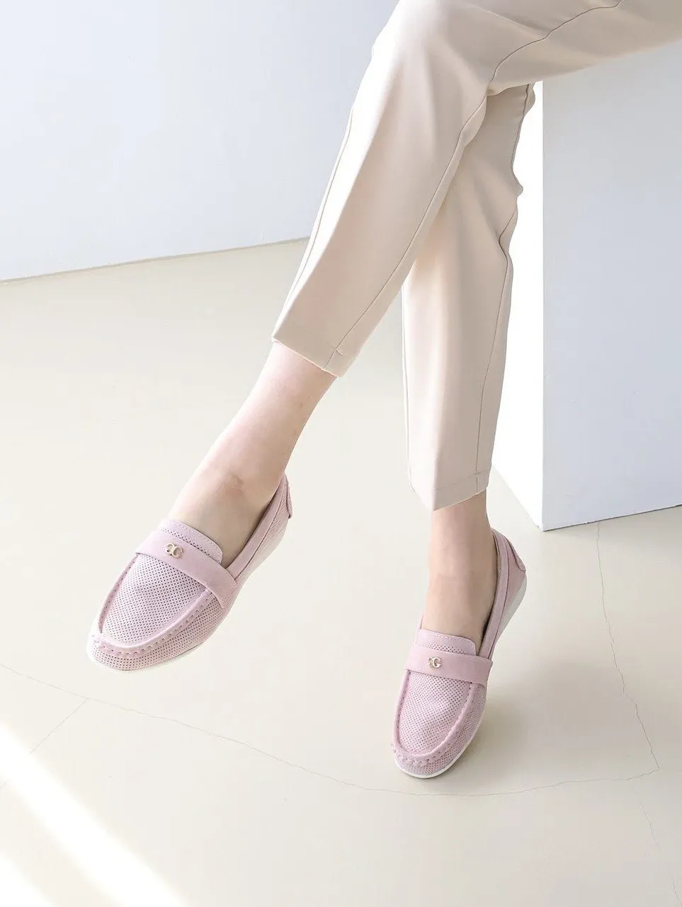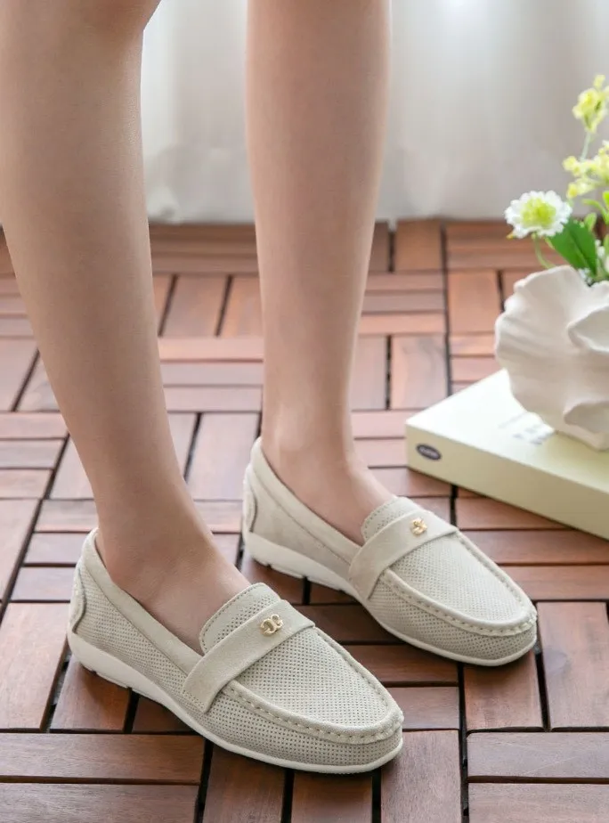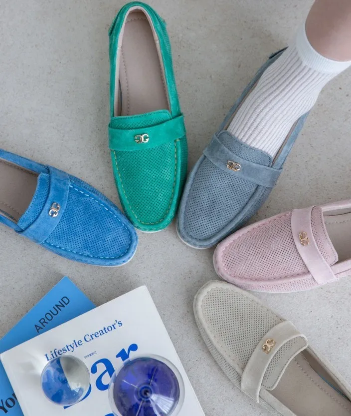 特別生產加大尺寸到26公分把「春天的顏色」穿進日常的存在經典樂福鞋輪廓為基底,線條柔和、比例輕盈,沒有多餘設計讓整體看起來簡約低調又高級鞋面以細緻沖孔設計不只是視覺上的層次更讓整雙鞋多了一份輕透與呼吸感中央低調金屬飾扣,為簡約增添剛好的亮點真皮質感超級好穿好好走長時間行走也舒適不壓腳無論配牛仔褲、寬褲或長裙搭褲裝、裙裝都能駕馭,有點氣質、有點個性是那種默默提升穿搭完成度的好選擇都能瞬間營造優雅隨性的時尚氣場✔️版型偏小 請選大半號尺寸(ex:平常穿24.5 建議選25 )3公分微跟設計,讓步伐自然帶點優雅弧度