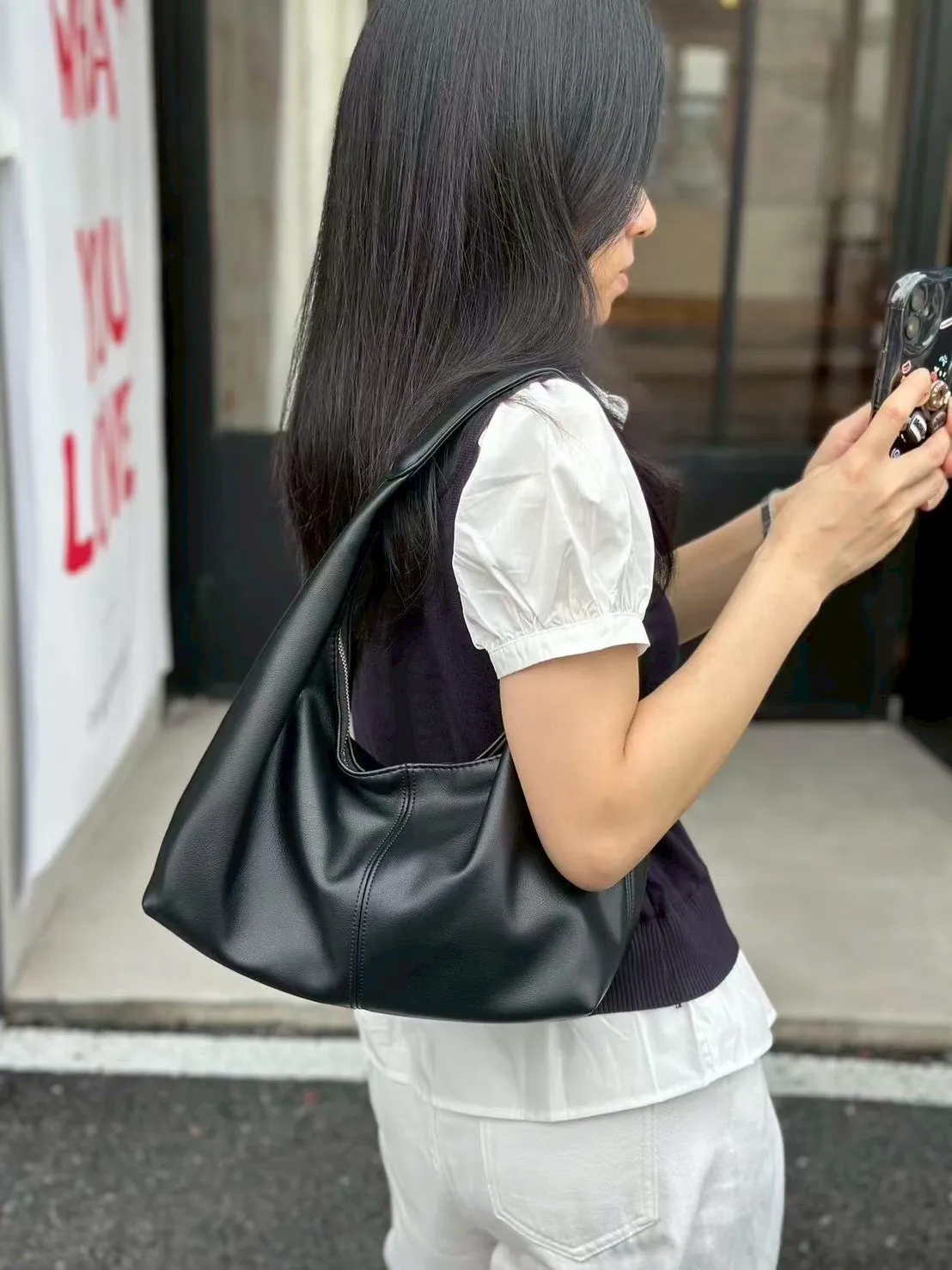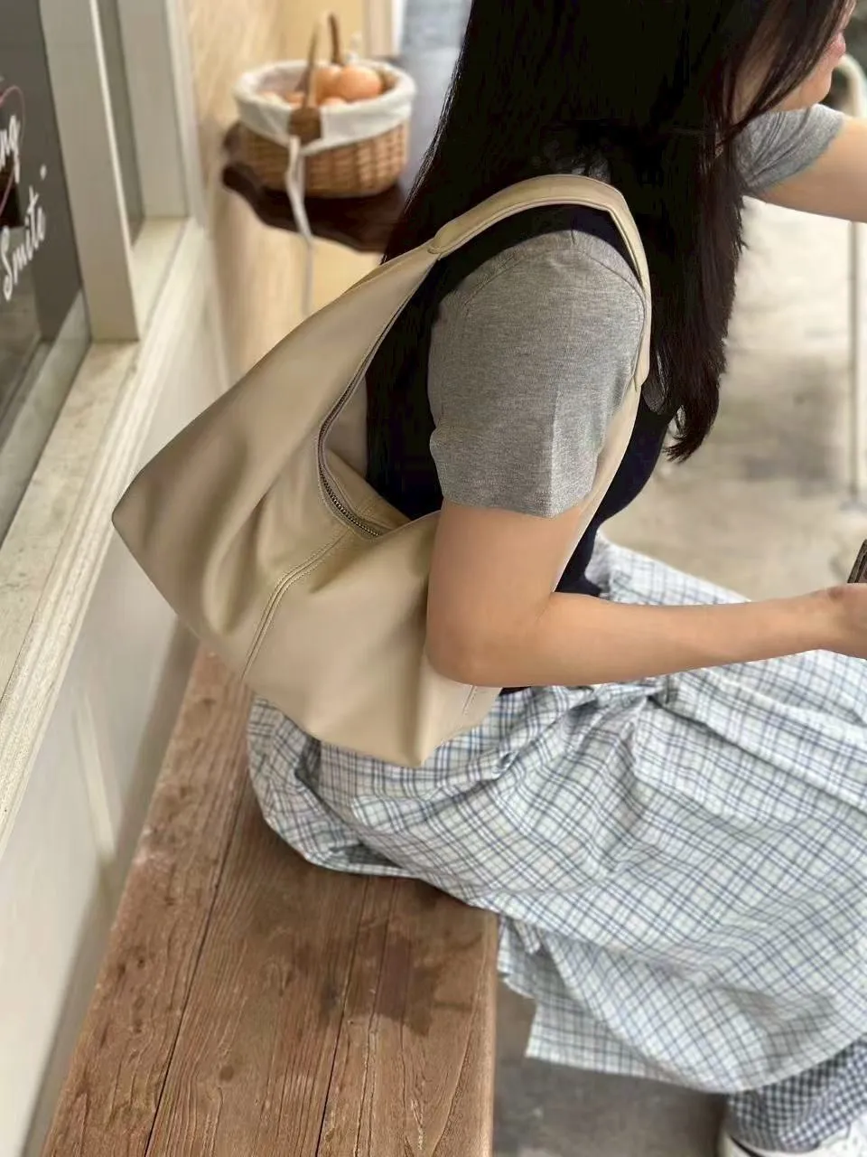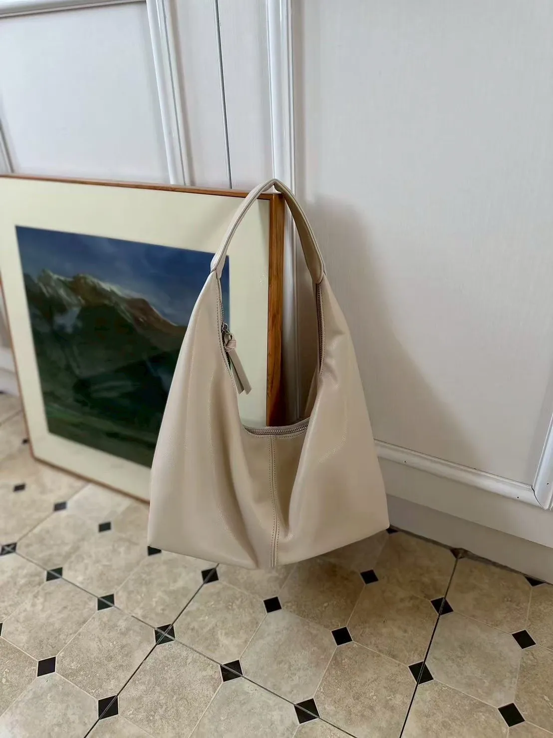 這顆真的會忍不住一直背 非常迷人 之前找超久這種經典款奈何找到好看的都太貴了~韓國類似款大約3~5千左右這次找到專銷給韓國店家的包包廠商直逼歐美精品的做工與品質 質感真的不輸真皮 不是那種硬硬的廉價皮 怎麼背都好看 手感更加柔軟,包身也更挺 價格就是買到賺到的高cp值 是簡單的包型 但那個垂墜感差一公分就差好多這款我愛的高級感拉滿垂墜感 包包一拎直接開啟自信模式 沒有過多的裝飾像是精品小眾品牌不是背logo而是背一種品味質感穿搭不費力 極柔軟仿真皮 手感超棒 半月包型 經典可休閒可氣質優雅 把妳的日常裝進去 上班 出國都OK 輕量皮革 每天都想背 三色經典百搭 非常推薦包色拉鏈口袋 內裏拉鍊暗袋尺寸大約為28*35公分