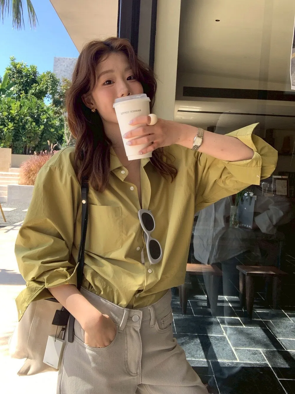 ✦ CP質很高欸!可以當上衣也可以當罩衫 不厚也不薄剛剛好 穿起來很舒服 春天、夏天冷氣房、秋天 都可以穿唷!舒適透氣的布料帶來自在穿著感 寬鬆版型,舒適不挑身材,吃飽也無壓力! 可當外套多穿法,早晚微涼正適合,春日必備單品! 適合任何場合的百搭單品,讓你每天都能穿出新感覺~ 裡面搭簡單細肩帶背心 or 小可愛就可以 下半身推薦搭牛仔短褲、傘裙或長裙都超搭 想要休閒感就外罩著開扣穿~度假超可以! 尺寸 :胸62/ 全長71公分