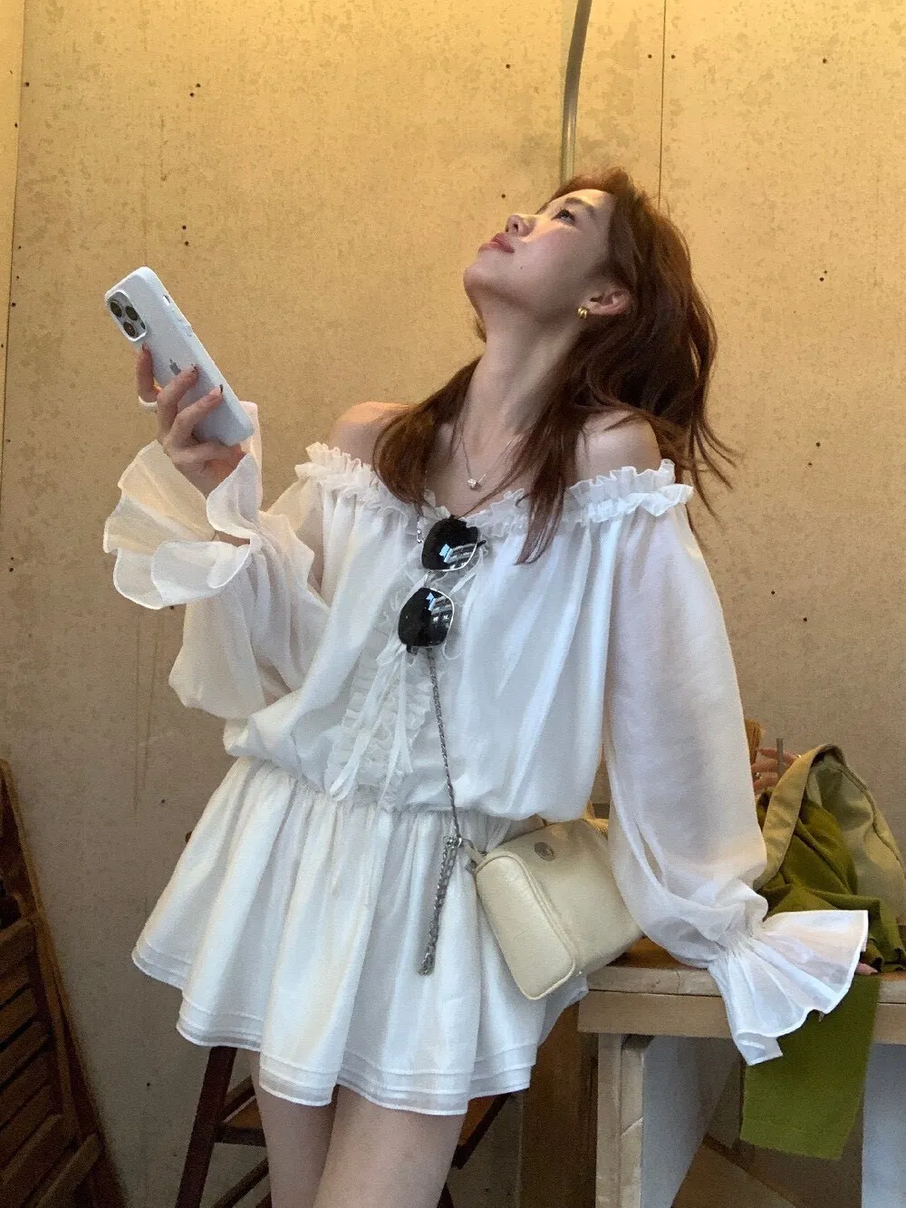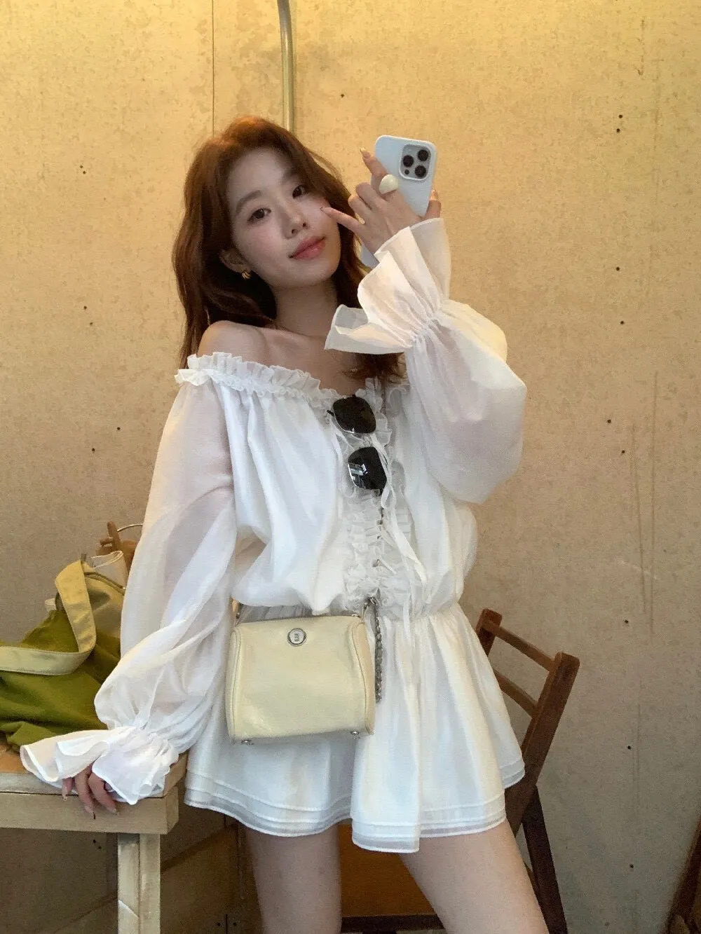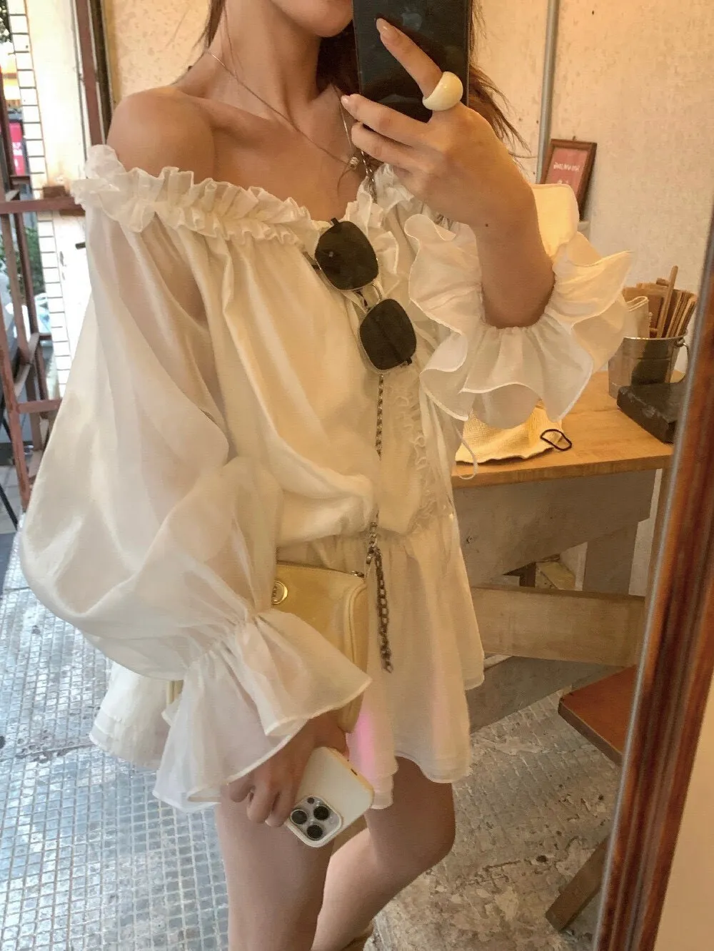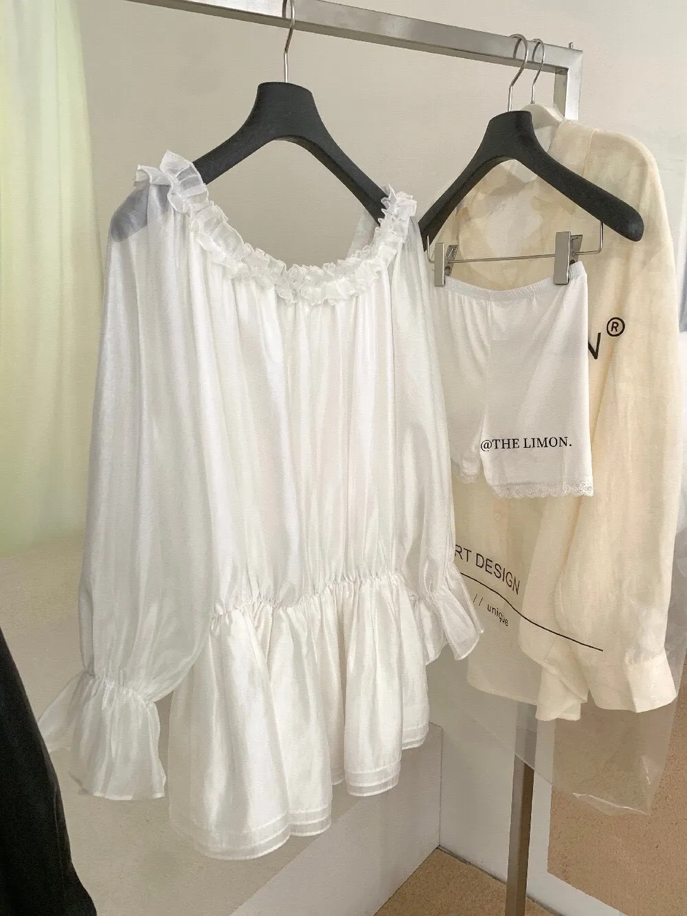 帶點法式味道的收腰設計,合身但不貼身,腰部線條順著身形延伸下擺,走動的時候會輕輕搖曳,好優雅好美! 布料輕薄朦朧透感,荷葉輕輕的點綴舉手投足間都是優雅的氛圍雪紡滑布手感柔軟 還有搭配一件內搭短褲天氣再涼一點可以搭件針織外套或風衣,完全不突兀對各種身形很友好 搭配短靴、樂福鞋或平底鞋都好看低調不會太複雜、也不會過分甜美剛好是介於成熟與溫柔之間的平衡尺寸:腰33/全長75公分內搭短褲S~L都可穿