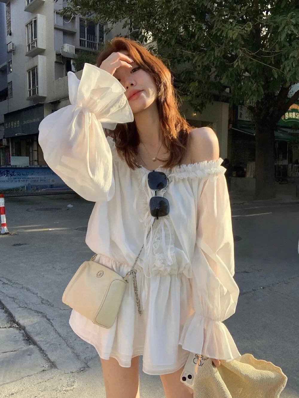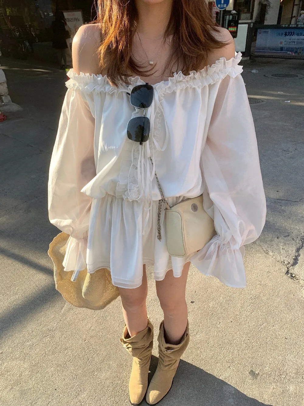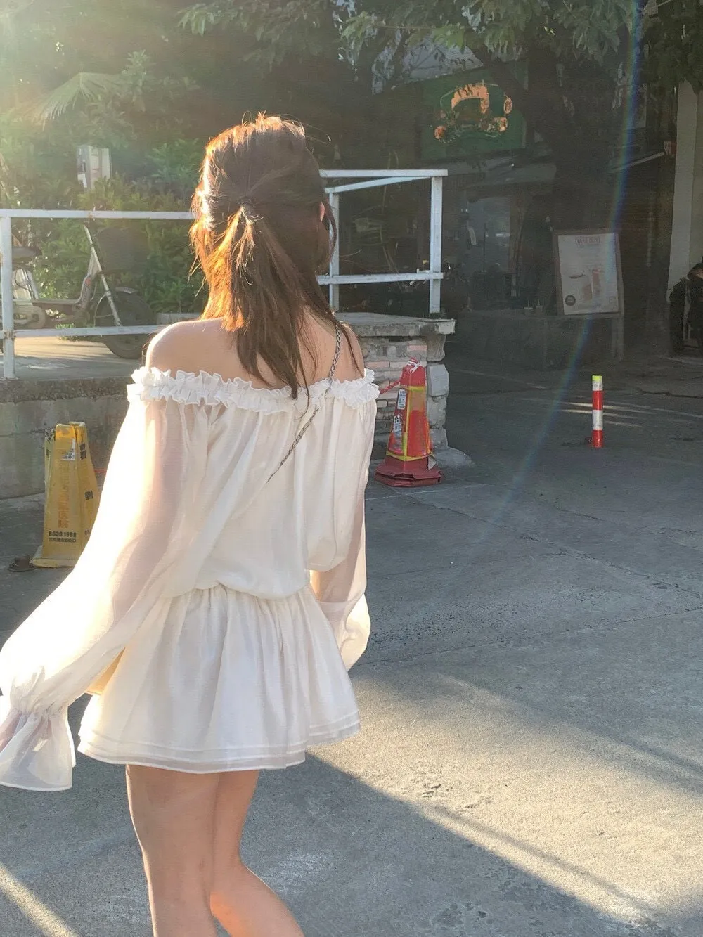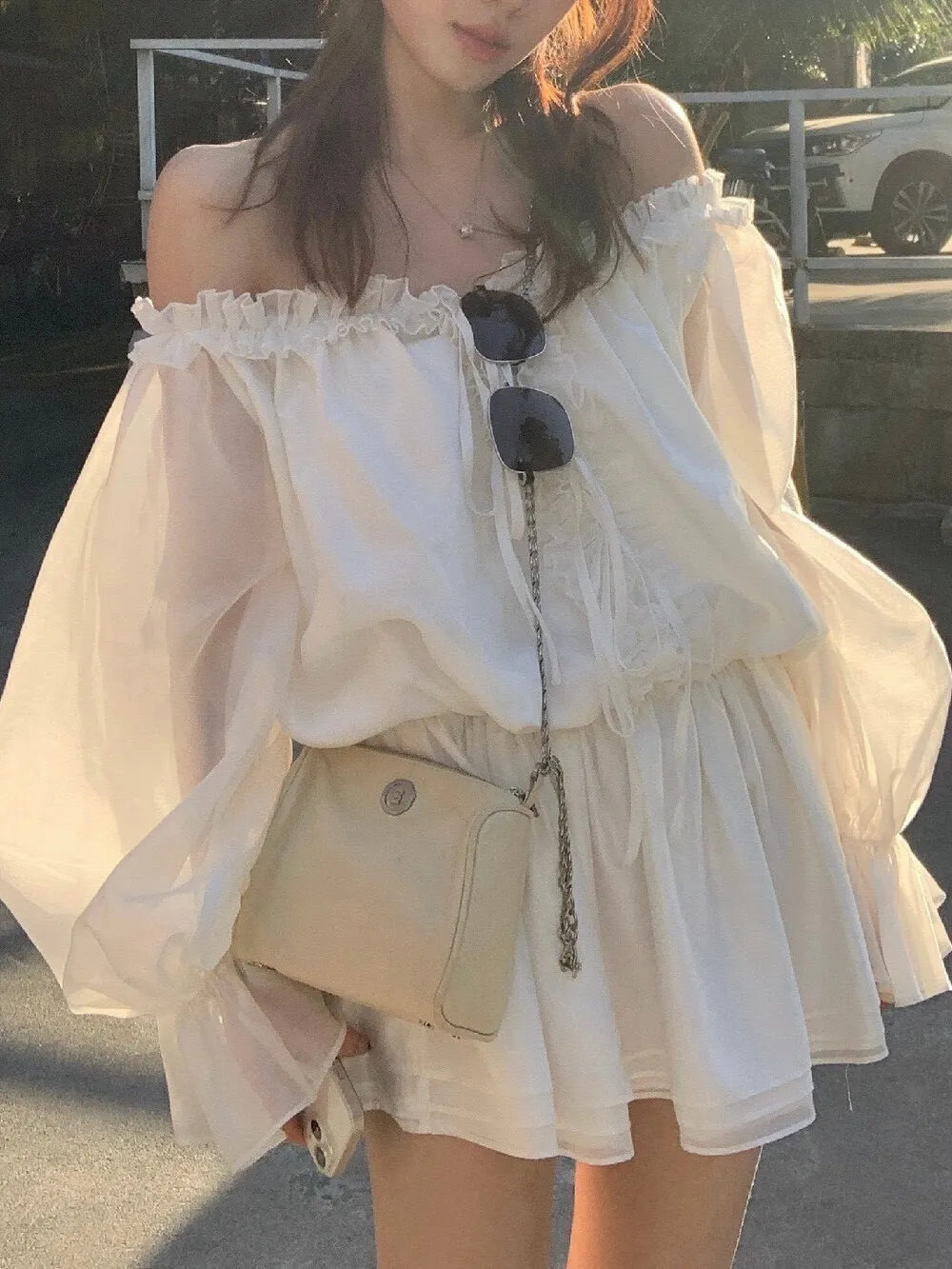 帶點法式味道的收腰設計,合身但不貼身,腰部線條順著身形延伸下擺,走動的時候會輕輕搖曳,好優雅好美! 布料輕薄朦朧透感,荷葉輕輕的點綴舉手投足間都是優雅的氛圍雪紡滑布手感柔軟 還有搭配一件內搭短褲天氣再涼一點可以搭件針織外套或風衣,完全不突兀對各種身形很友好 搭配短靴、樂福鞋或平底鞋都好看低調不會太複雜、也不會過分甜美剛好是介於成熟與溫柔之間的平衡尺寸:腰33/全長75公分內搭短褲S~L都可穿