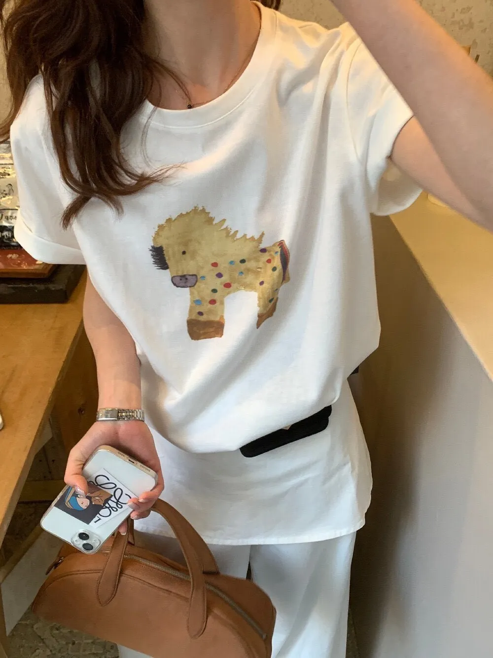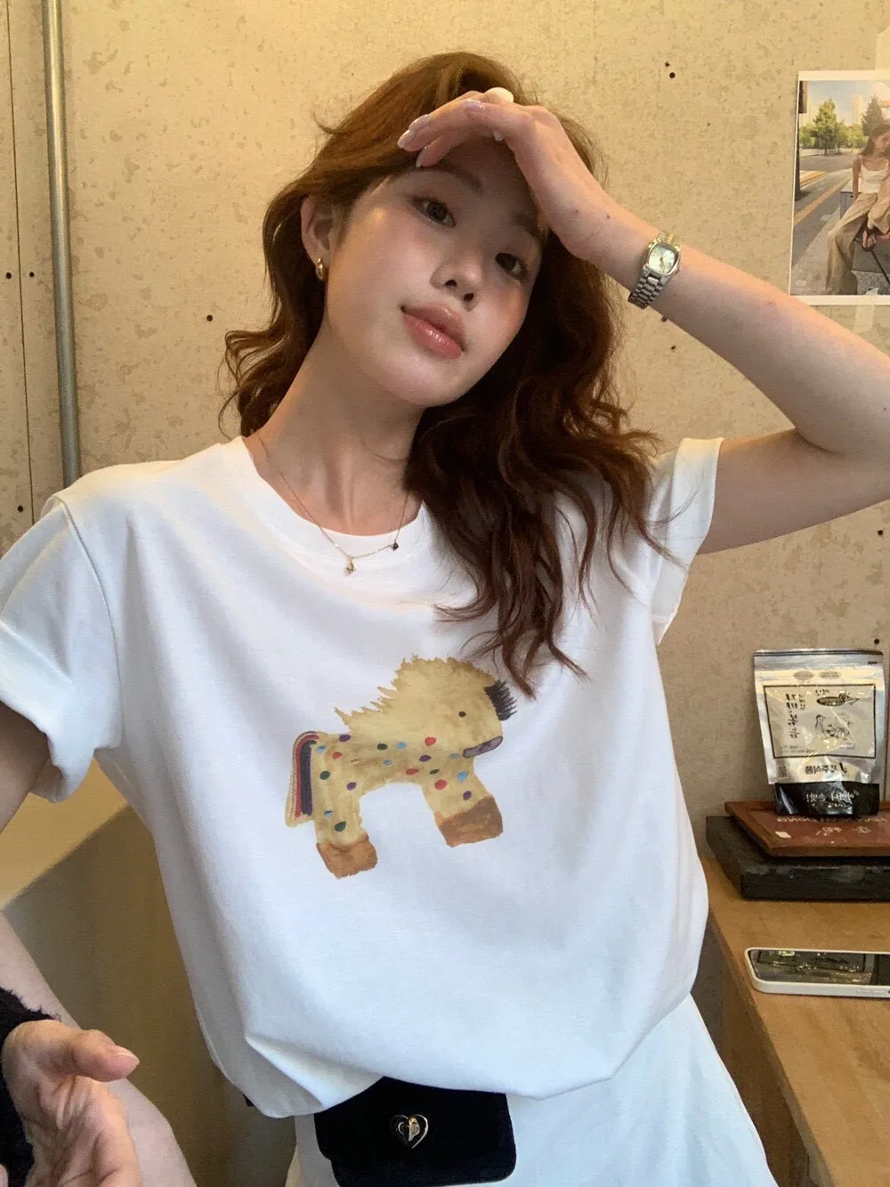 可愛有特色!日常神好搭2026必須來一件可愛的馬兒~這件真的誰穿誰好看 日常穿搭必備 顏色都好好看 棉感質料舒適好穿 春夏單穿不悶熱 版型寬鬆顯瘦 百搭不挑人的款式走到哪都很吸睛~尺寸:胸53/全長64 公分