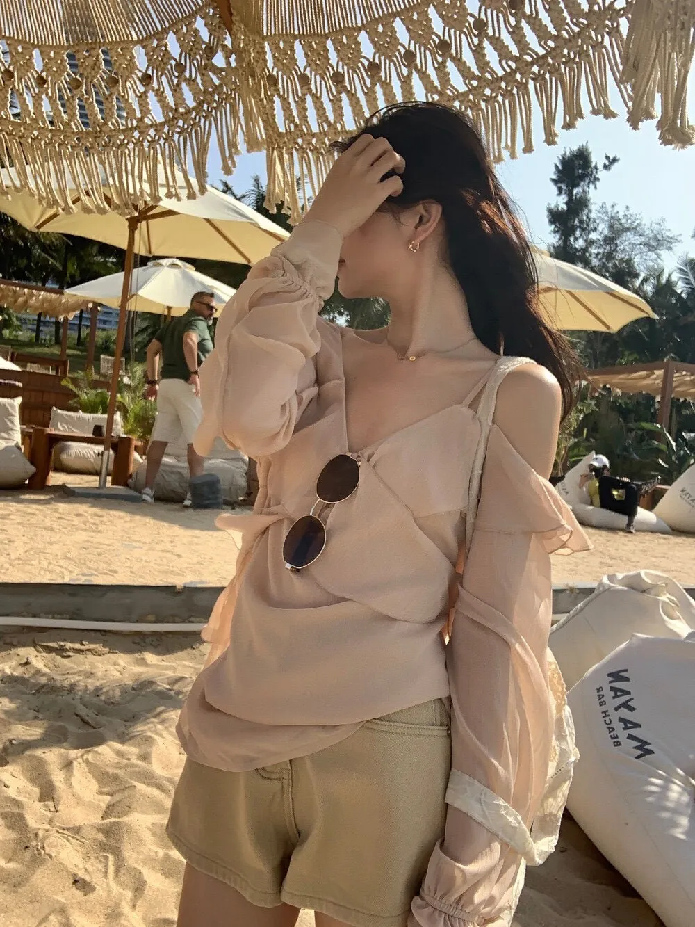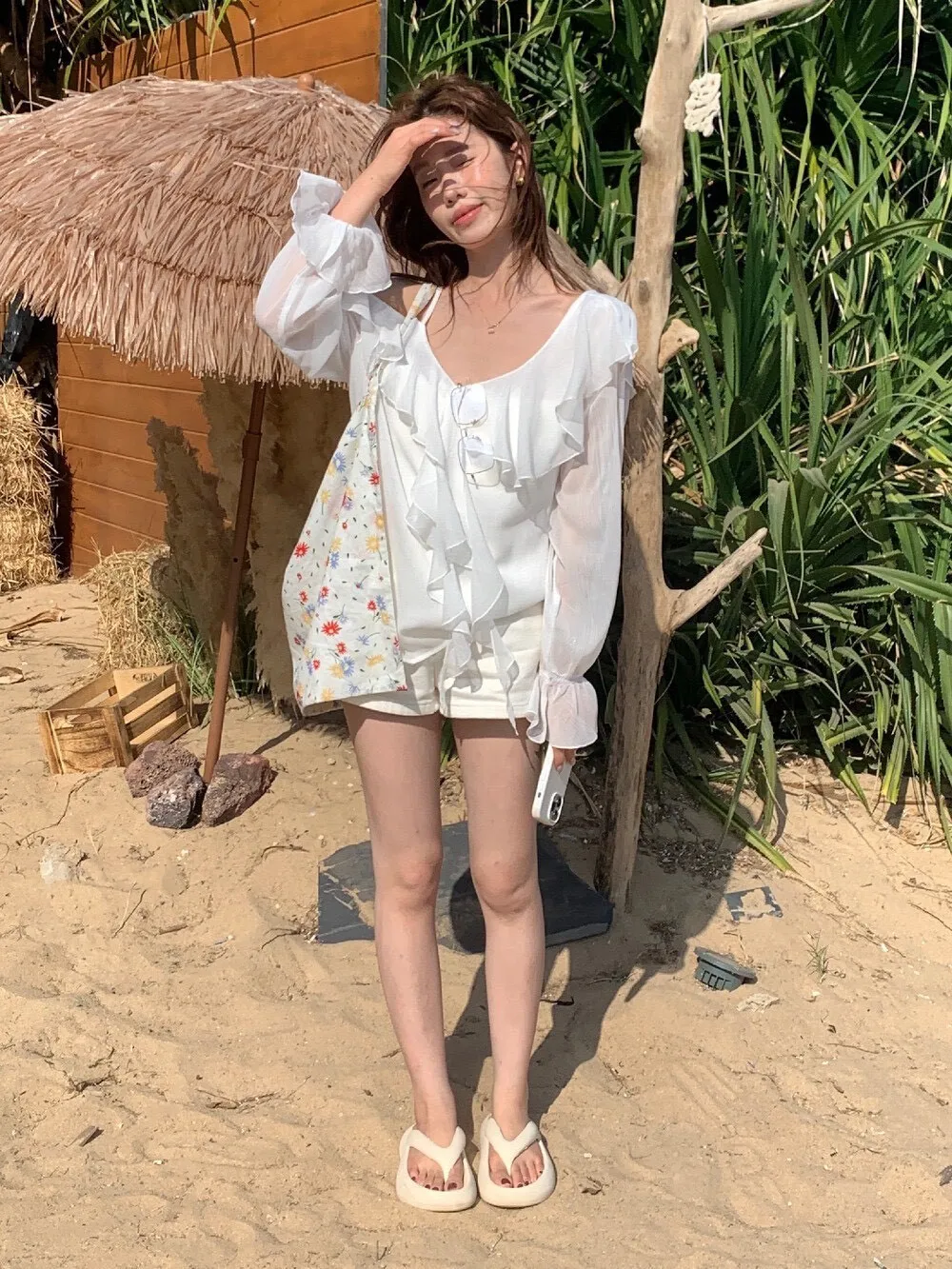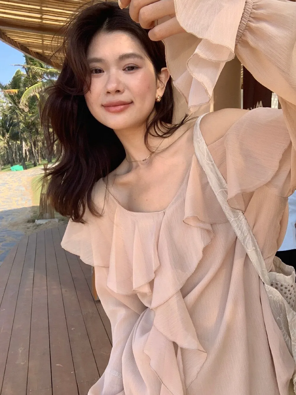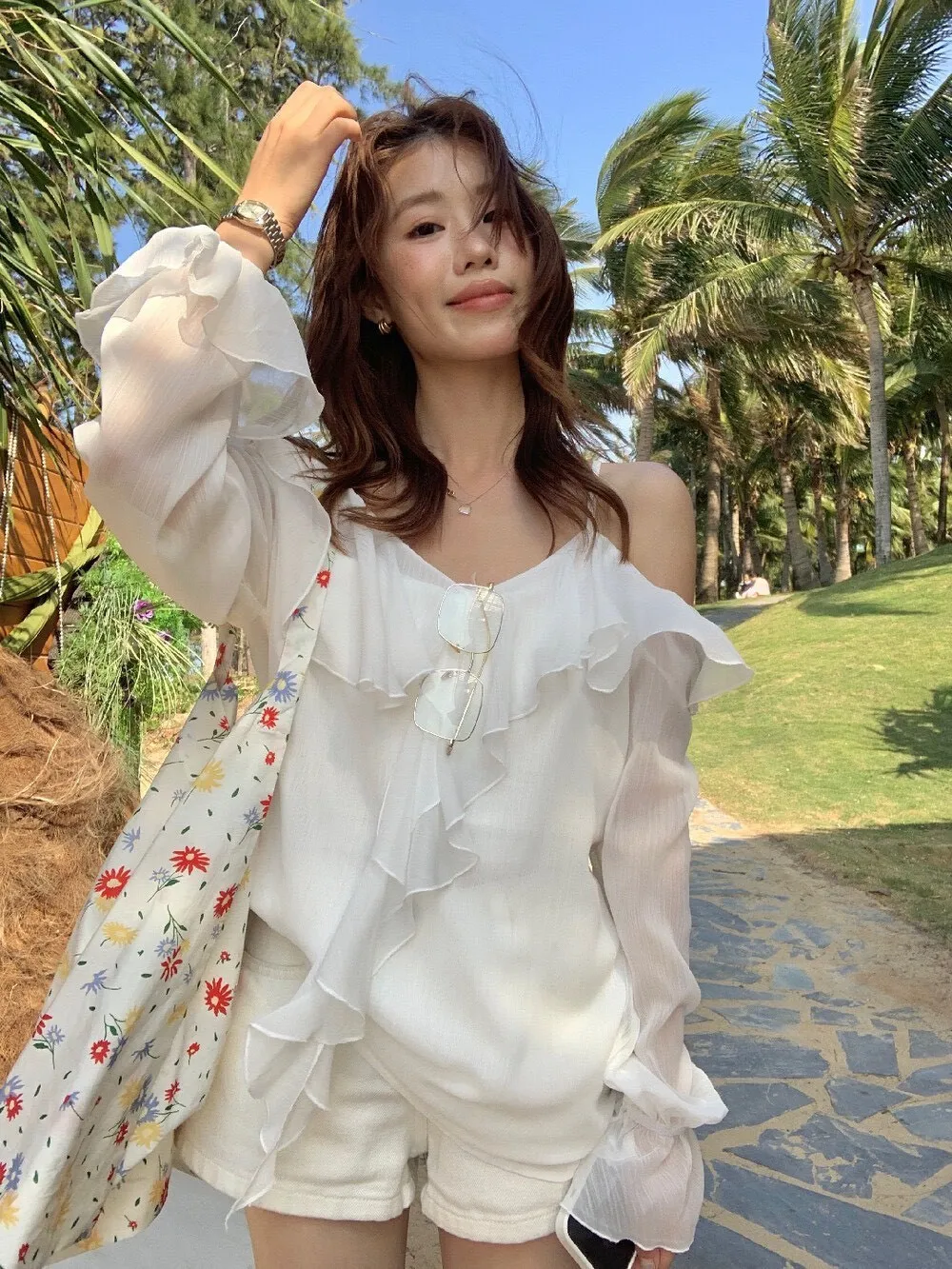真的很美穿上自帶溫柔濾鏡雪紡V領+小波浪荷葉設計穿起來超顯臉小 微透輕柔雪紡材質 隨意搭配都是女神感 飄逸落肩袖輕鬆修飾手臂線條 清涼感夏日氛圍 怎麼穿怎麼美 本身就好看到不行 搭短褲長褲短裙長裙褲裙寬褲什麼都可以喔 尺寸:胸51/全長62公分