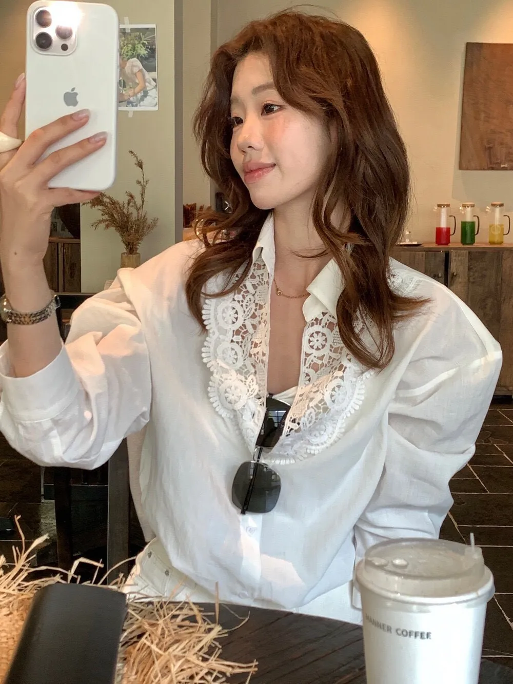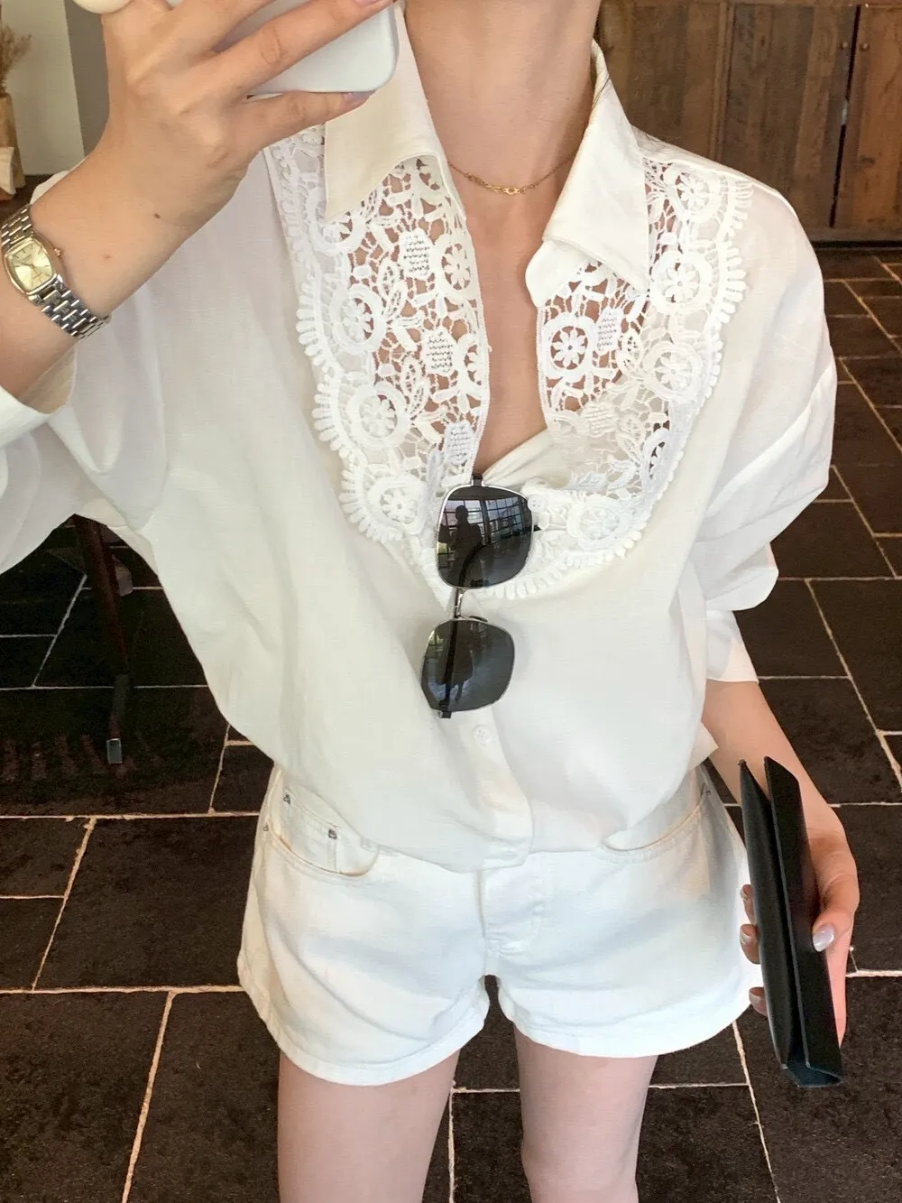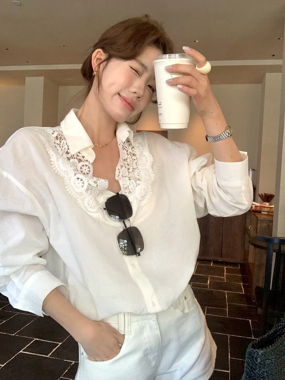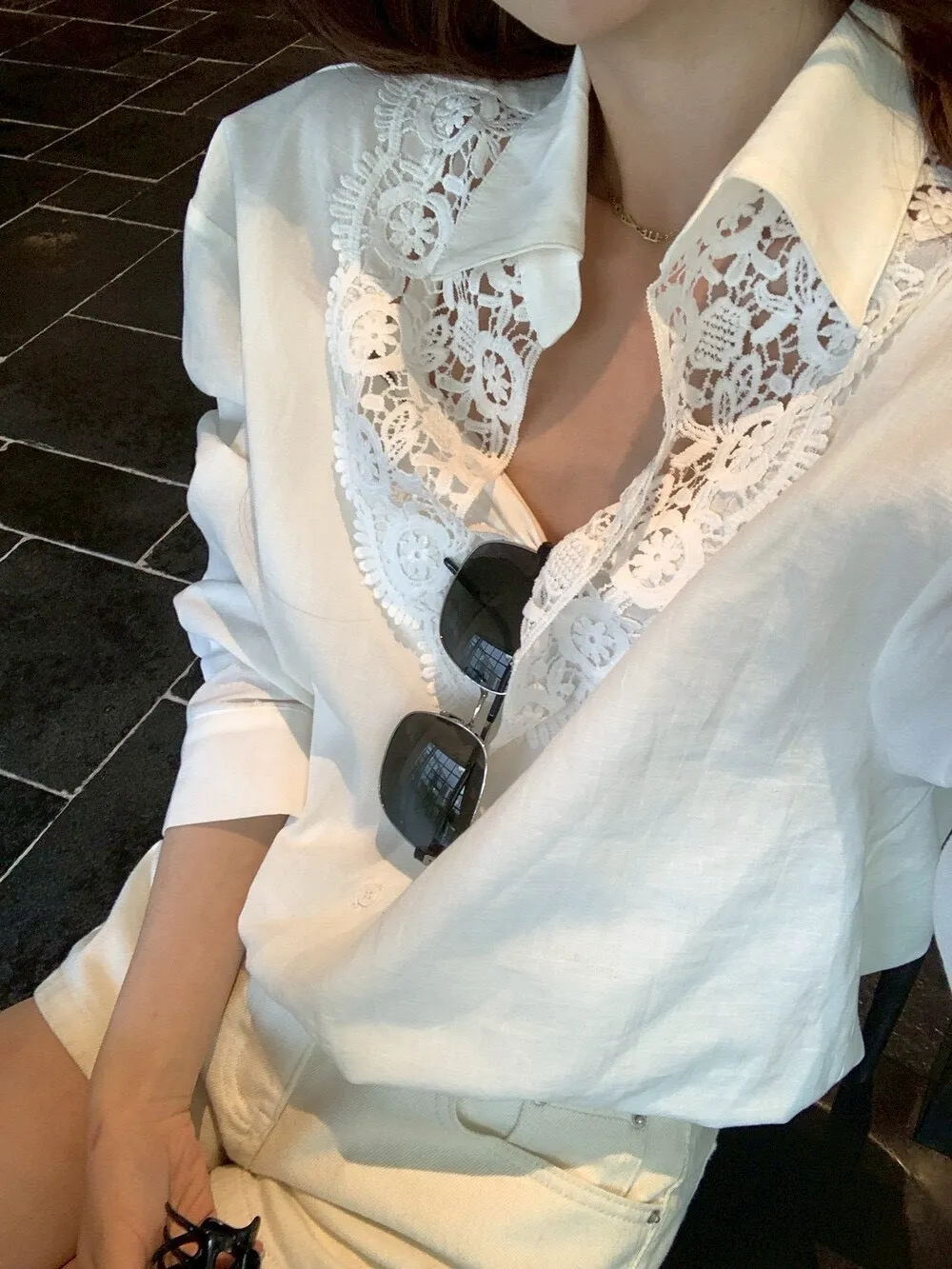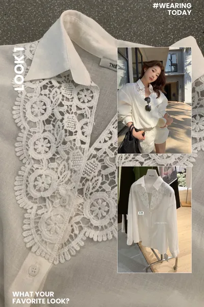 這件的蕾絲越看越覺得精緻 乾淨的白色看起來清爽又有氣質整體設計簡約,但在細節上多了蕾絲拼接讓原本俐落的襯衫多了一點柔和感 莹麻的質感,穿起來輕盈透氣穿起來也沒有負擔的感覺 搭配西裝褲、牛仔褲或長裙,風格可以俐落也可以溫柔 尺寸:胸62/全長69公分