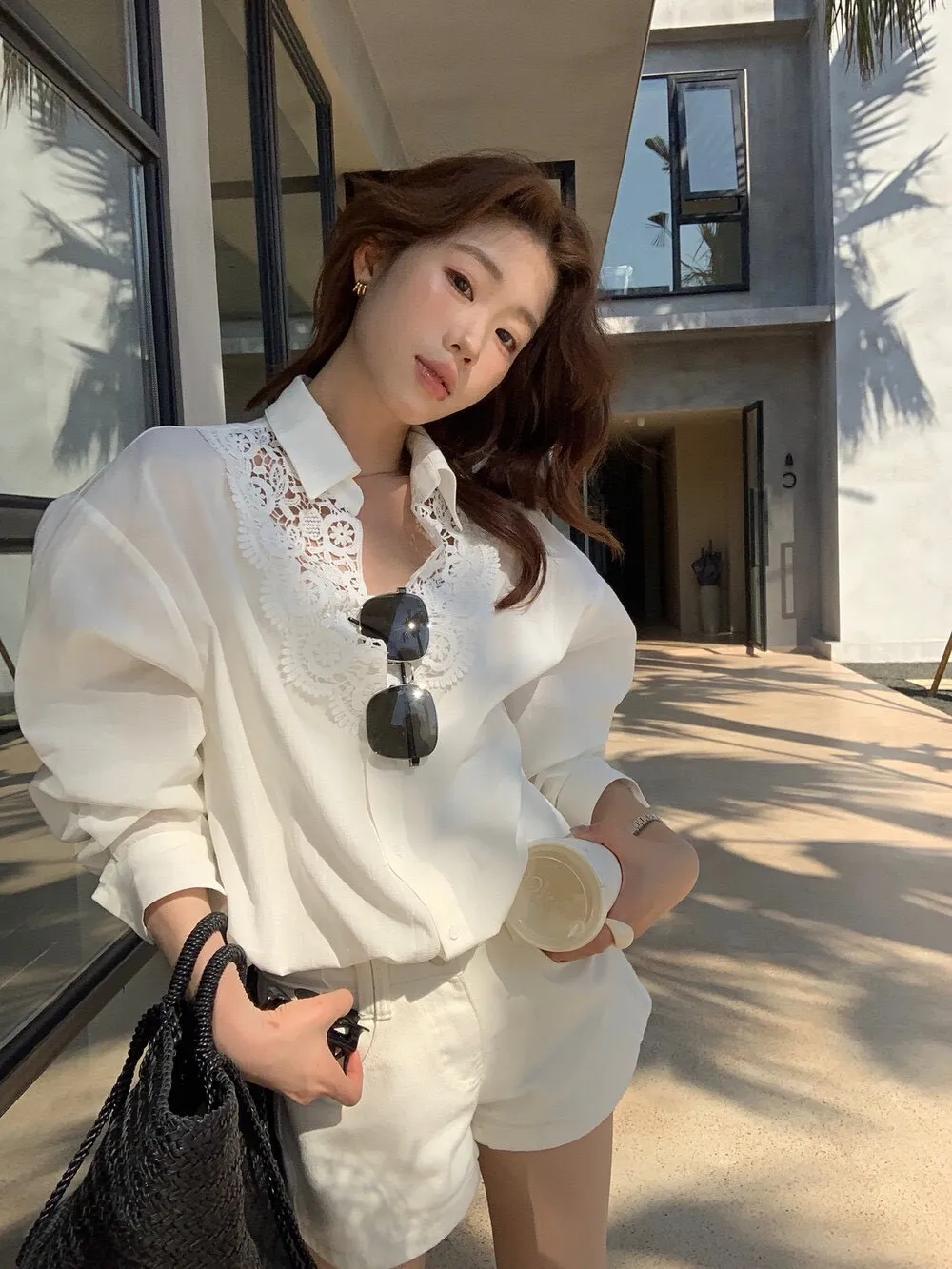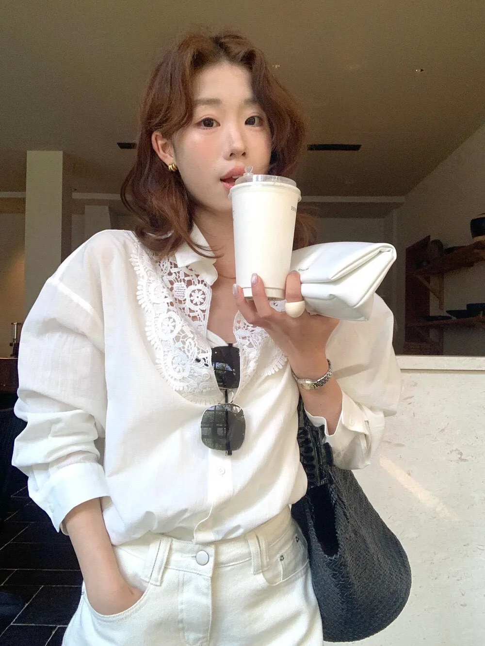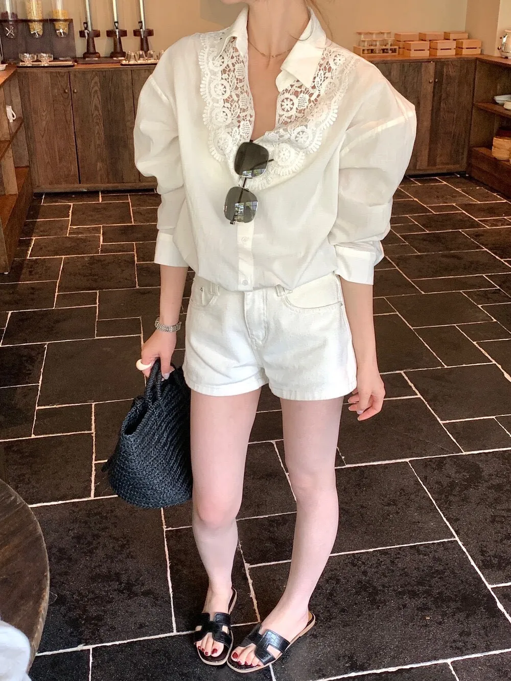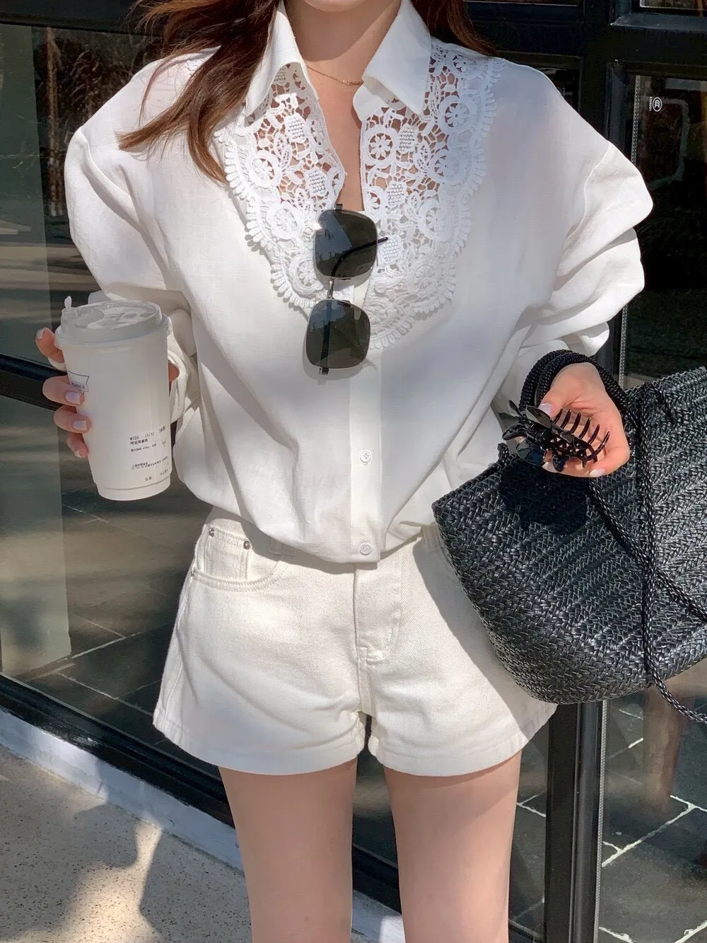 這件的蕾絲越看越覺得精緻 乾淨的白色看起來清爽又有氣質整體設計簡約,但在細節上多了蕾絲拼接讓原本俐落的襯衫多了一點柔和感 莹麻的質感,穿起來輕盈透氣穿起來也沒有負擔的感覺 搭配西裝褲、牛仔褲或長裙,風格可以俐落也可以溫柔 尺寸:胸62/全長69公分