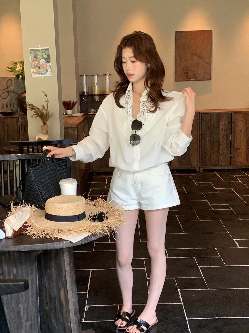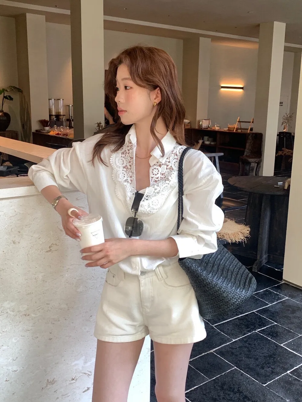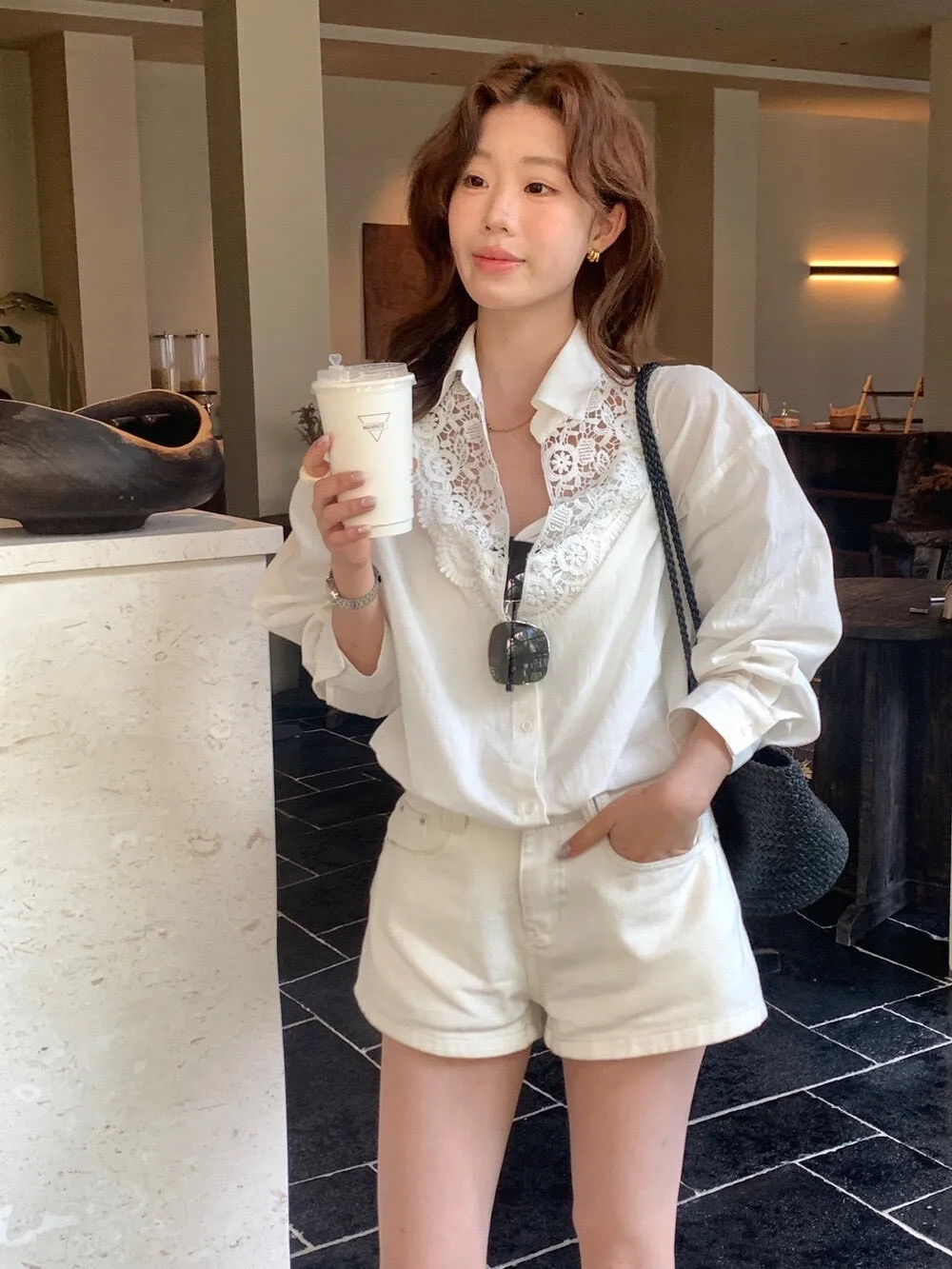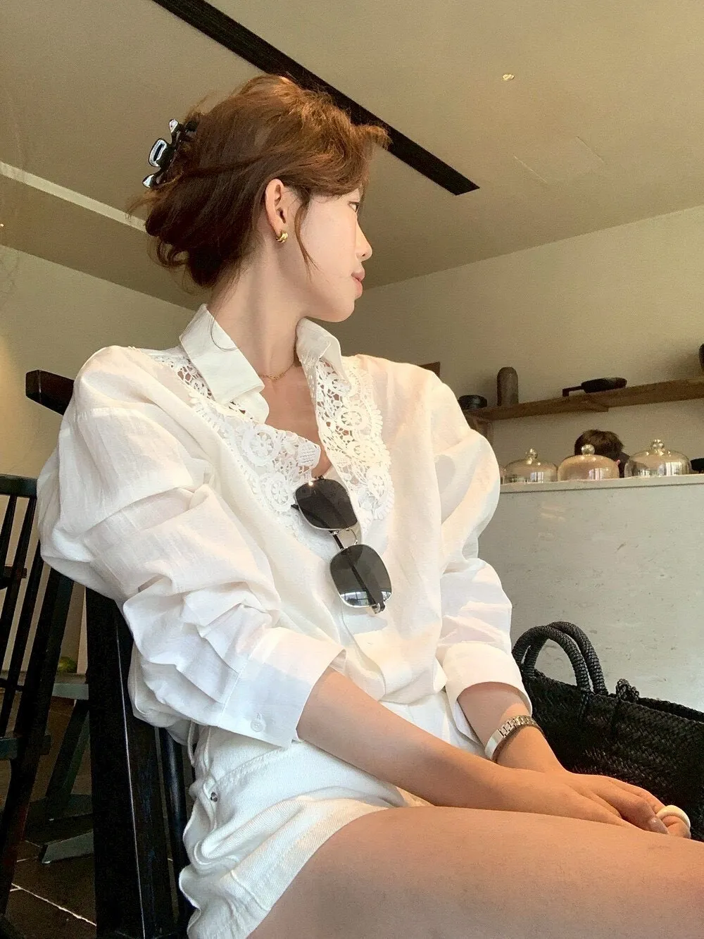 這件的蕾絲越看越覺得精緻 乾淨的白色看起來清爽又有氣質整體設計簡約,但在細節上多了蕾絲拼接讓原本俐落的襯衫多了一點柔和感 莹麻的質感,穿起來輕盈透氣穿起來也沒有負擔的感覺 搭配西裝褲、牛仔褲或長裙,風格可以俐落也可以溫柔 尺寸:胸62/全長69公分