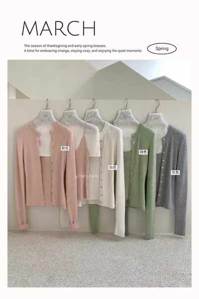粉色 溫柔柔和,看起來特別有氣色白色 清新乾淨,整體感覺很輕盈綠色 專屬春日的清爽感灰色 低調有質感,日常穿最百搭