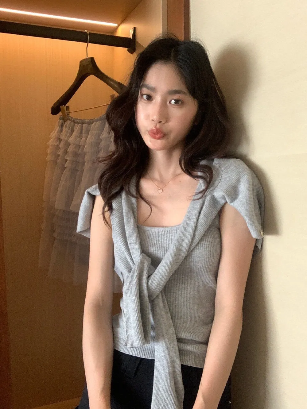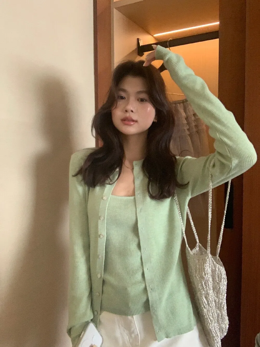 針織材質穿起來柔軟親膚,日常穿著很輕鬆,也很適合微涼的春天季節
