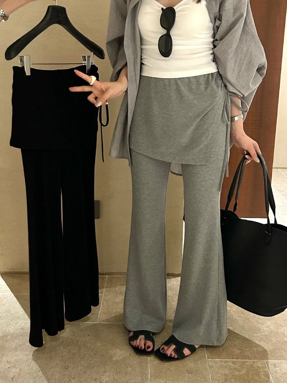 假二件的拼接設計讓褲子多了一點層次感,