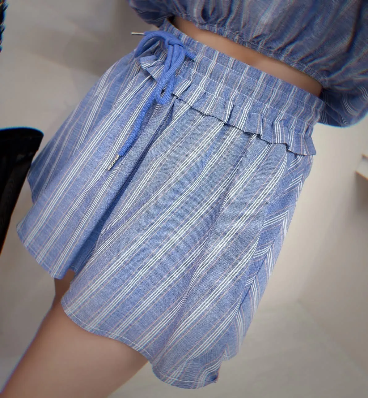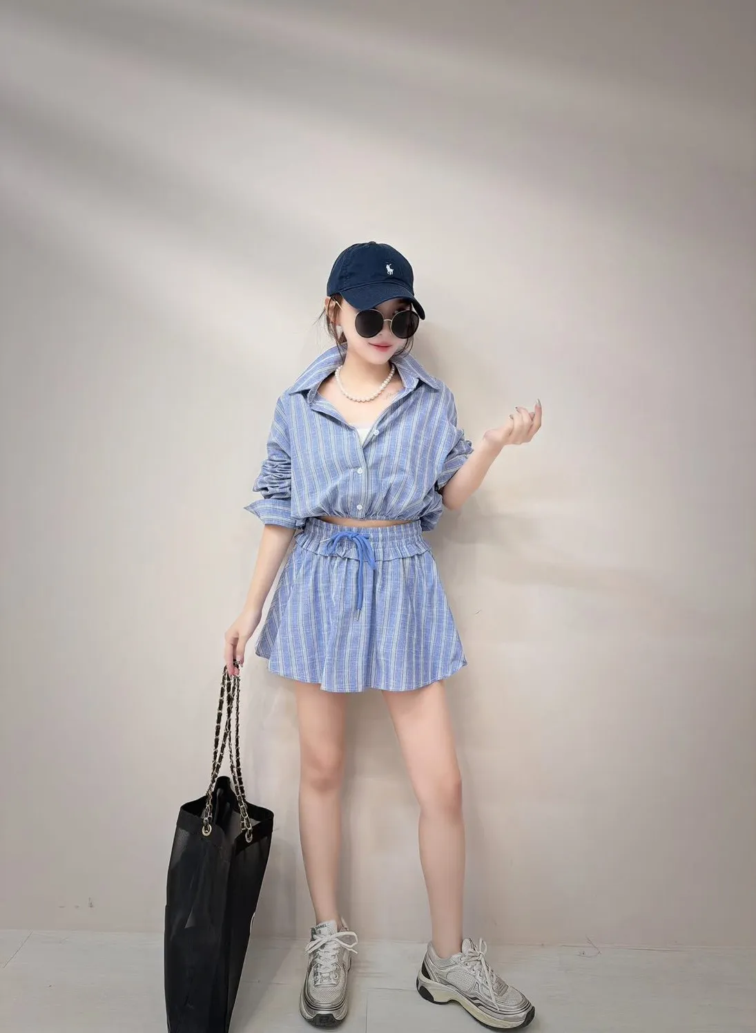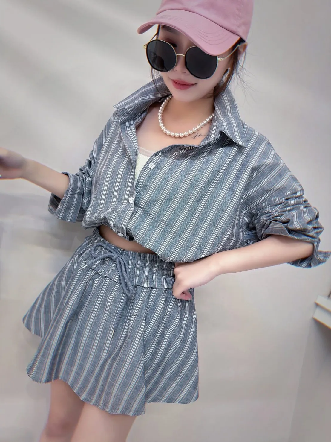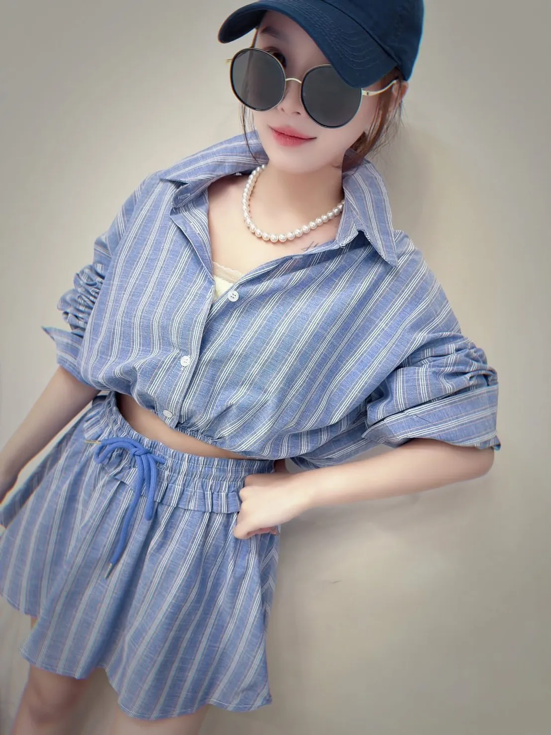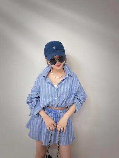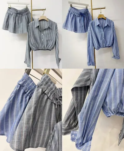 短版襯衫設計搭配下擺收口 能自然拉高腰線 ( 讓腿部線條看起來更長 ) 略微寬鬆的袖子 腰部與手臂有很好的修飾效果 #營造出空氣感 安全感十足的褲裙 外觀是俐落的 A 字裙 內裡則是隱藏褲裝 完全不用擔心走光(追趕跑跳碰)通通OK 荷葉邊鬆緊腰帶加上抽繩 不僅穿著舒適 還能增加視覺層次感 襯衫 落肩設計 ‘ 胸圍54 ’ 衣長 43 褲裙 平量腰圍34 (鬆緊彈性很好喔) 臀圍 48 ‘ 褲長32