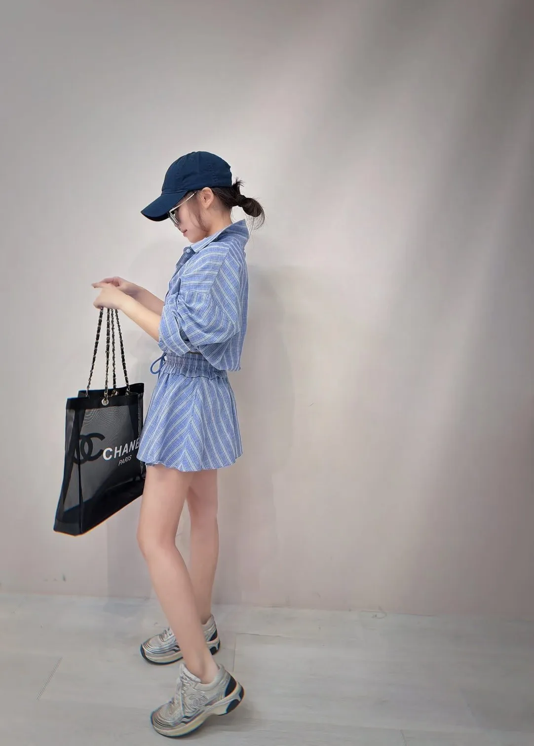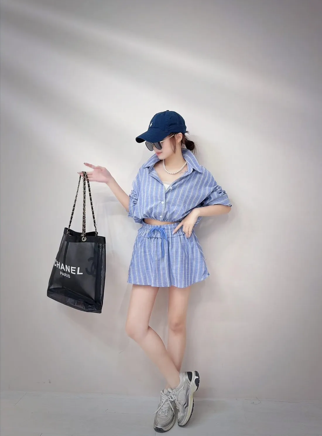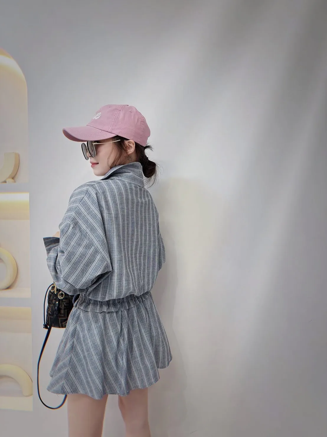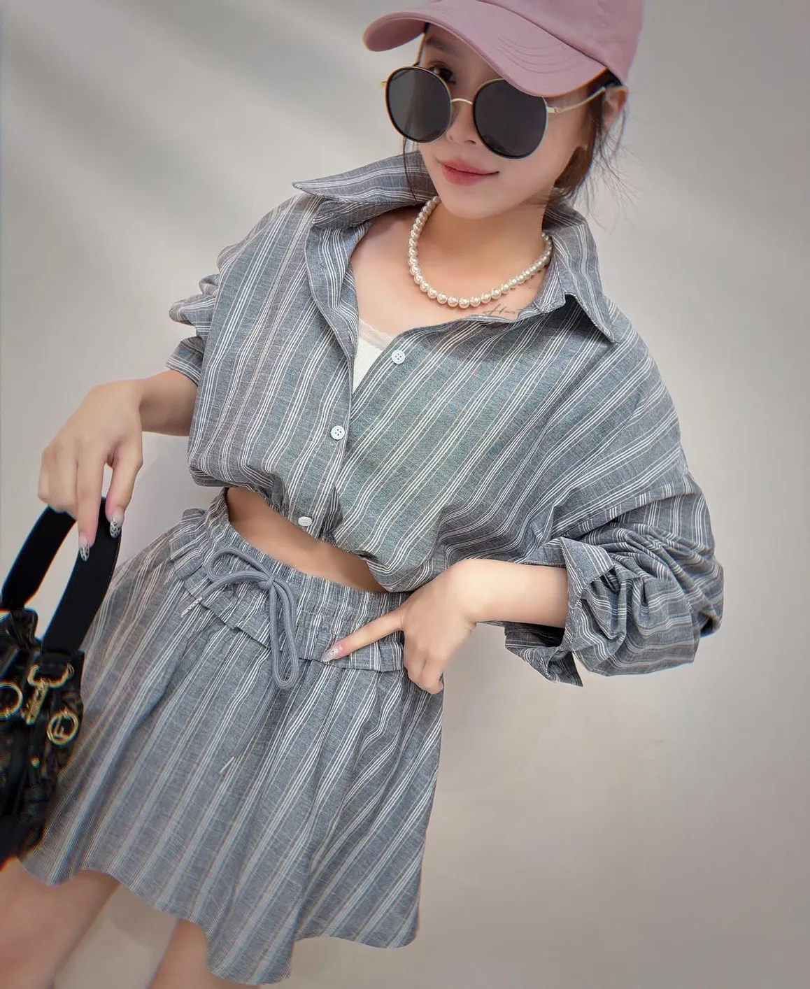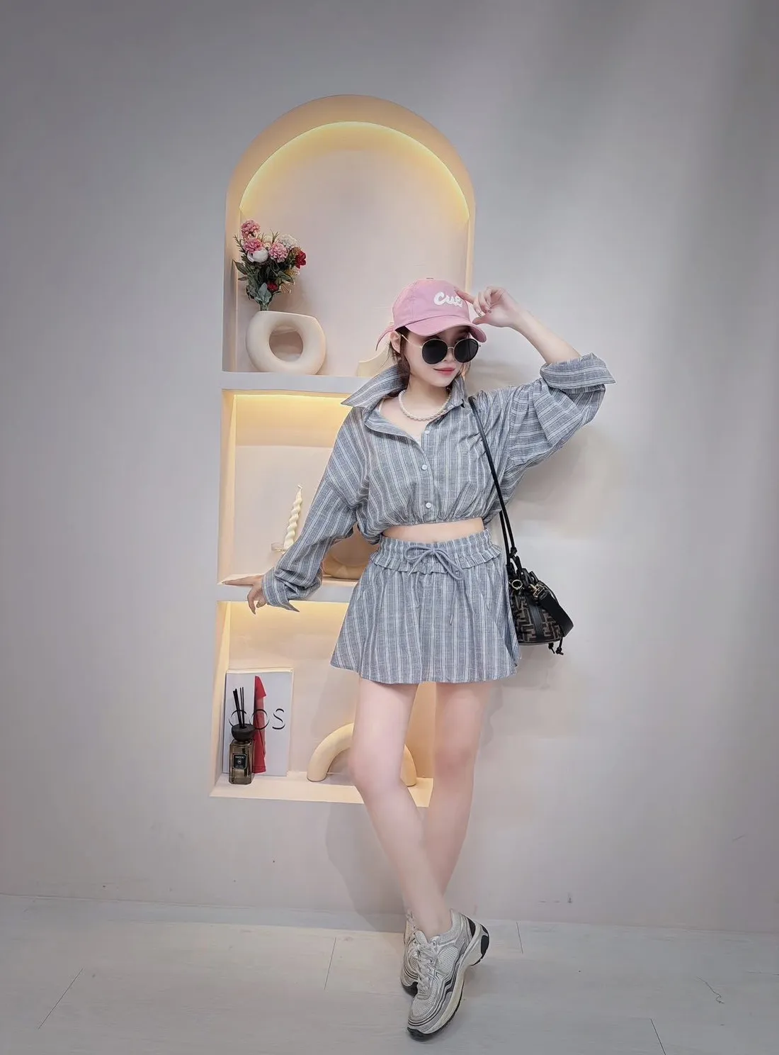 短版襯衫設計搭配下擺收口 能自然拉高腰線 ( 讓腿部線條看起來更長 ) 略微寬鬆的袖子 腰部與手臂有很好的修飾效果 #營造出空氣感 安全感十足的褲裙 外觀是俐落的 A 字裙 內裡則是隱藏褲裝 完全不用擔心走光(追趕跑跳碰)通通OK 荷葉邊鬆緊腰帶加上抽繩 不僅穿著舒適 還能增加視覺層次感 襯衫 落肩設計 ‘ 胸圍54 ’ 衣長 43 褲裙 平量腰圍34 (鬆緊彈性很好喔) 臀圍 48 ‘ 褲長32