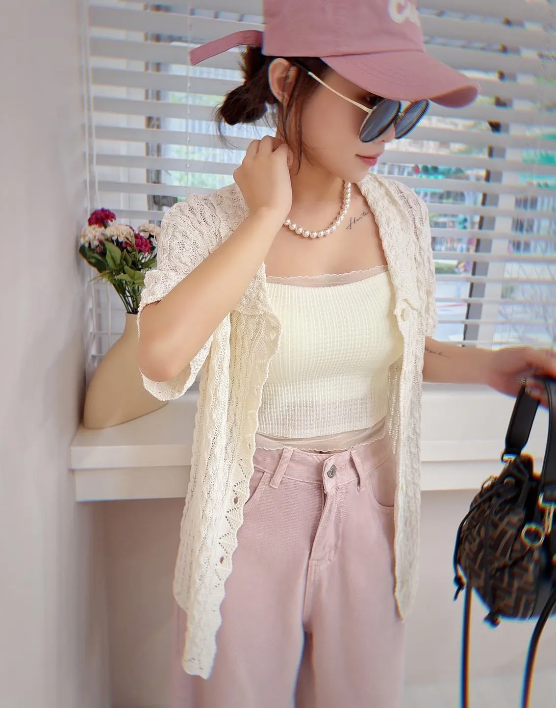 韓國看到好美類似這樣的款 #爆貴 這件這款真的可以媲美韓國欸!低調又有小細節的針織紋路兩種穿法 扣起來當上衣打開可以像小外套一樣搭配 是一件超級好搭的單品 搭牛仔褲很日常 隨意搭配西裝褲通勤約會都可以 尺寸: 全長61公分