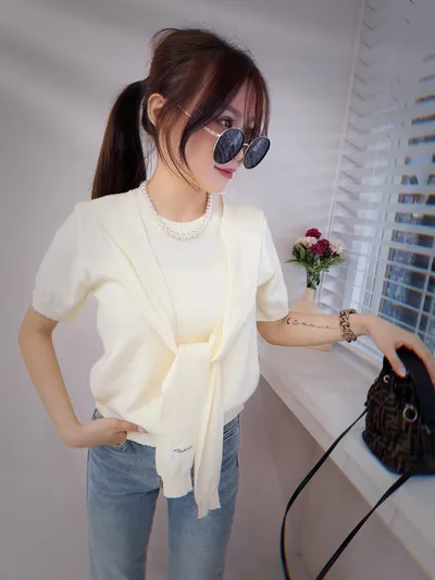 假二件單品特別實用把披肩的直接做進設計裡穿起來像多搭了一件 簡單卻有細節隨意穿上就能讓整體造型多一點質感針織觸感柔軟不會過於貼身,輕鬆隨性就可以漂亮出門 粉 柔柔的漂亮氣質感奶白色 自然質感,非常耐看的日常搭配藍 清新舒服,看起來特別輕盈灰 低調俐落,搭配性也非常高尺寸 : 肩寬35 ‘ 胸圍 42 ’ 全長 51公分