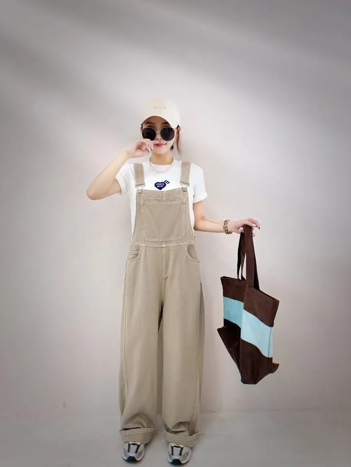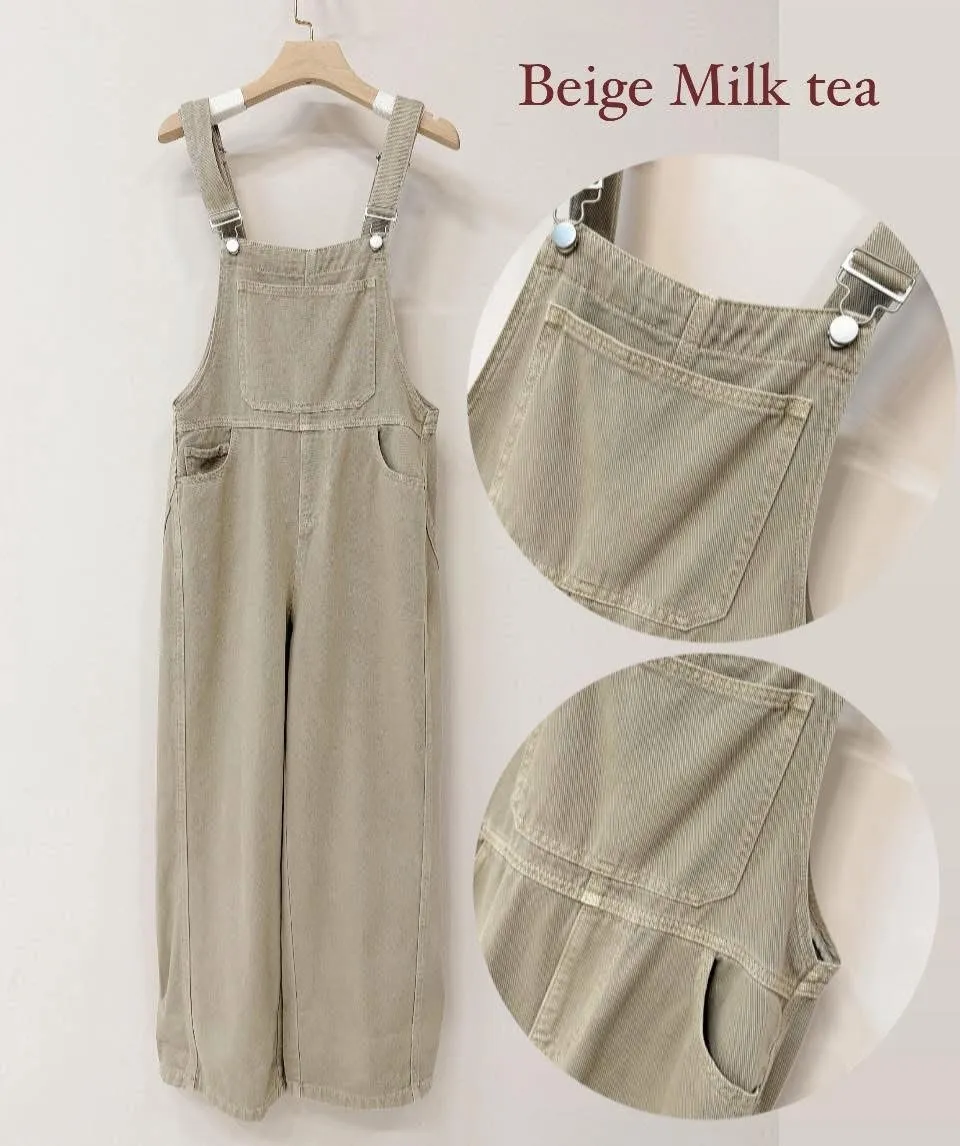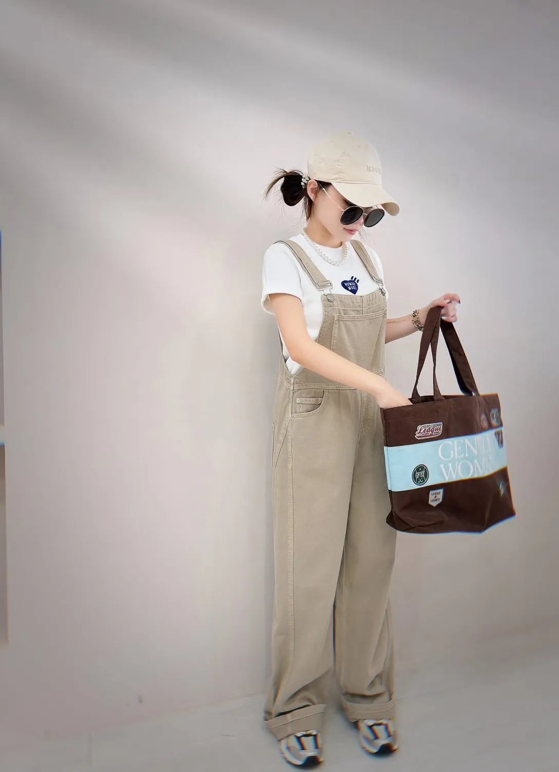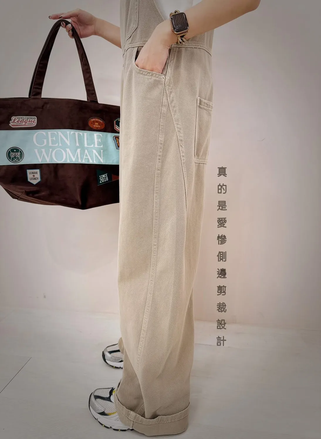 寬鬆的直筒版型 能很好地修飾腿部線條 呈現出一種隨性 不顯拘束的層次感 柔和的卡其奶茶 #超級好看 大地色系具有復古的洗舊感 胸前經典的方形大口袋兼具實用與裝飾感 側邊口袋與精緻的車縫線設計 #強化了整體的工裝結構感 臀52 ‘ 腰41 ’ 長118 (不含肩帶長)