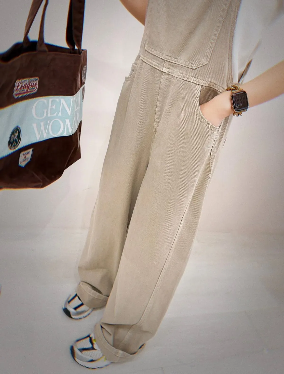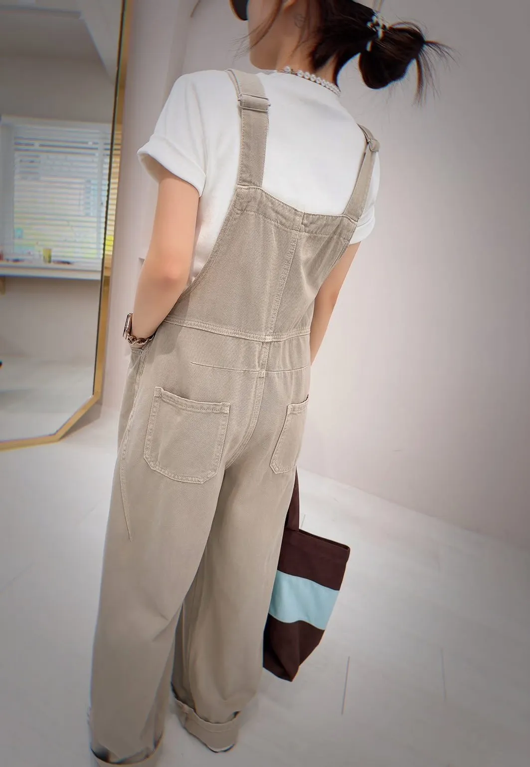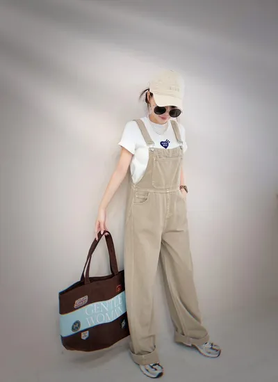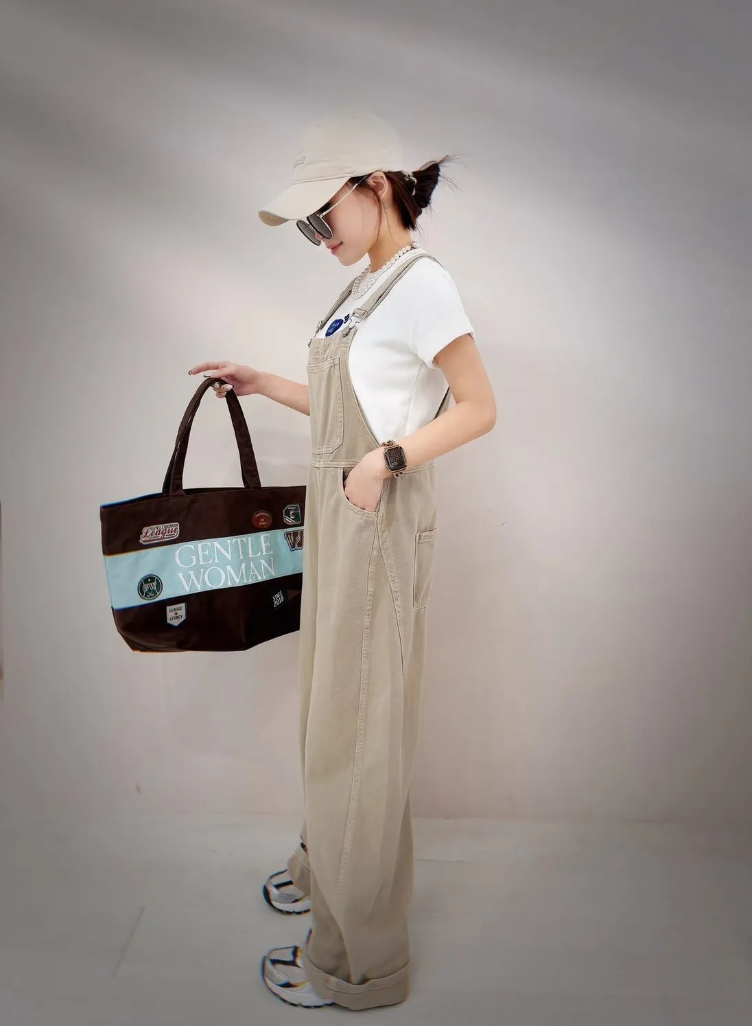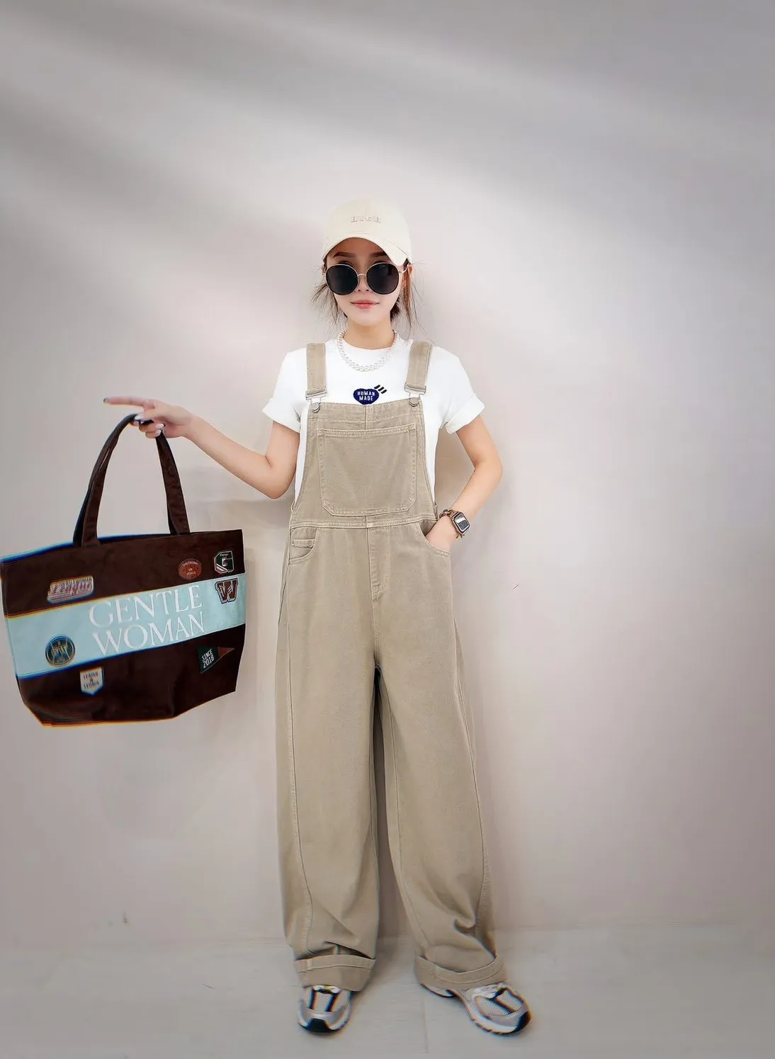 寬鬆的直筒版型 能很好地修飾腿部線條 呈現出一種隨性 不顯拘束的層次感 柔和的卡其奶茶 #超級好看 大地色系具有復古的洗舊感 胸前經典的方形大口袋兼具實用與裝飾感 側邊口袋與精緻的車縫線設計 #強化了整體的工裝結構感 臀52 ‘ 腰41 ’ 長118 (不含肩帶長)